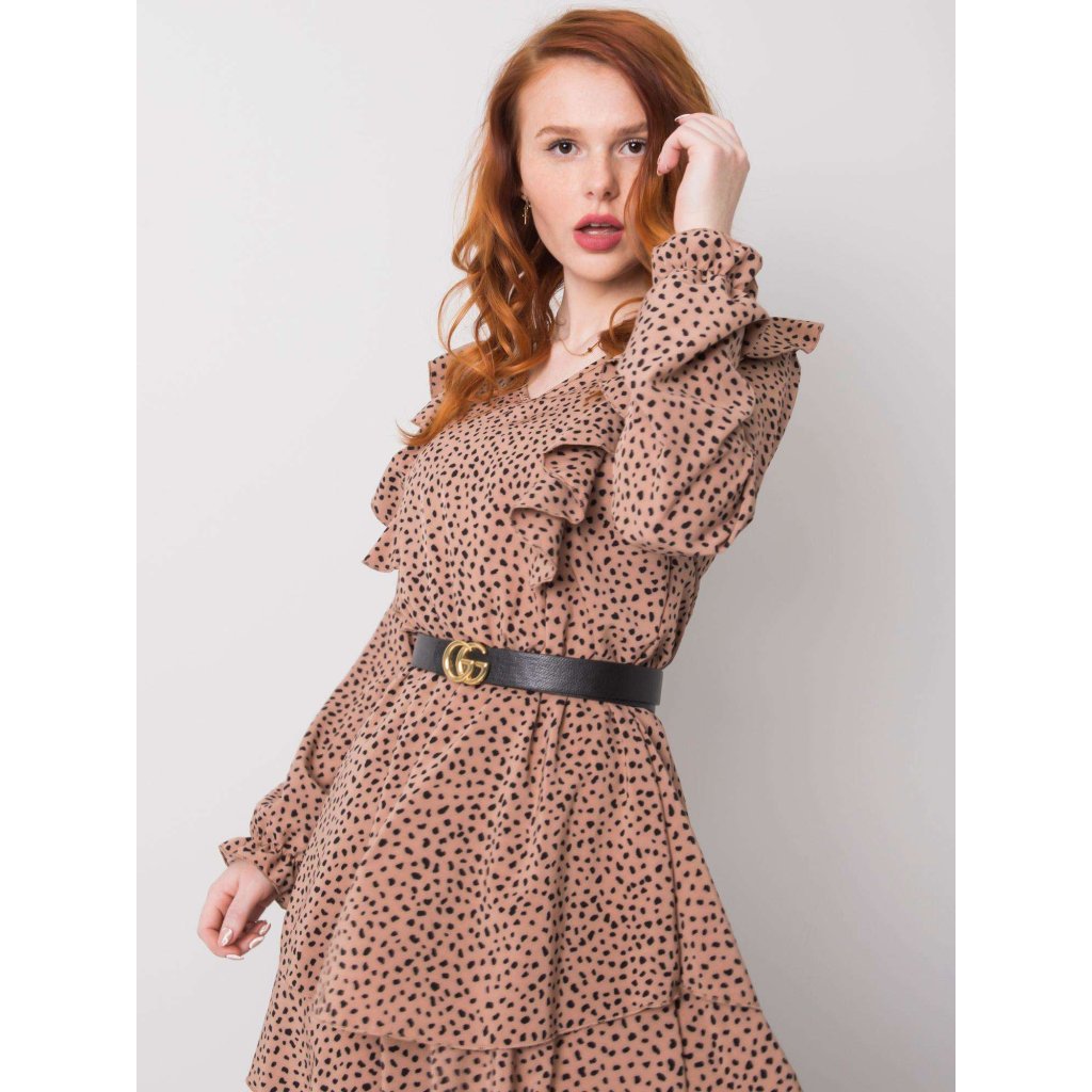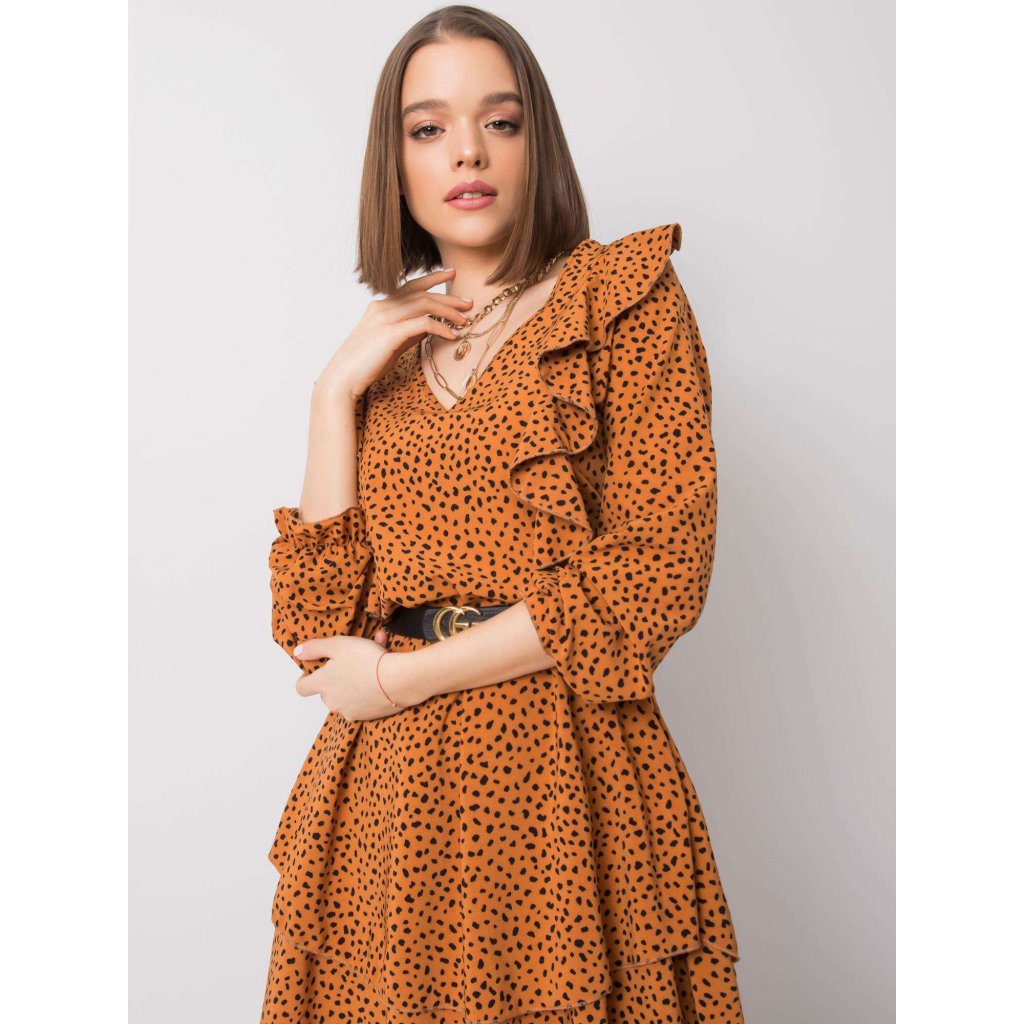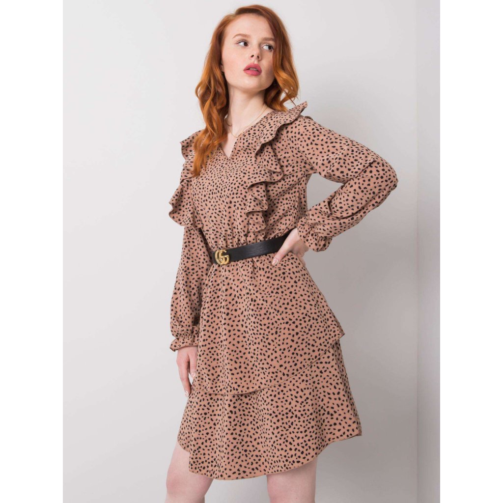 RUE PARIS Béžové šaty s volánmi.