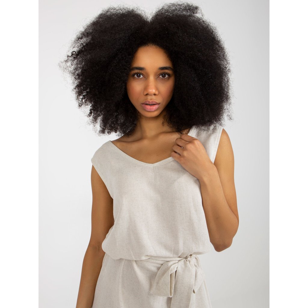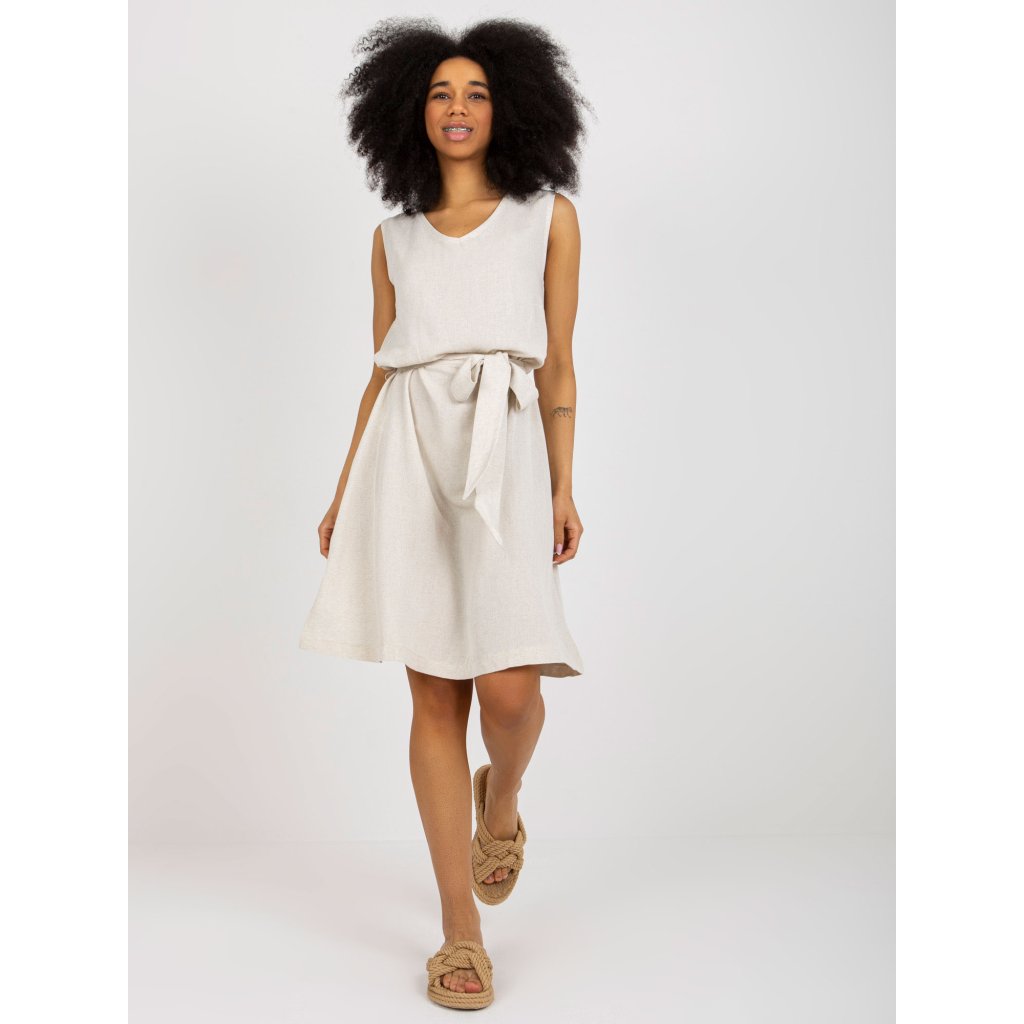 Svetlo béžové ľanové letné šaty RUE PARIS.