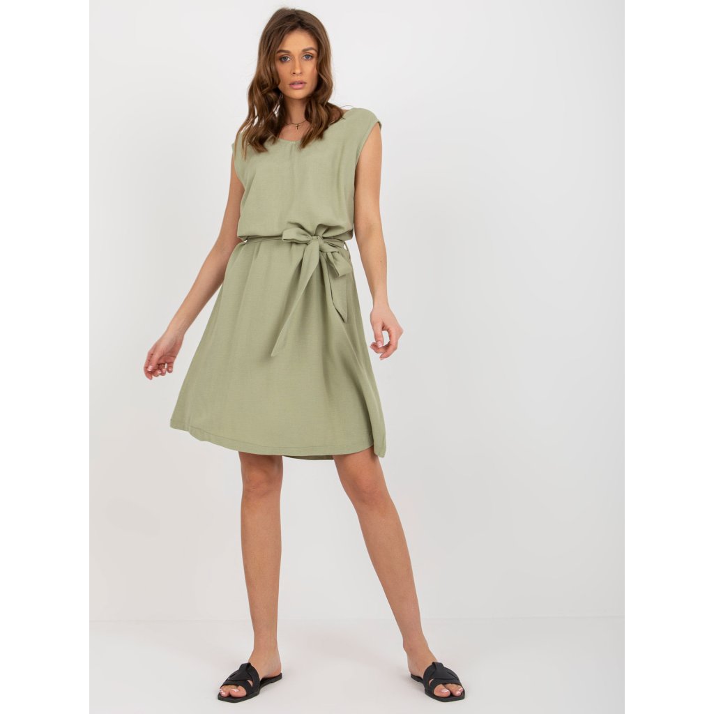 Jsvetlo zelené letné šaty s opaskom RUE PARIS.