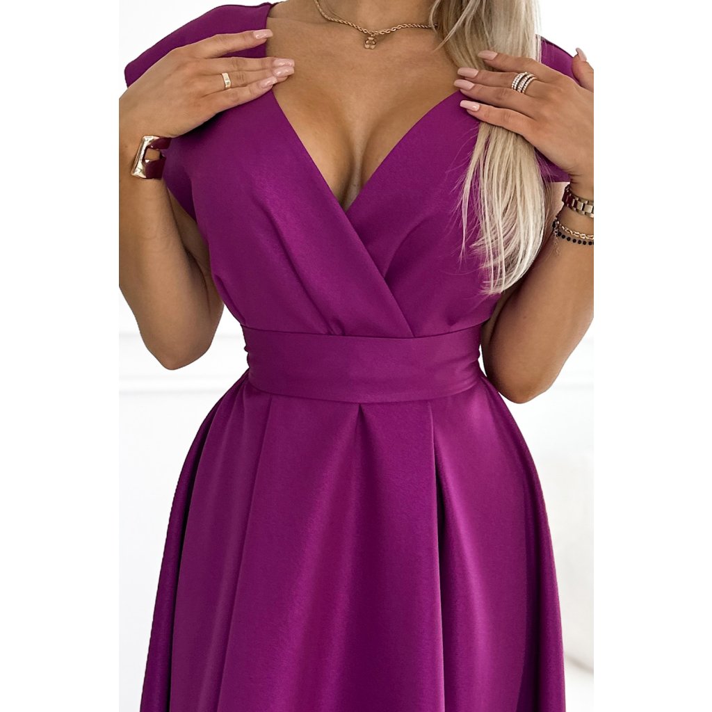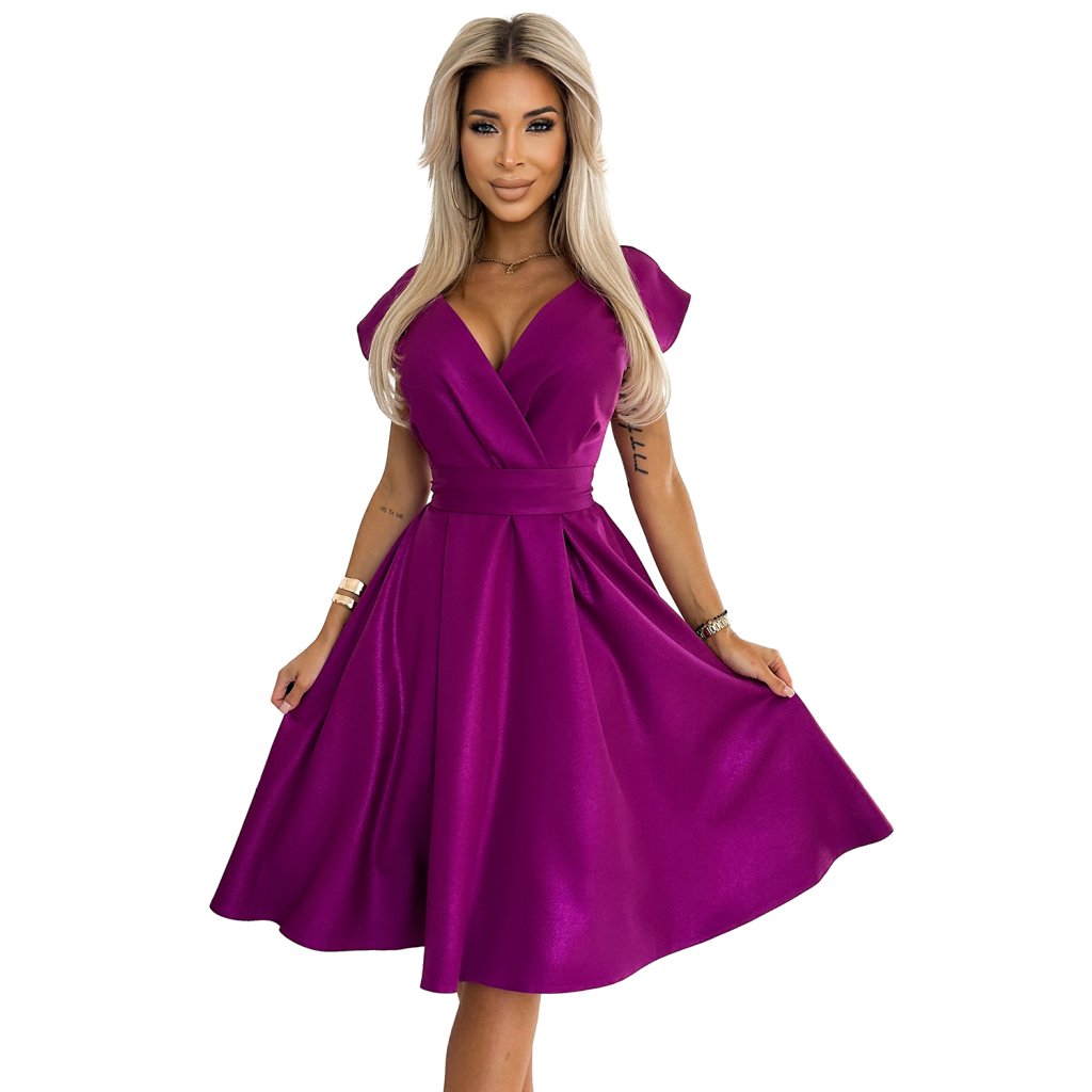 SCARLETT rozšírené šaty s výstrihom - fuchsiová so trblietkami 348-8 - výpredaj