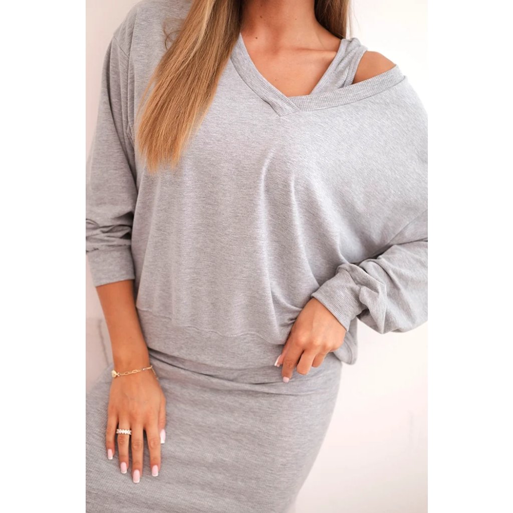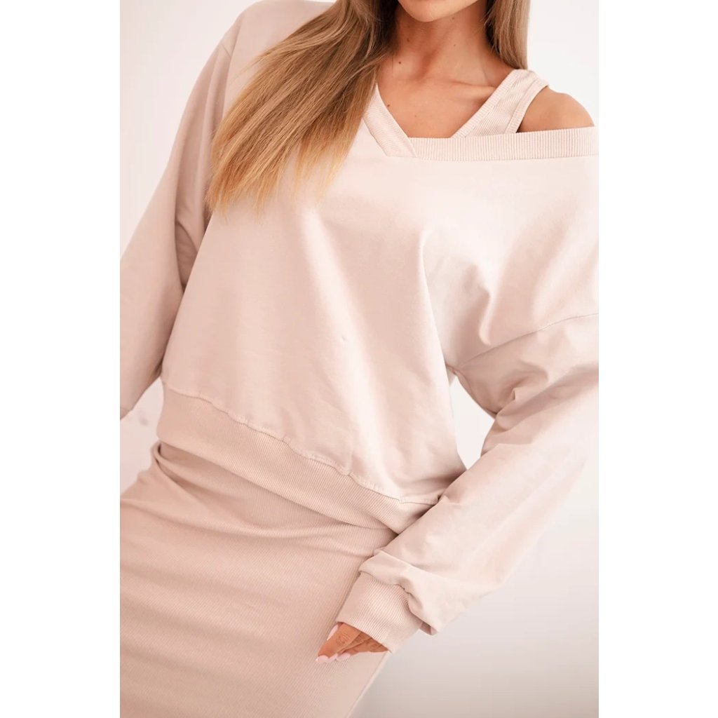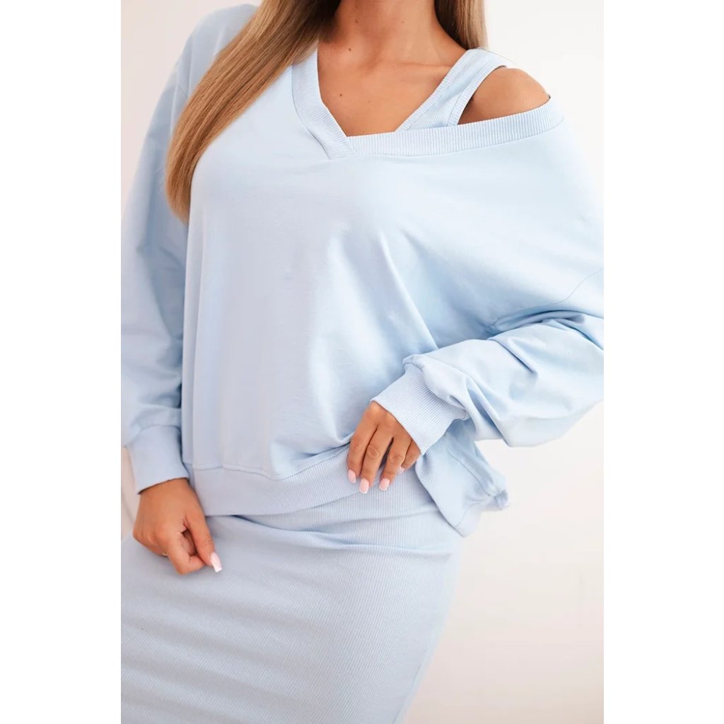 Kombinácia blúzky a šiat je ideálnou voľbou pre ženy, ktoré si rady vyberajú z viacerých možností. Môžete ich nosiť spolu a vytvoriť tak štýlový vzhľad na špeciálne príležitosti alebo samostatne a vytvoriť tak ležérnejší každodenný outfit. Šaty sú vyrobené z rebrovanej tkaniny pre elegantný a módny vzhľad. Šaty majú tenké ramienka. Súprava je vyrobená s dôrazom na detail. Súprava pozostávajúca z blúzky a pruhovaných šiat bez ramienok je skvelou voľbou pre ženy, ktoré hľadajú pohodlné, elegantné a módne oblečenie. Určite sa hodí na rôzne príležitosti a štýly a kvalitné spracovanie zaručuje, že vydrží mnoho sezón. Veľkosť je univerzálna a hodí sa pre dámy veľkosti S, M alebo L.