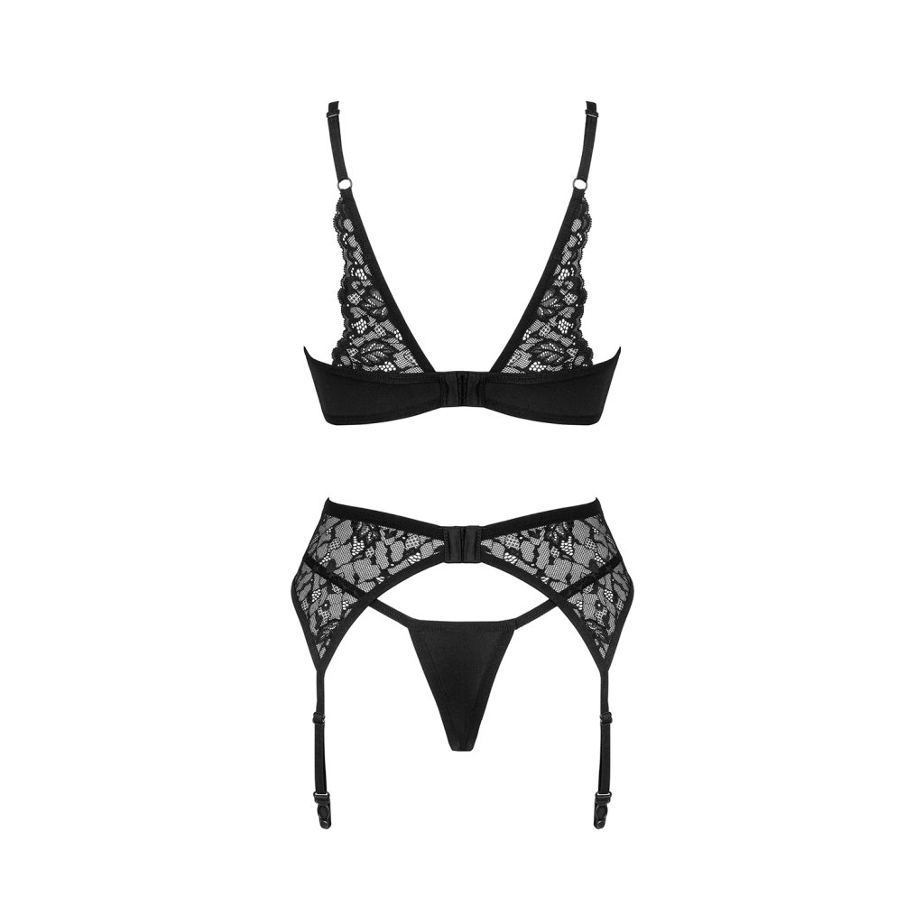 Hľadáte dokonalú spodnú bielizeň, ktorá vám pomôže zdôrazniť vašu ženskosť a zároveň vám dodá eleganciu a pocit úplnej sexi? Obsessive Táto súprava z kolekcie Bellastia od luxusnej značky je zaručene tá pravá. Spodná bielizeň má sýtu čiernu farbu, ktorá predstavuje nadčasový štýl bez ohľadu na príležitosť, a čipkované detaily dodávajú romantiku a vytvárajú očarujúci pocit. krásna čierna súprava Bellastia - tangá, podprsenka a podväzkový pás nastaviteľné ramienka - perfektne sedia košíčky s kosticami - zvýrazňujú prsia zmyselná čipka - priťahuje pozornosť lesklý prívesok mäkká a elastická tkanina - perfektne sedí pohodlne sa nosí podprsenka a podväzkový pás: 90 % polyamid, 10 % elastan, tangá: 85 % polyamid, 15 % elastan pančuchy nie sú súčasťou baleniaDodatočné parametre