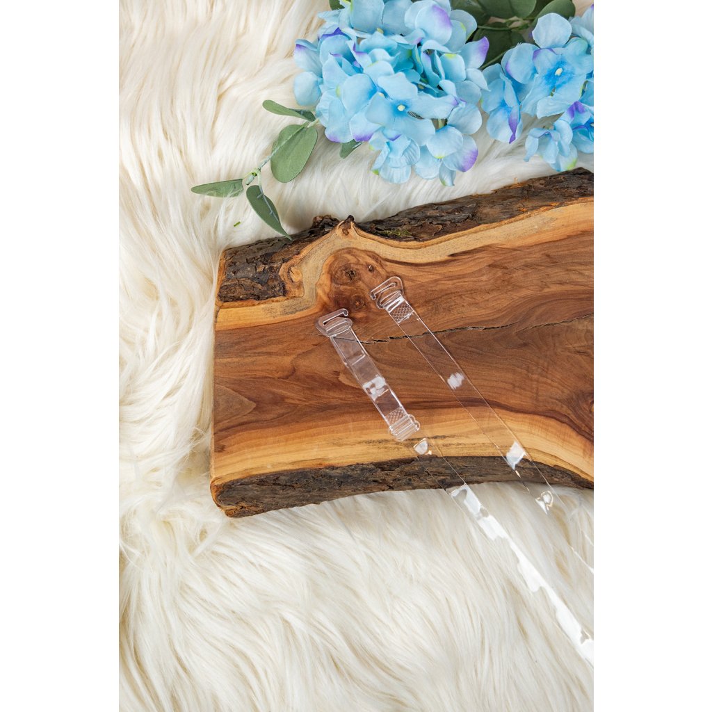 Priehľadné, nastaviteľné remienky, šírka 11 mm. Univerzálna veľkosť, vhodná pre všetky podprsenky s odnímateľnými ramienkami. Popruhy majú plastové nastavovacie prvky a háčiky na upevnenie.- Sada obsahuje dva kusy.