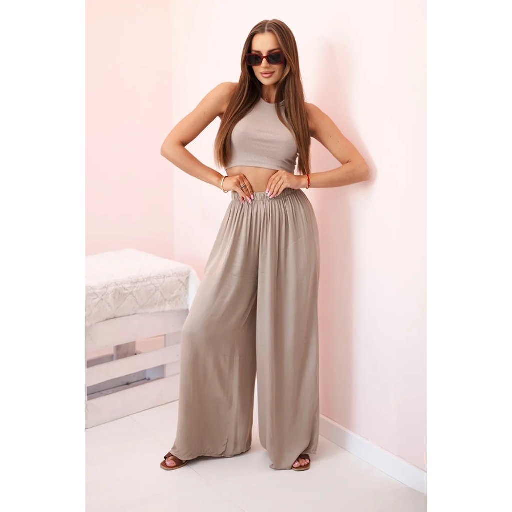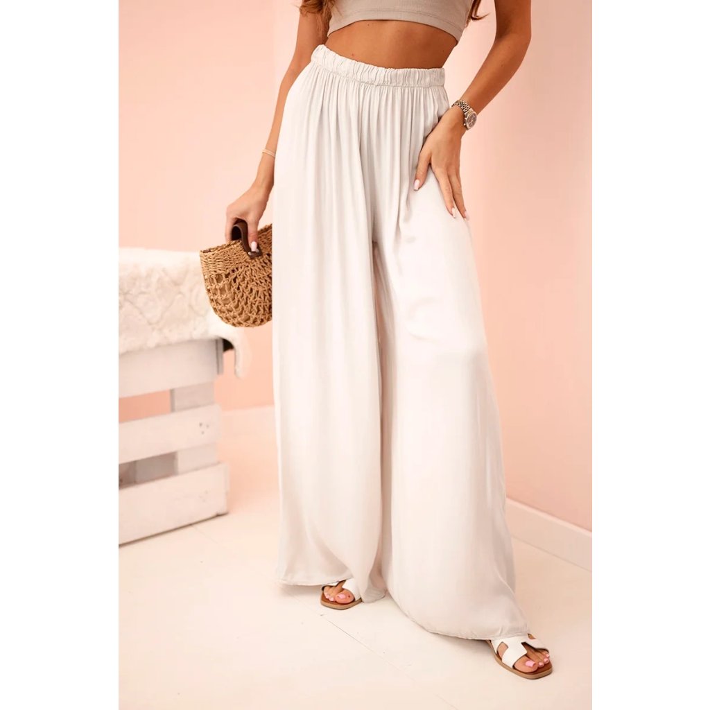 Tieto jedinečné dámske nohavice spájajú pohodlie a štýl. Sú vyrobené zo 100 % viskózy, vďaka čomu sú ľahké, vzdušné a dokonale sa prispôsobia postave. Široké nohavice dodávajú elegantný, splývavý vzhľad, ktorý je vhodný na každodenné nosenie aj na špeciálne príležitosti. Vďaka elastickému pásu v páse poskytujú pohodlie a voľnosť pohybu. Môžete ich kombinovať s elegantnou blúzkou alebo voľným tričkom - vždy budú vyzerať moderne!