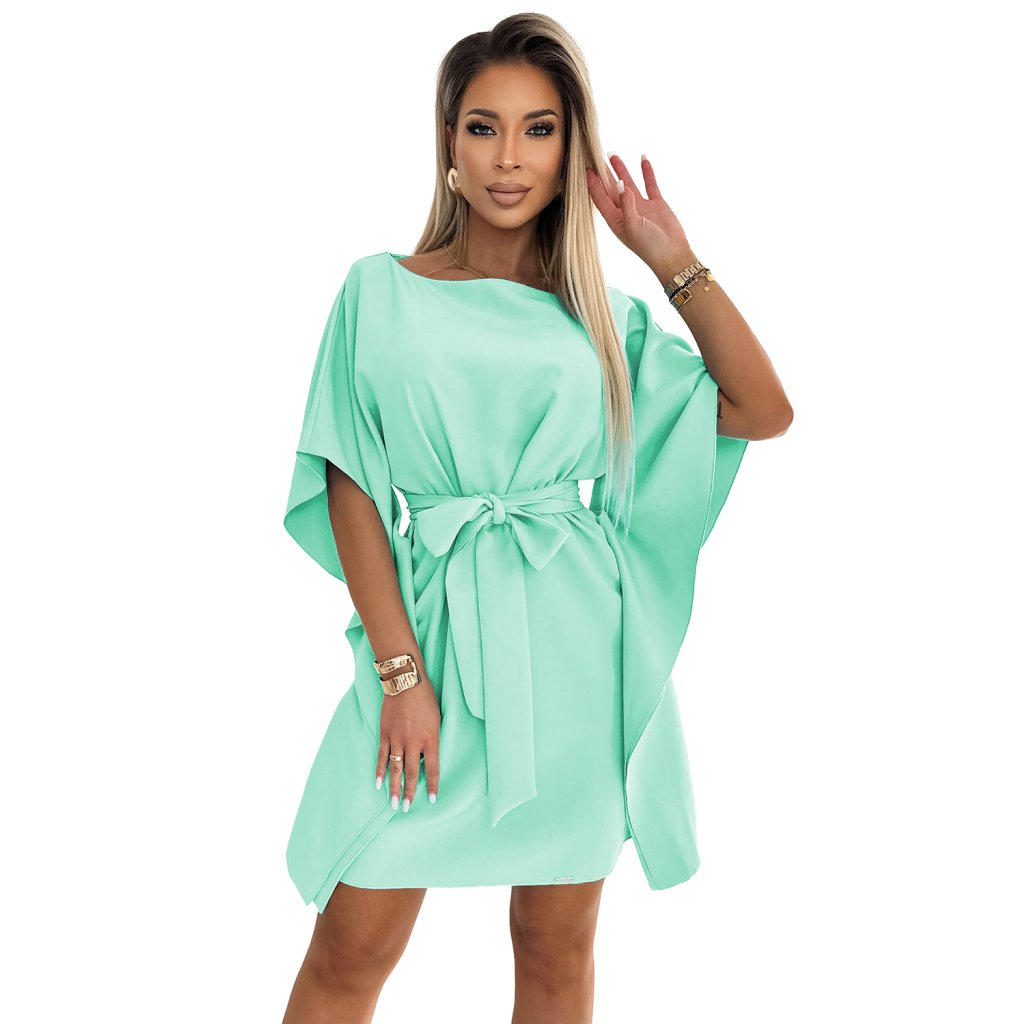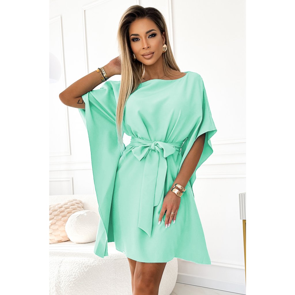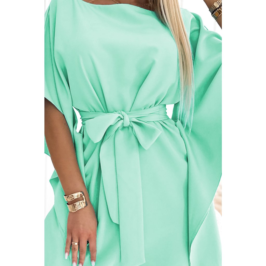 SOFIA Dámske motýlikové šaty so zaväzovaním v páse - mint. Vyrobené z materiálu príjemného na dotyk. Značka numoco. Poľská výroba.
