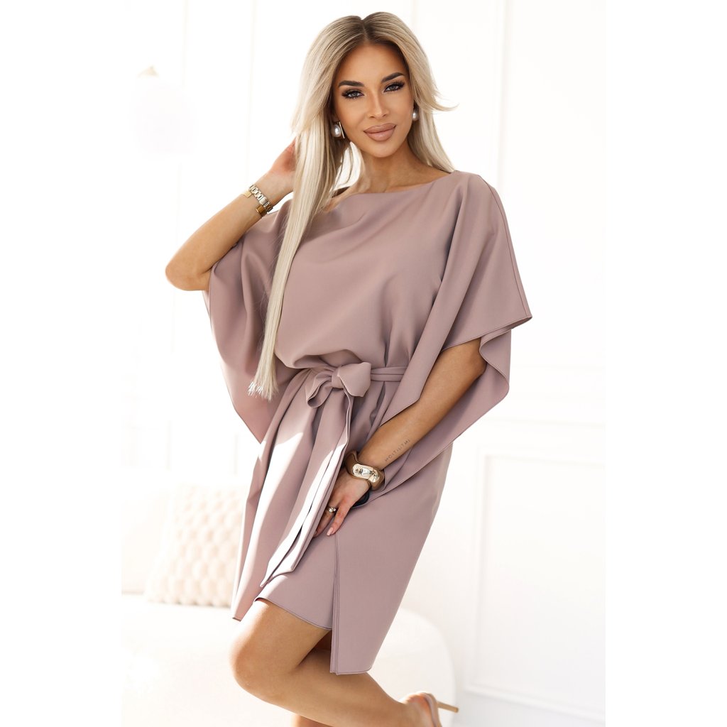 SOFIA Motýlie šaty so zaväzovaním v páse - MOCHA MOUSSE 287-37