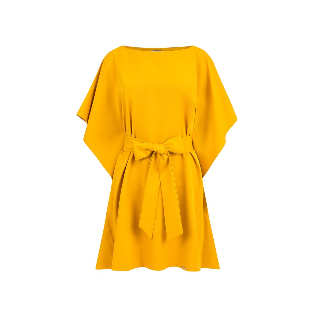 SOFIA Motýlikové šaty s opaskom - medová farba. Poľská produkcia. Značka numoco.