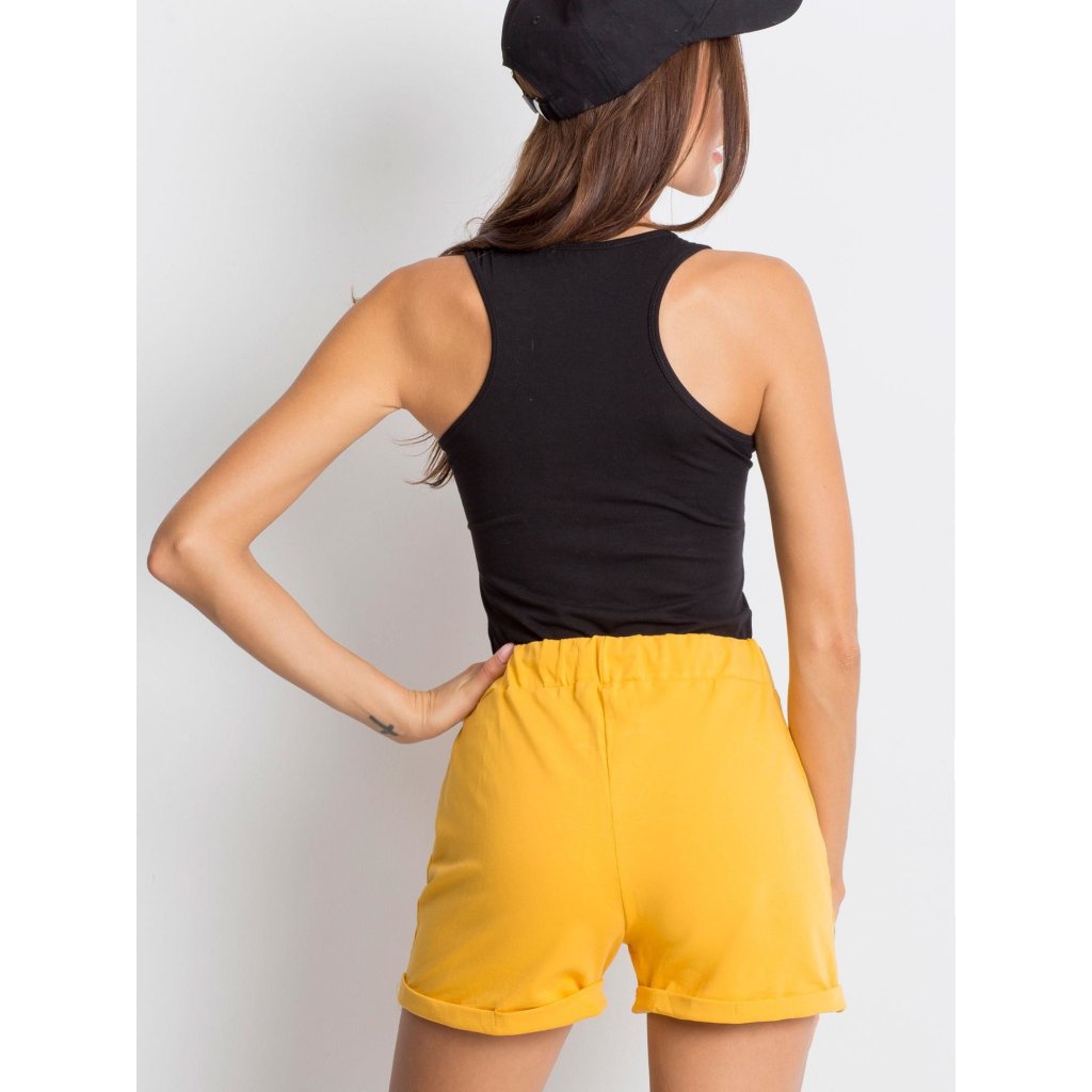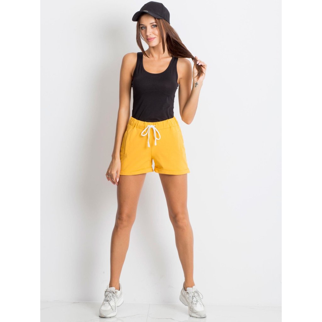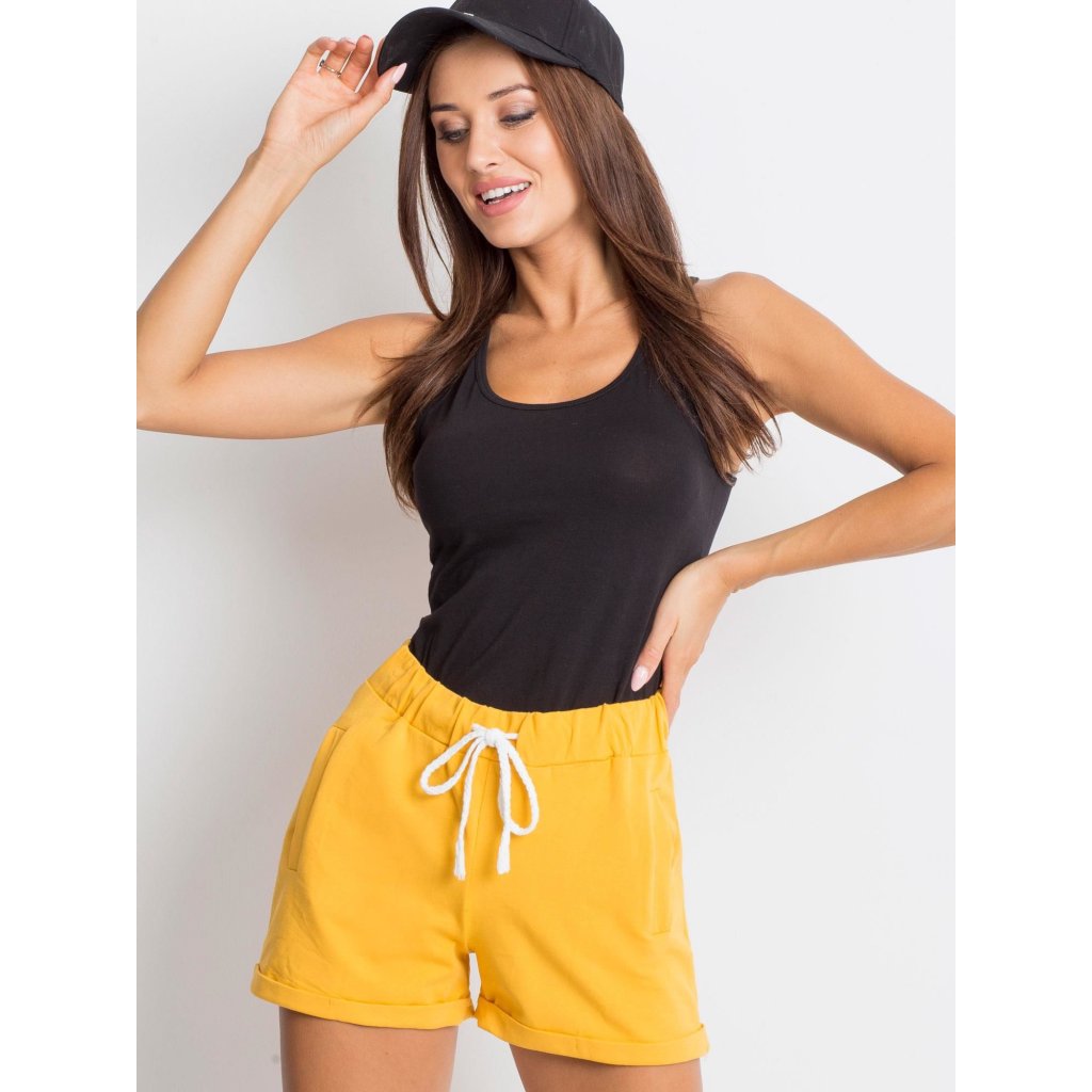 Tmavé žlté bavlnené kraťasy pre ženy.