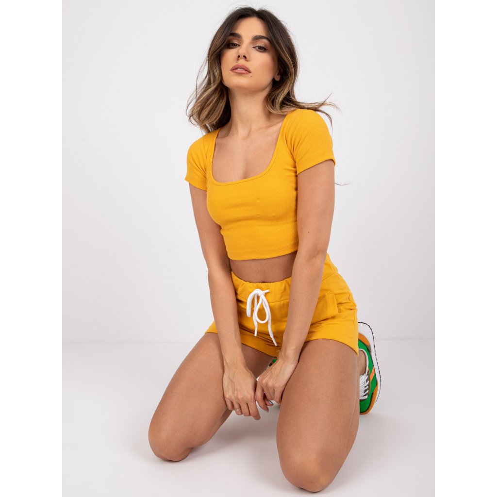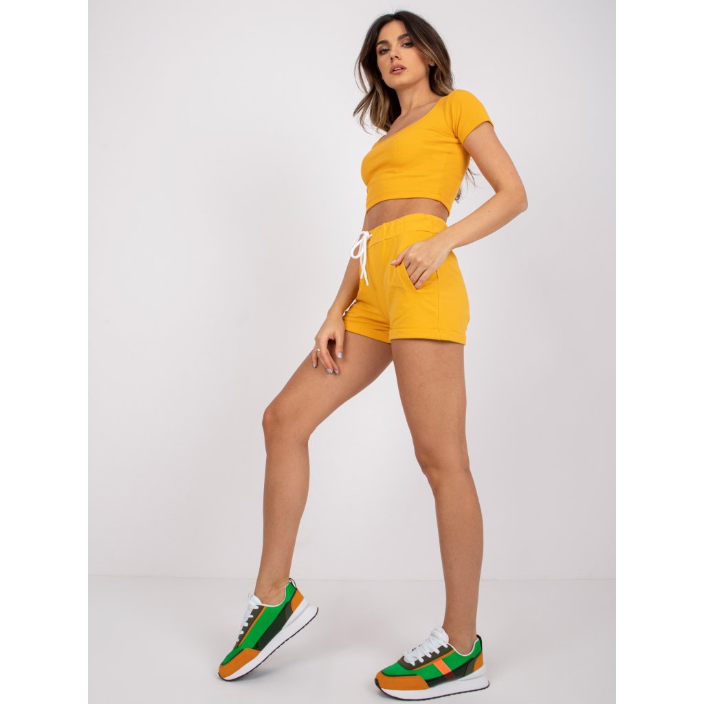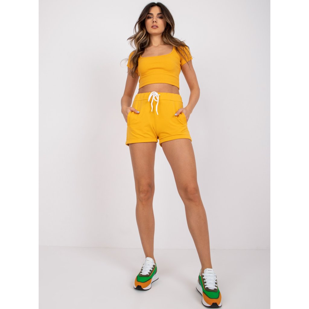 Tmavé žlté bavlnené kraťasy pre ženy.
