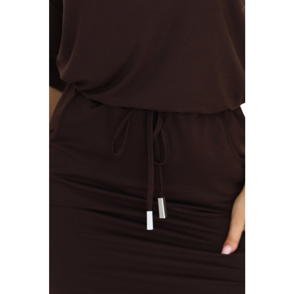 Športové midi šaty s vreckami a zaväzovaním v páse - čokoládovo hnedé 13-169
