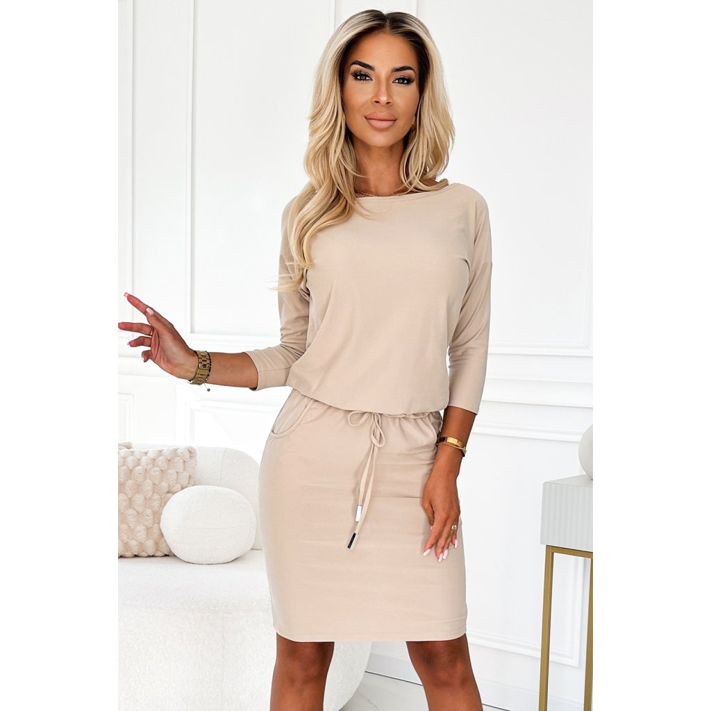 Športové šaty s vreckami a zaväzovaním - Béžová farba 13-161