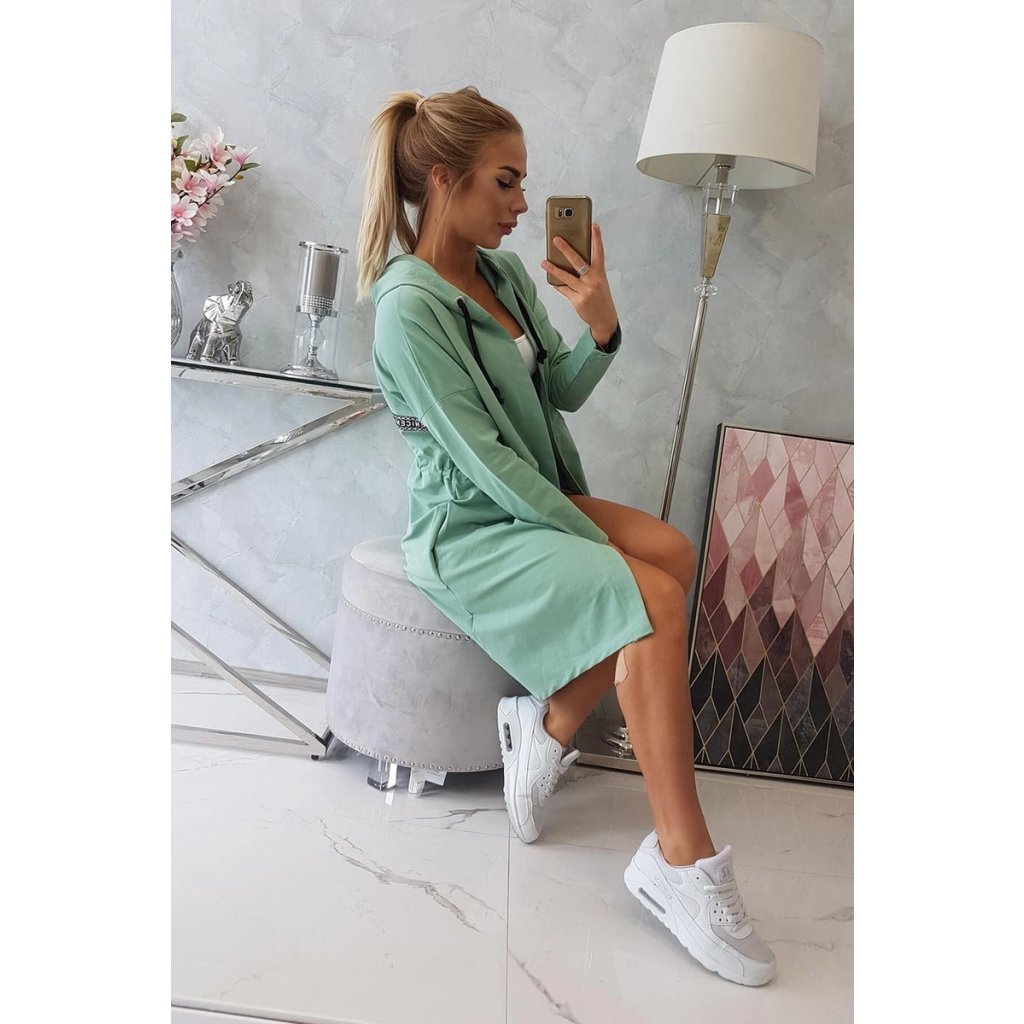 Predstavujeme vám dlhú sukňu s kapucňou. Sako má dlhší chrbát a zaväzovanie v páse. Na zadnej strane je našitá ozdobná stuha. Bunda bez rukávov s vreckami. Bunda je vyrobená z kvalitného materiálu. Veľkosť je univerzálna a je vhodná pre dámske veľkosti S, M a L.