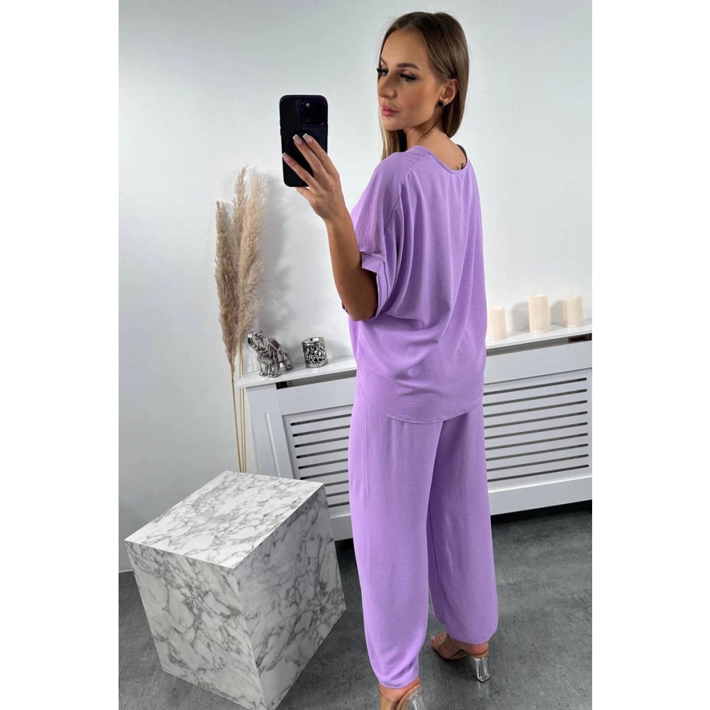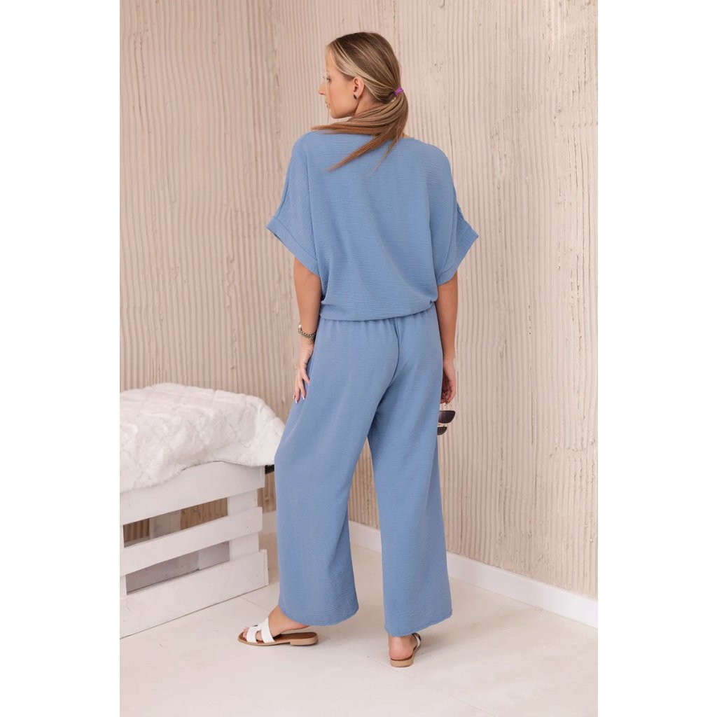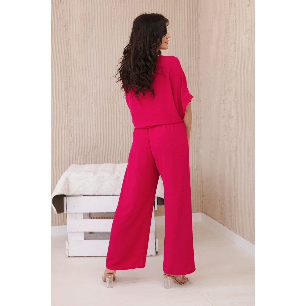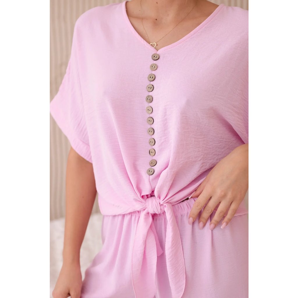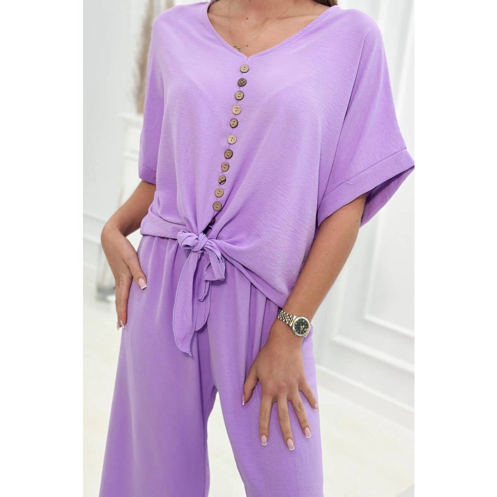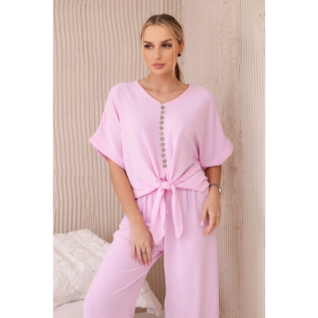 Tento taliansky komplet s blúzkou s viazaním vpredu a širokými nohavicami je ideálnou voľbou pre ženy, ktoré ocenia pohodlie a štýl v jednom. Blúzka sa zapína vpredu, čo jej dodáva jemnú ženskosť. Široké nohavice z tkaniny príjemnej na dotyk pre voľnosť pohybu a pohodlné nosenie. Takúto kompletnú súpravu môžete nosiť pri rôznych príležitostiach - do práce, na rande alebo na stretnutie s priateľmi. V kombinácii s elegantnými topánkami a doplnkami, ako je kabelka alebo šperky, vytvára štýlový a módny vzhľad. Veľkosť je univerzálna a hodí sa pre dámy veľkosti S, M alebo L.