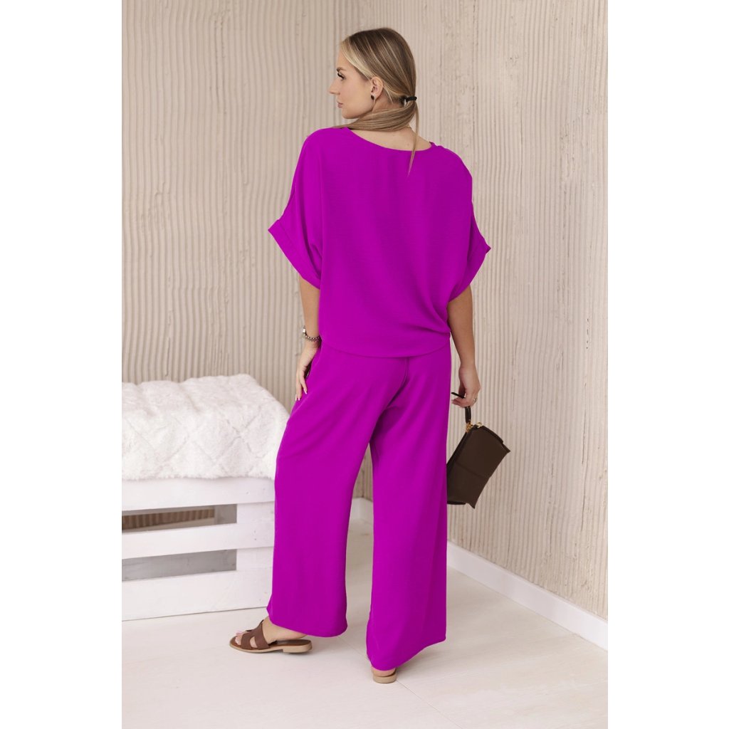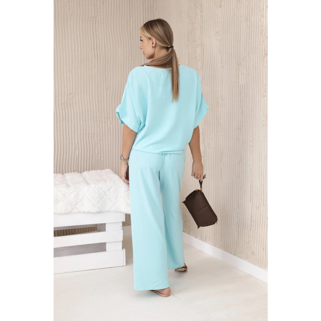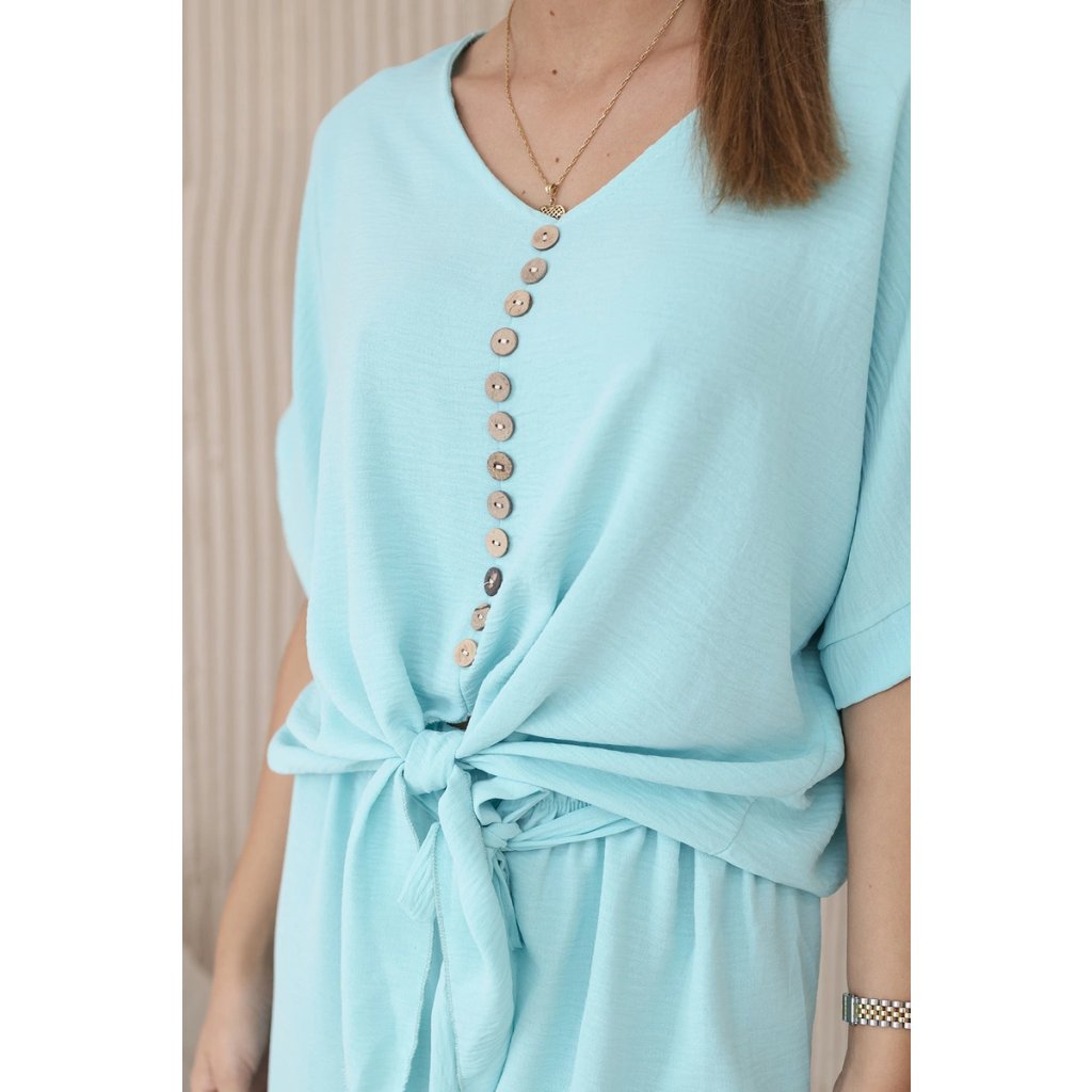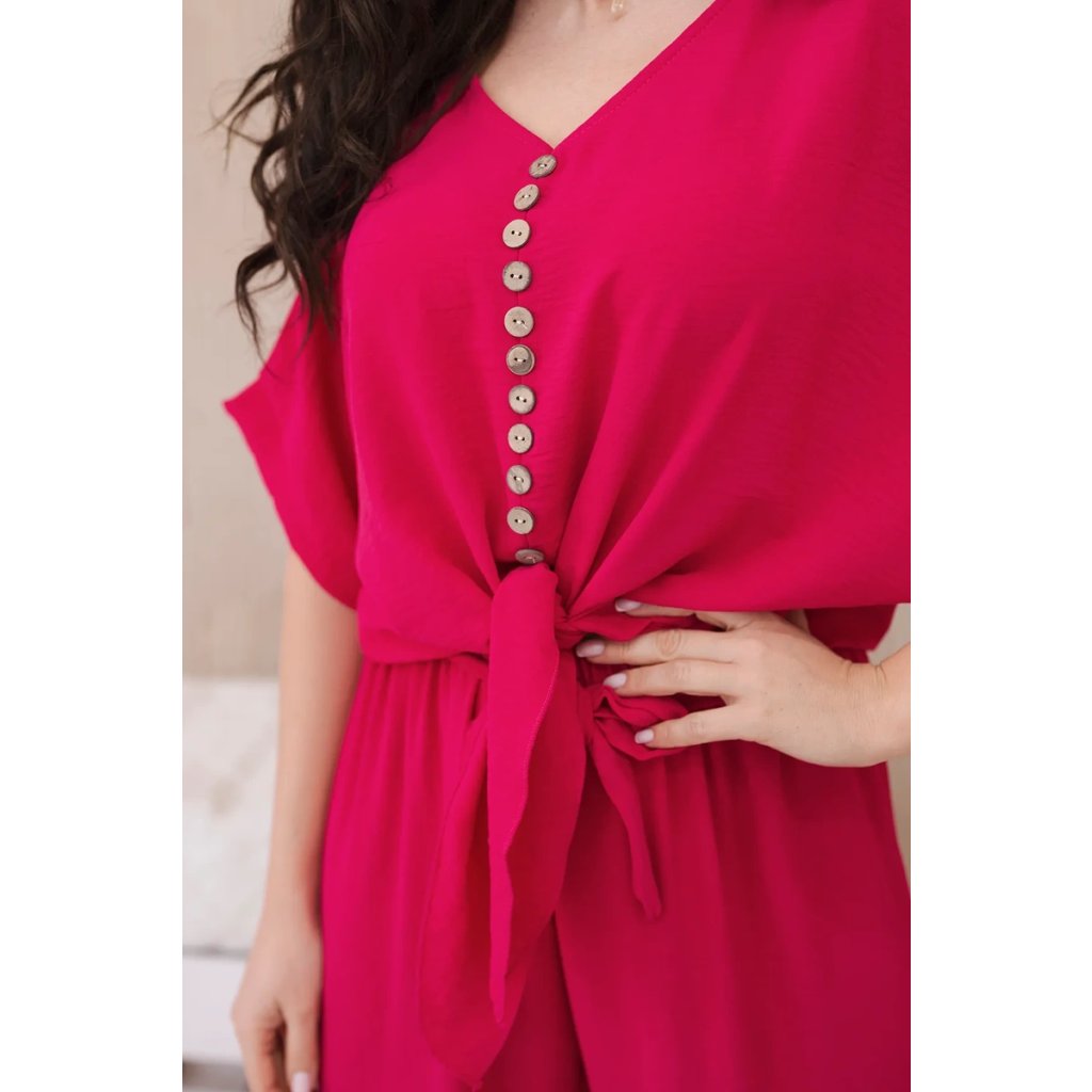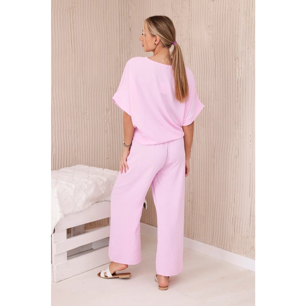 Tento taliansky komplet s blúzkou s viazaním vpredu a širokými nohavicami je ideálnou voľbou pre ženy, ktoré ocenia pohodlie a štýl v jednom. Blúzka sa zapína vpredu, čo jej dodáva jemnú ženskosť. Široké nohavice z tkaniny príjemnej na dotyk pre voľnosť pohybu a pohodlné nosenie. Takúto kompletnú súpravu môžete nosiť pri rôznych príležitostiach - do práce, na rande alebo na stretnutie s priateľmi. V kombinácii s elegantnými topánkami a doplnkami, ako je kabelka alebo šperky, vytvára štýlový a módny vzhľad. Veľkosť je univerzálna a hodí sa pre dámy veľkosti S, M alebo L.