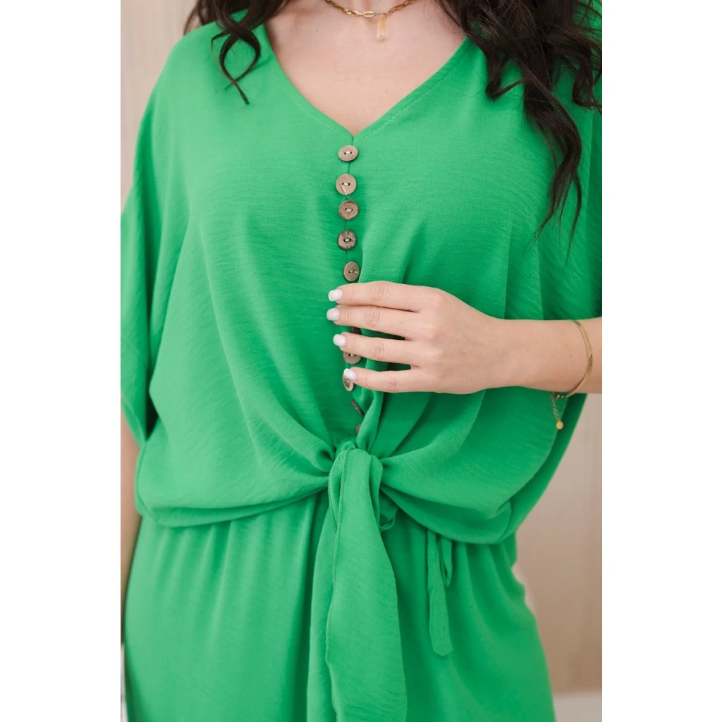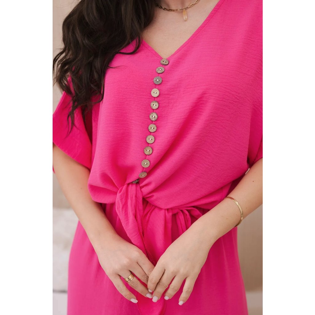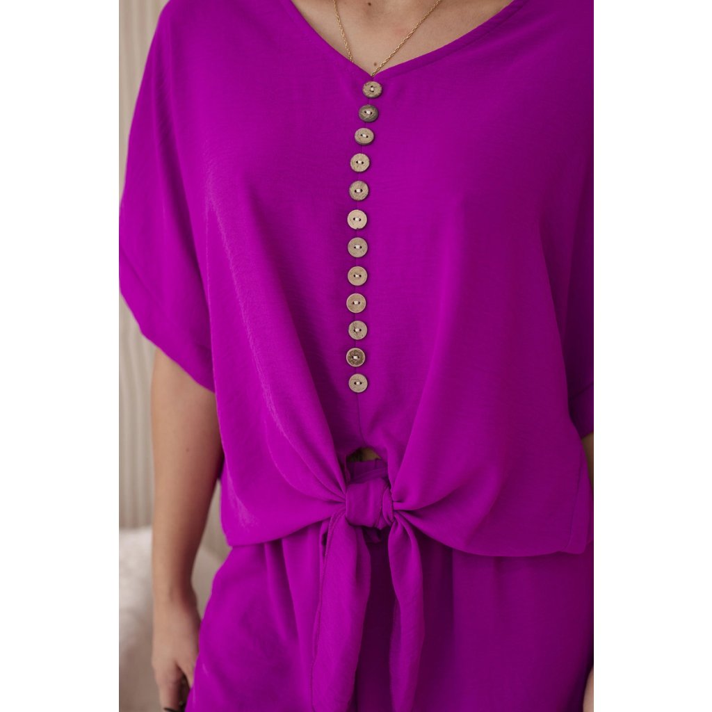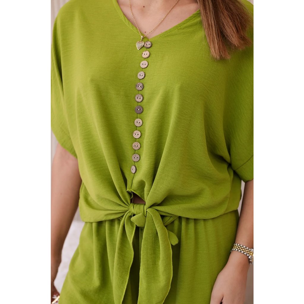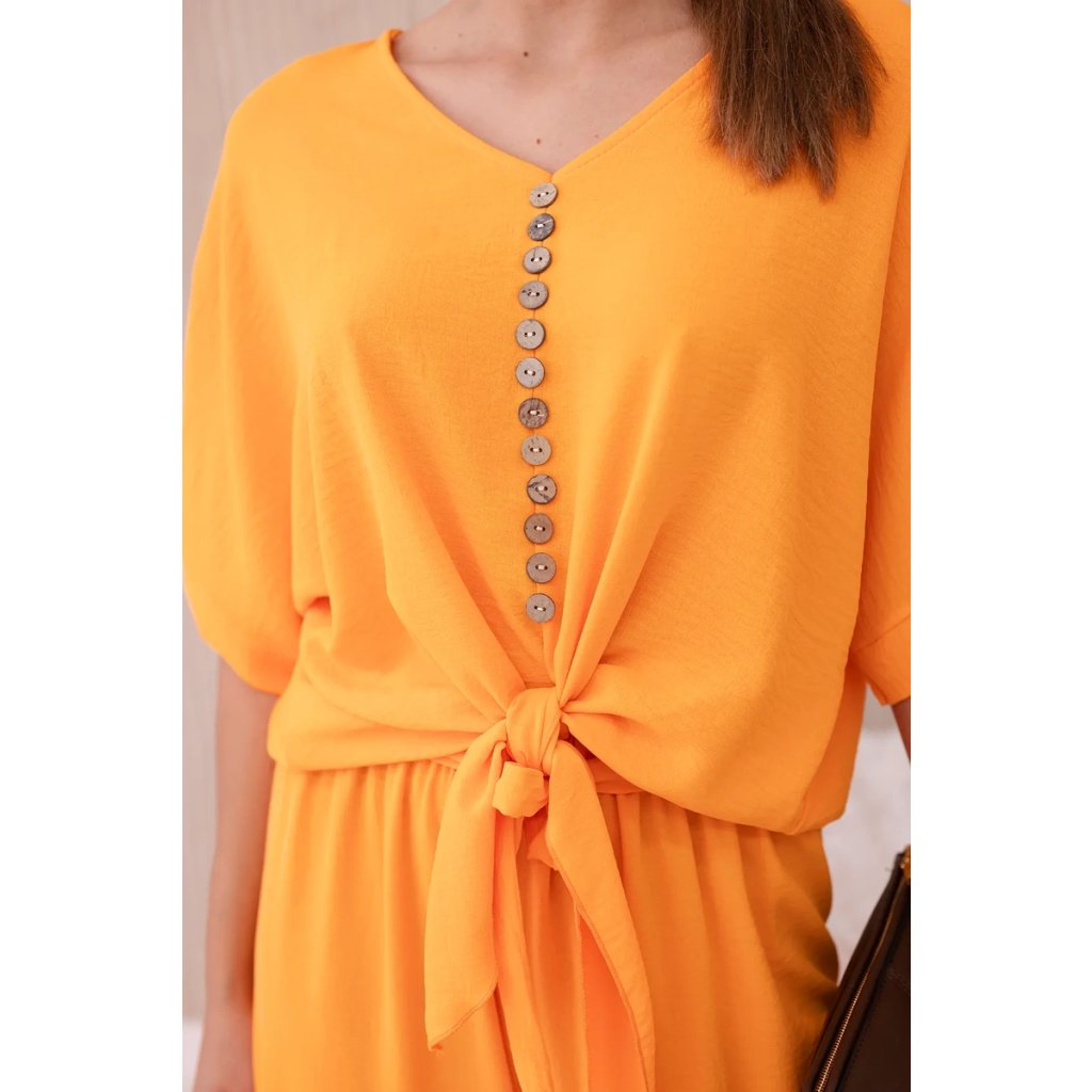 Tento taliansky komplet s blúzkou s viazaním vpredu a širokými nohavicami je ideálnou voľbou pre ženy, ktoré ocenia pohodlie a štýl v jednom. Blúzka sa zapína vpredu, čo jej dodáva jemnú ženskosť. Široké nohavice z tkaniny príjemnej na dotyk pre voľnosť pohybu a pohodlné nosenie. Takúto kompletnú súpravu môžete nosiť pri rôznych príležitostiach - do práce, na rande alebo na stretnutie s priateľmi. V kombinácii s elegantnými topánkami a doplnkami, ako je kabelka alebo šperky, vytvára štýlový a módny vzhľad. Veľkosť je univerzálna a hodí sa pre dámy veľkosti S, M alebo L.