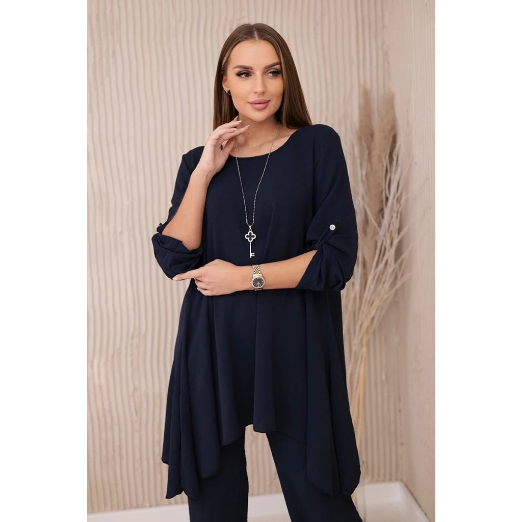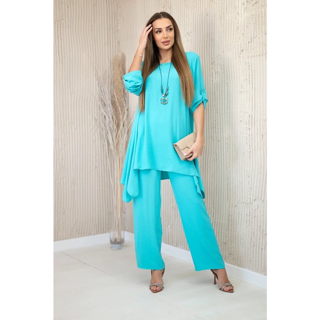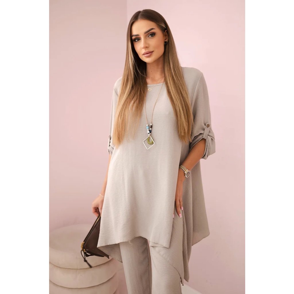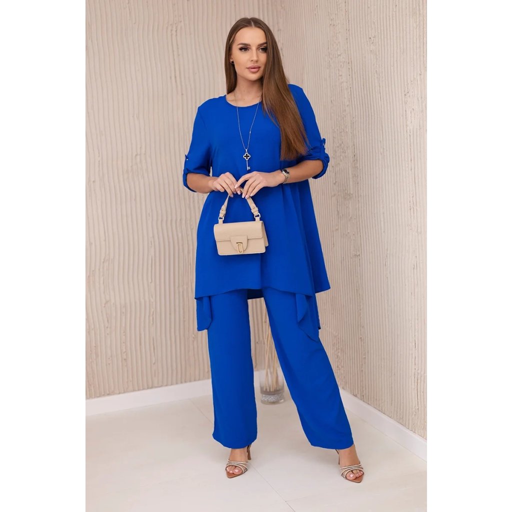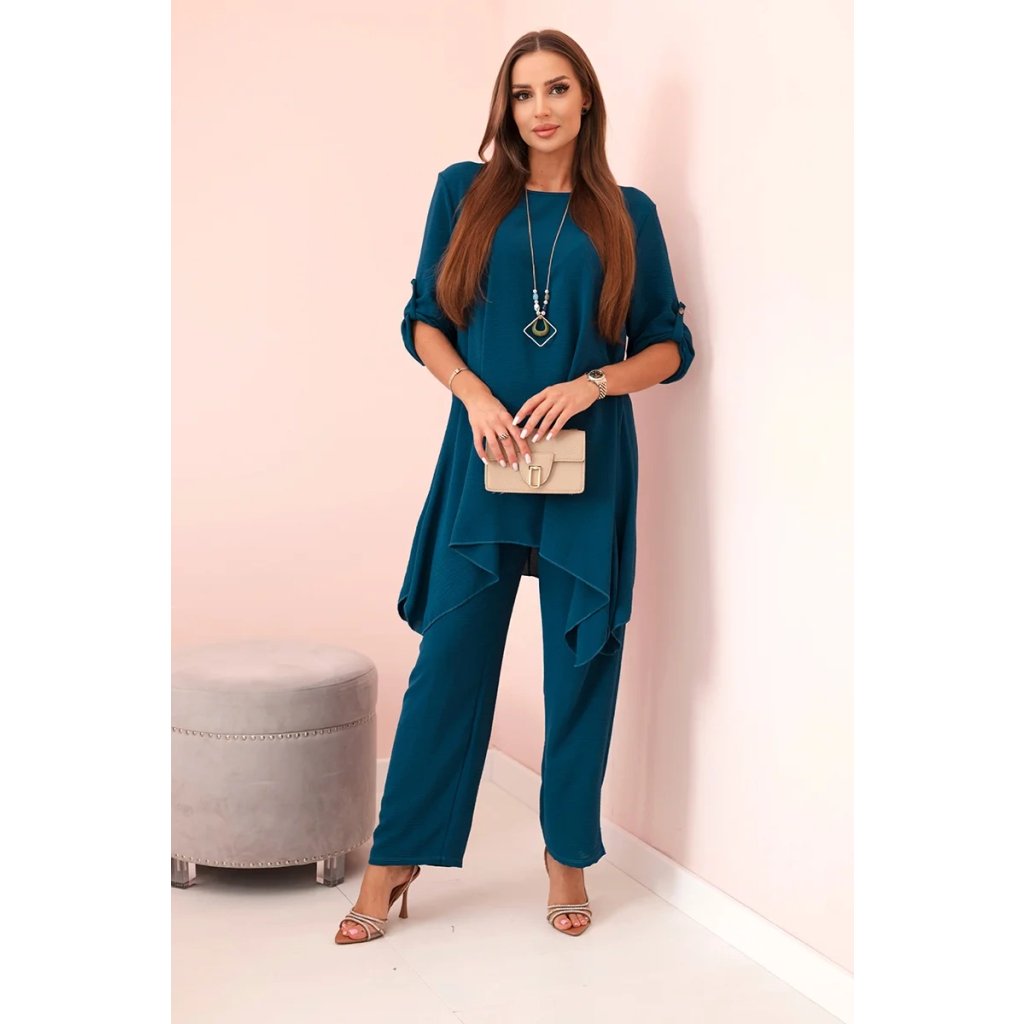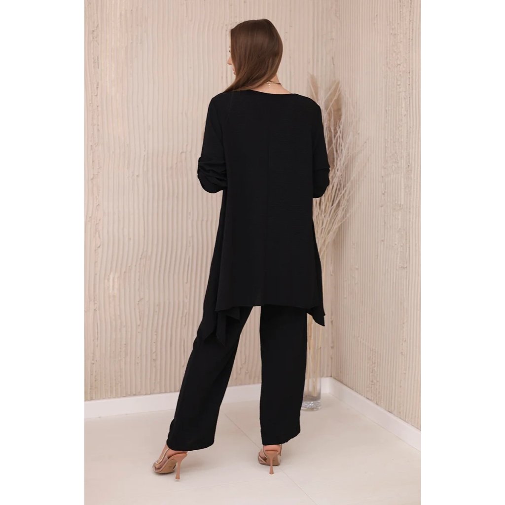 Talianska dvojdielna súprava pozostávajúca z blúzky a nohavíc je elegantný set, ktorý dodá šarm a štýl každému štýlu. Vliesová blúzka dodáva jemnú ženskosť, zvýrazňuje postavu a zároveň zaručuje voľnosť pohybu. Klasický strih nohavíc dokonale ladí s elegantnou blúzkou a vytvára tak ucelený a štýlový celok. Prívesok v tvare kľúča je tiež očarujúcim detailom, ktorý dodáva tejto súprave originalitu a charakter a vytvára harmonickú kompozíciu. Je to elegantný doplnok, ktorý zdôrazňuje jedinečnosť a pozornosť venovanú detailom v celom štýle. Táto talianska súprava je ideálna na rôzne príležitosti, od obchodných stretnutí až po romantické rande. Je to rafinovaná voľba pre ľudí, ktorí ocenia eleganciu a pohodlie v jednom. Veľkosť je univerzálna a vyhovuje ženám, ktoré nosia veľkosť S, M alebo L.