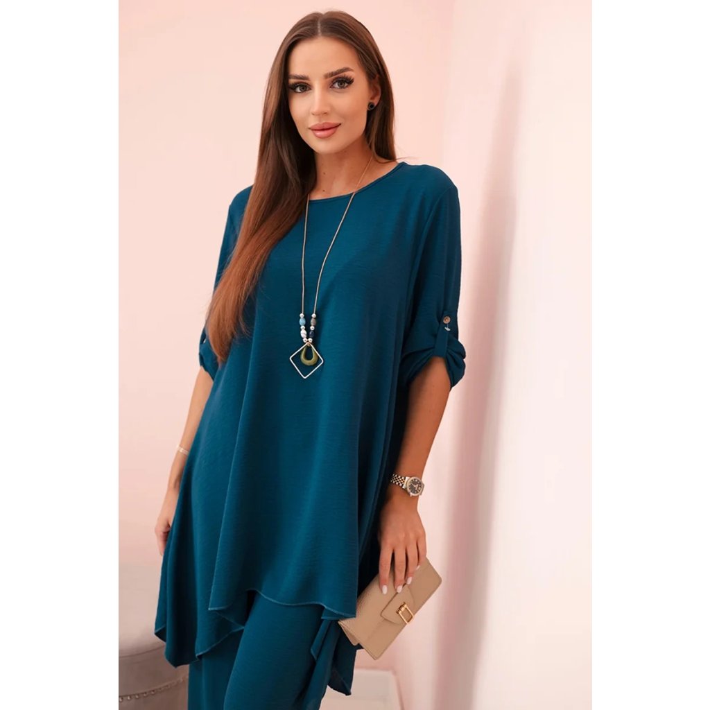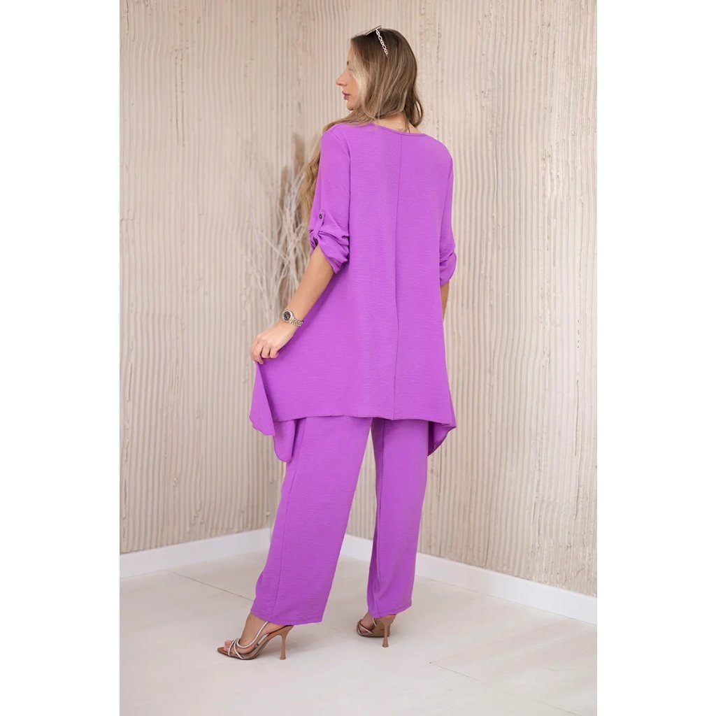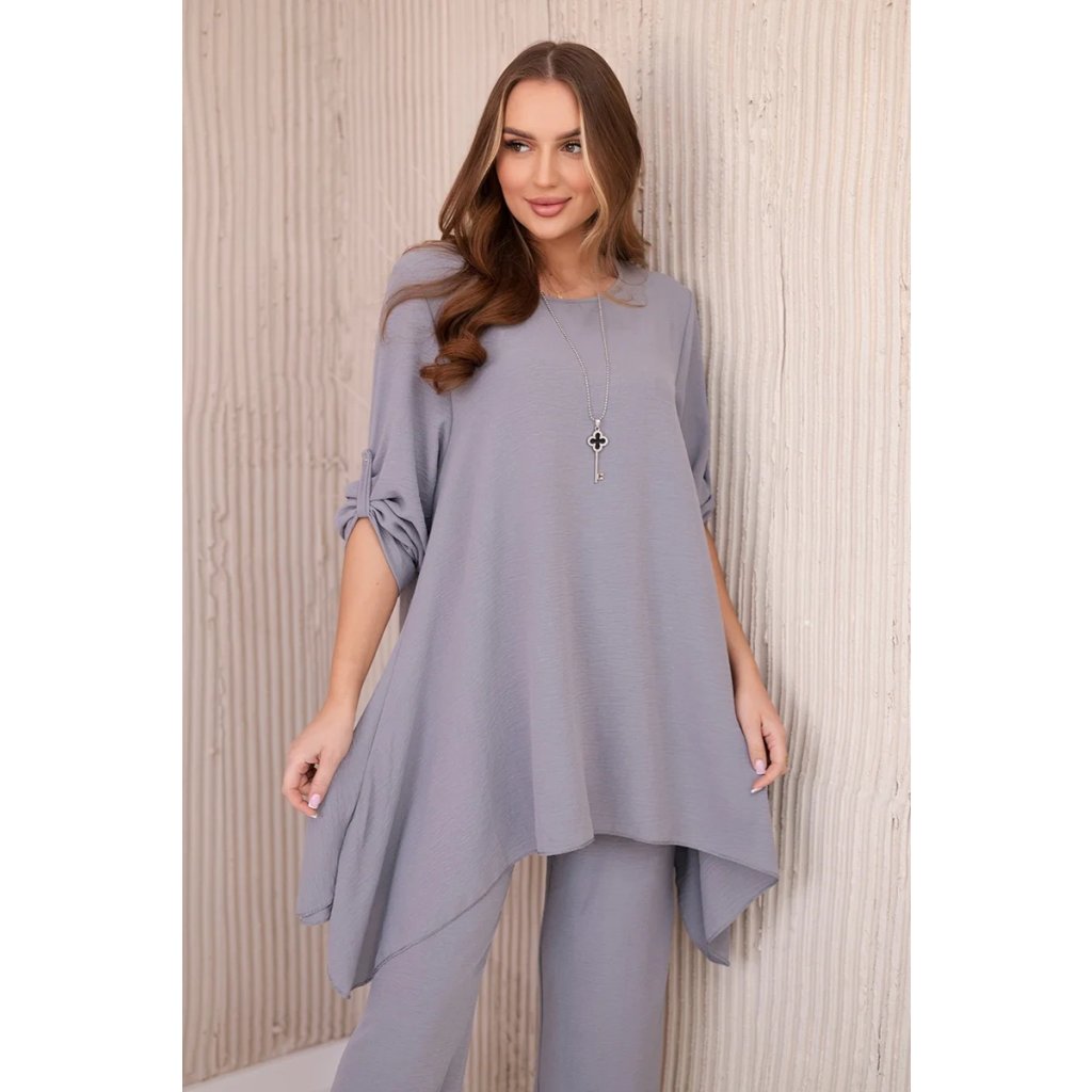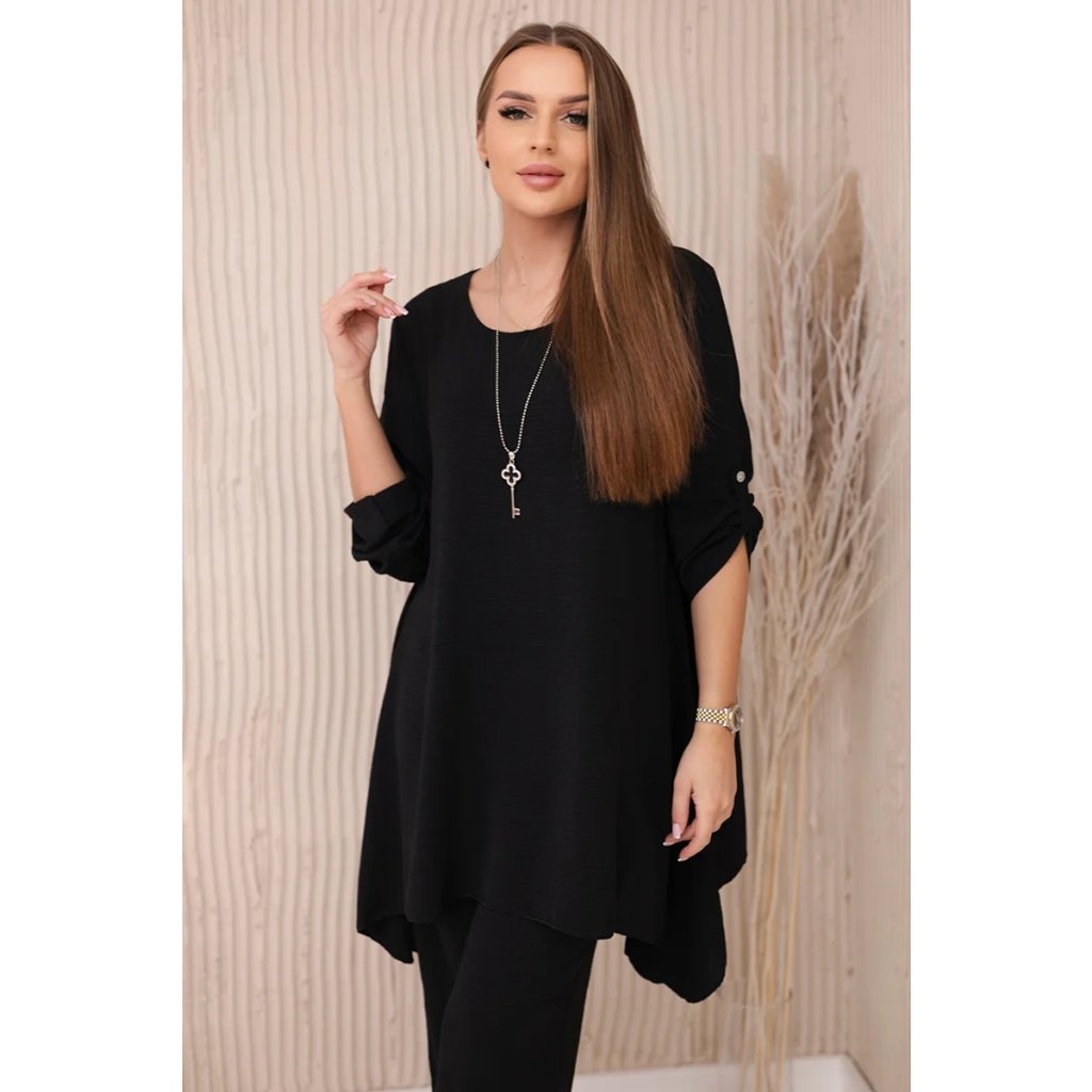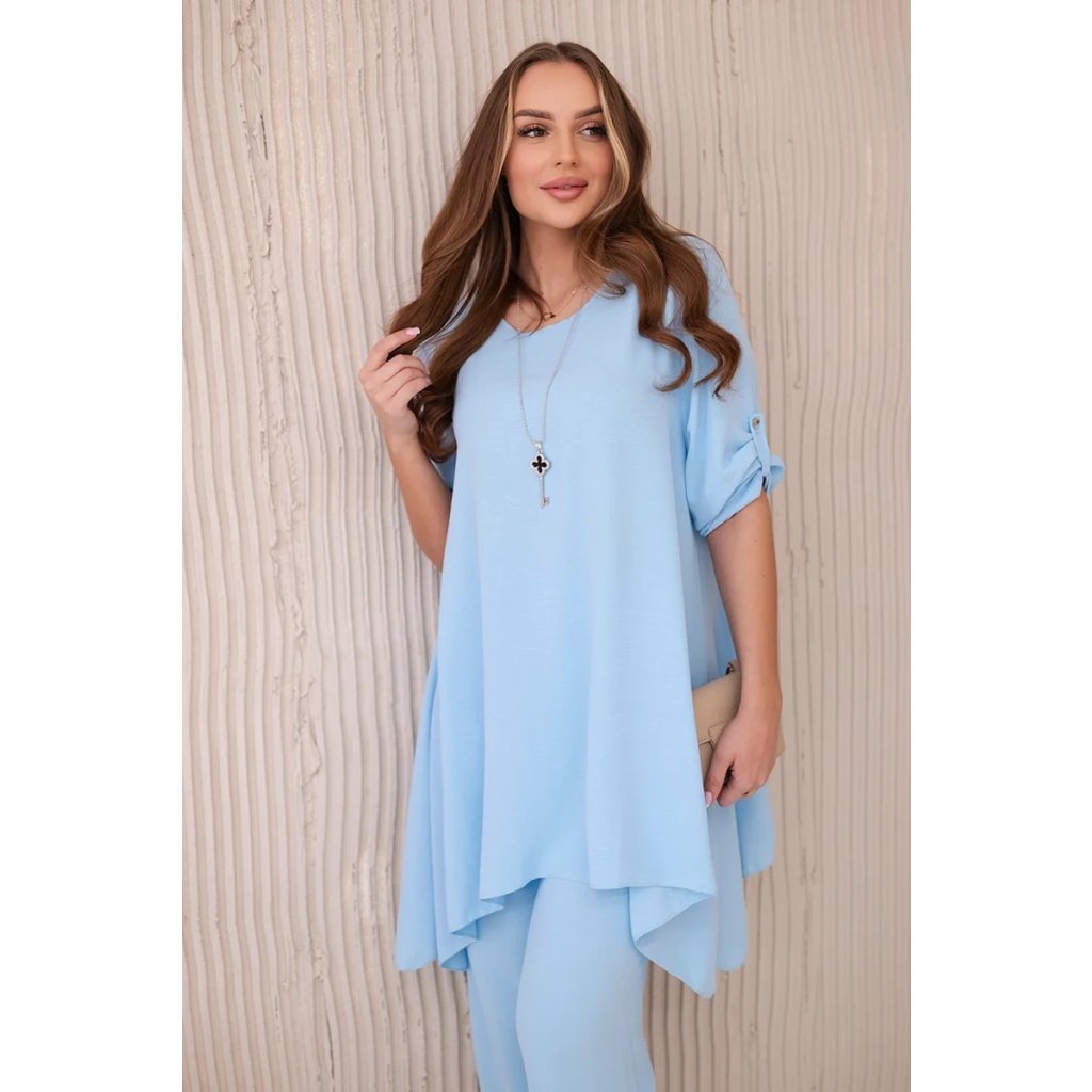 Talianska dvojdielna súprava pozostávajúca z blúzky a nohavíc je elegantný set, ktorý dodá šarm a štýl každému štýlu. Vliesová blúzka dodáva jemnú ženskosť, zvýrazňuje postavu a zároveň zaručuje voľnosť pohybu. Klasický strih nohavíc dokonale ladí s elegantnou blúzkou a vytvára tak ucelený a štýlový celok. Prívesok v tvare kľúča je tiež očarujúcim detailom, ktorý dodáva tejto súprave originalitu a charakter a vytvára harmonickú kompozíciu. Je to elegantný doplnok, ktorý zdôrazňuje jedinečnosť a pozornosť venovanú detailom v celom štýle. Táto talianska súprava je ideálna na rôzne príležitosti, od obchodných stretnutí až po romantické rande. Je to rafinovaná voľba pre ľudí, ktorí ocenia eleganciu a pohodlie v jednom. Veľkosť je univerzálna a vyhovuje ženám, ktoré nosia veľkosť S, M alebo L.