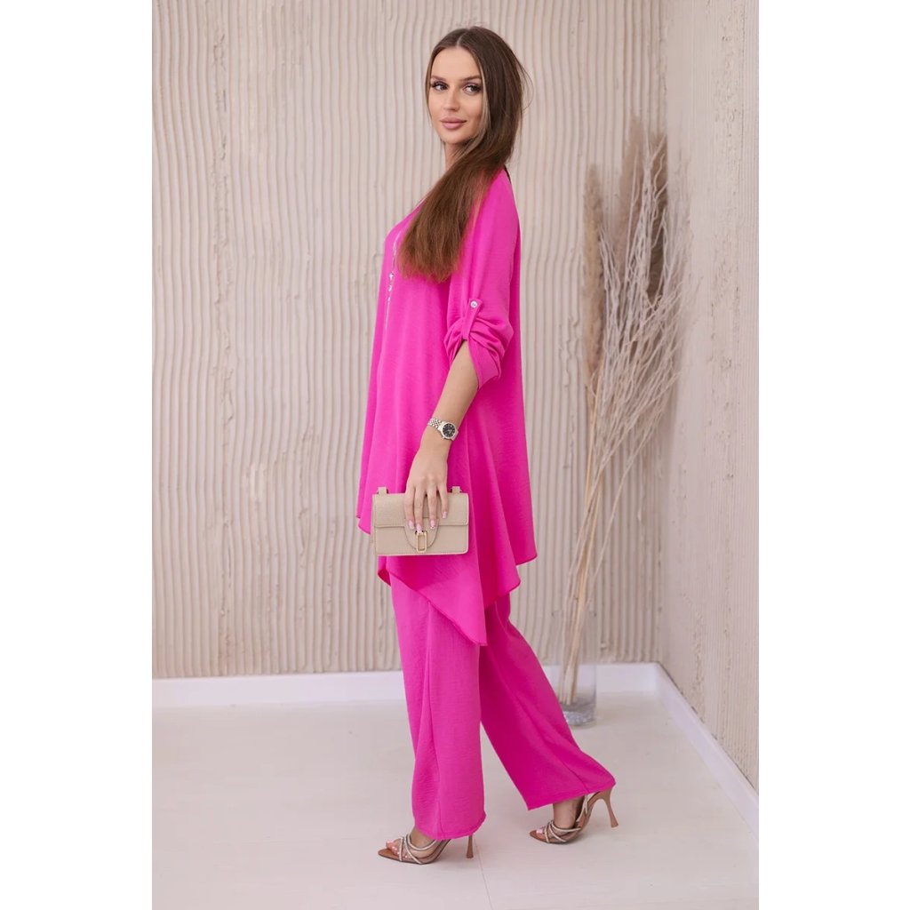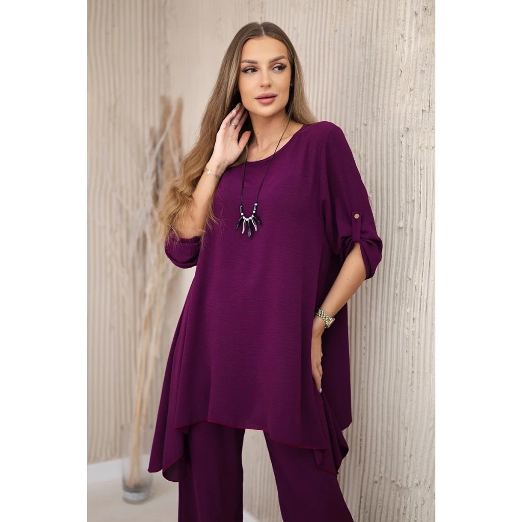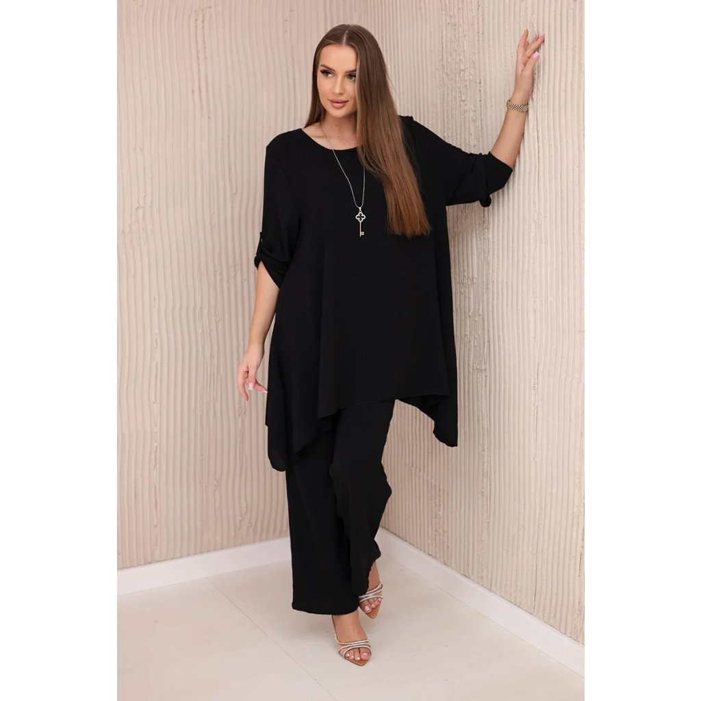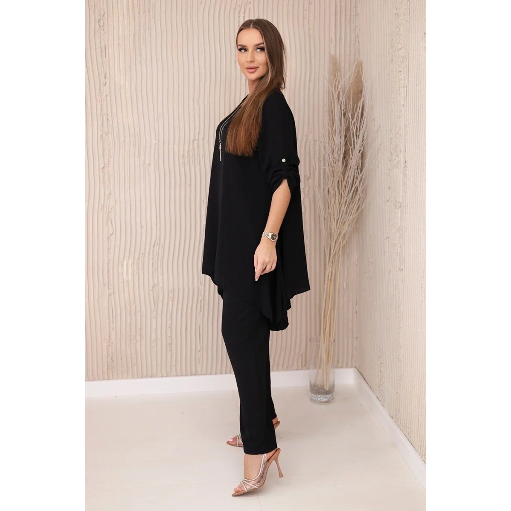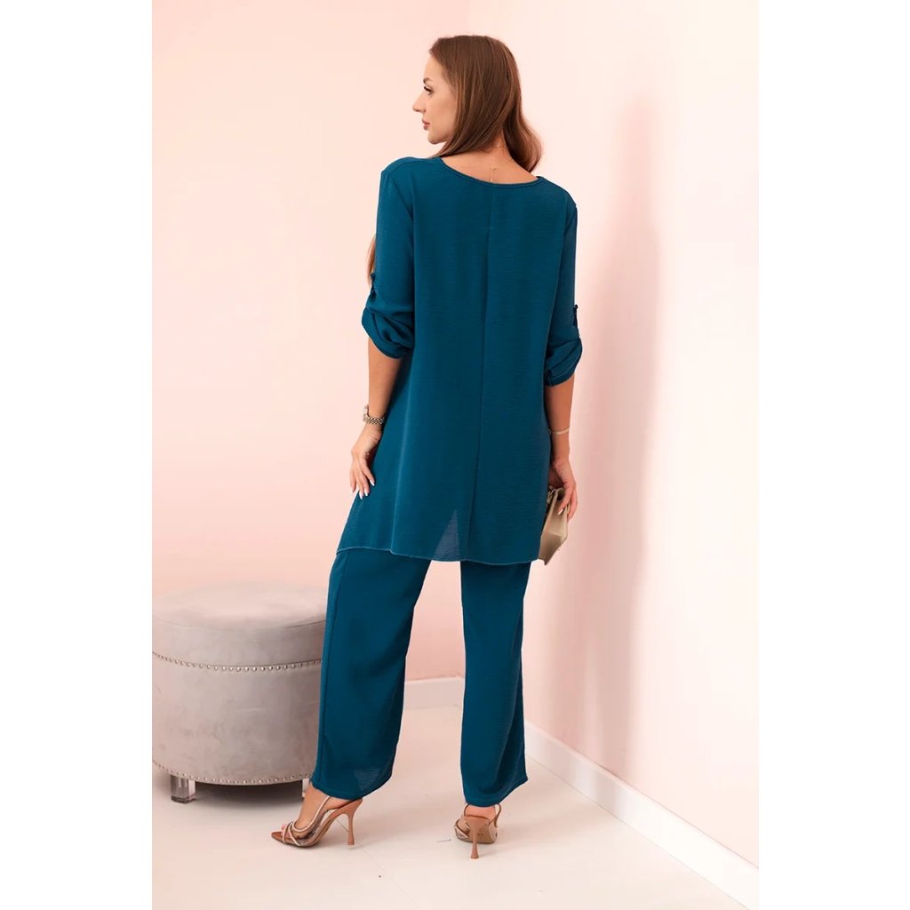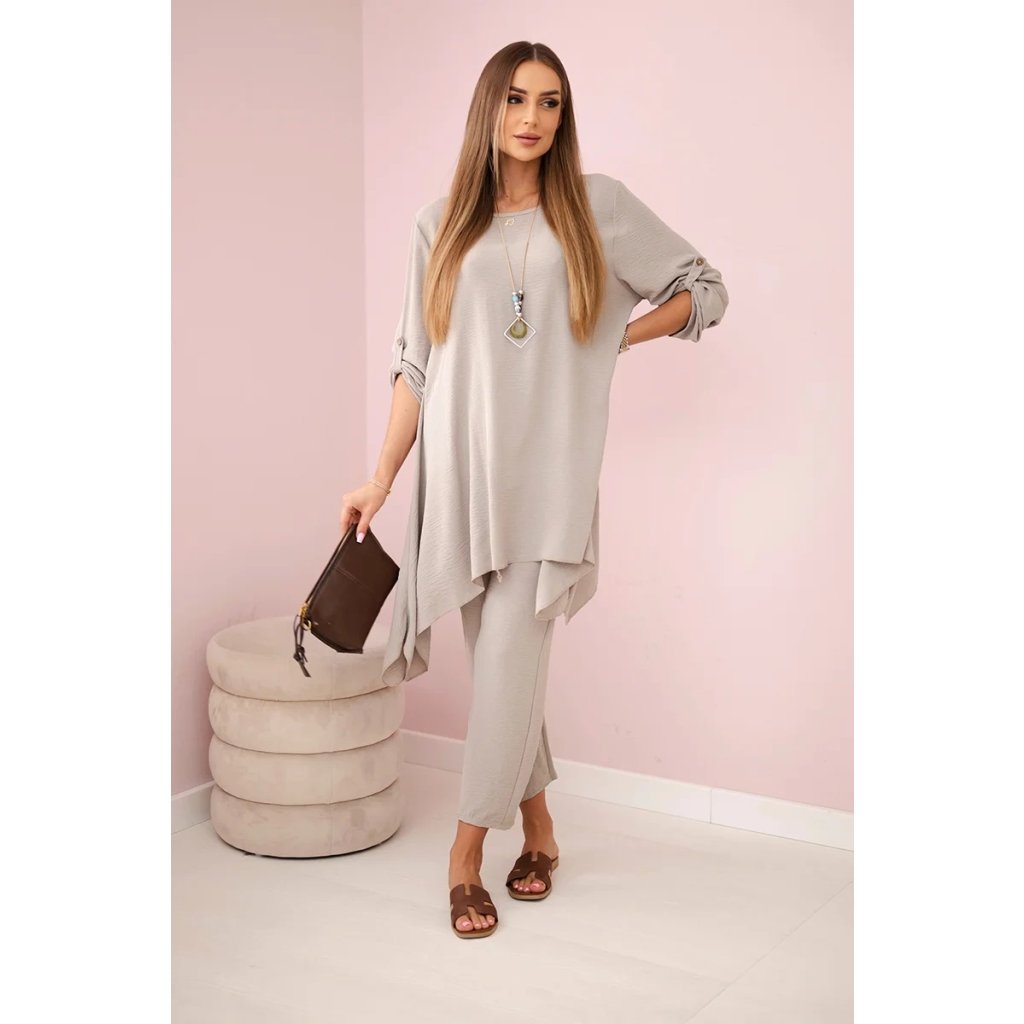 Talianska dvojdielna súprava pozostávajúca z blúzky a nohavíc je elegantný set, ktorý dodá šarm a štýl každému štýlu. Vliesová blúzka dodáva jemnú ženskosť, zvýrazňuje postavu a zároveň zaručuje voľnosť pohybu. Klasický strih nohavíc dokonale ladí s elegantnou blúzkou a vytvára tak ucelený a štýlový celok. Prívesok v tvare kľúča je tiež očarujúcim detailom, ktorý dodáva tejto súprave originalitu a charakter a vytvára harmonickú kompozíciu. Je to elegantný doplnok, ktorý zdôrazňuje jedinečnosť a pozornosť venovanú detailom v celom štýle. Táto talianska súprava je ideálna na rôzne príležitosti, od obchodných stretnutí až po romantické rande. Je to rafinovaná voľba pre ľudí, ktorí ocenia eleganciu a pohodlie v jednom. Veľkosť je univerzálna a vyhovuje ženám, ktoré nosia veľkosť S, M alebo L.