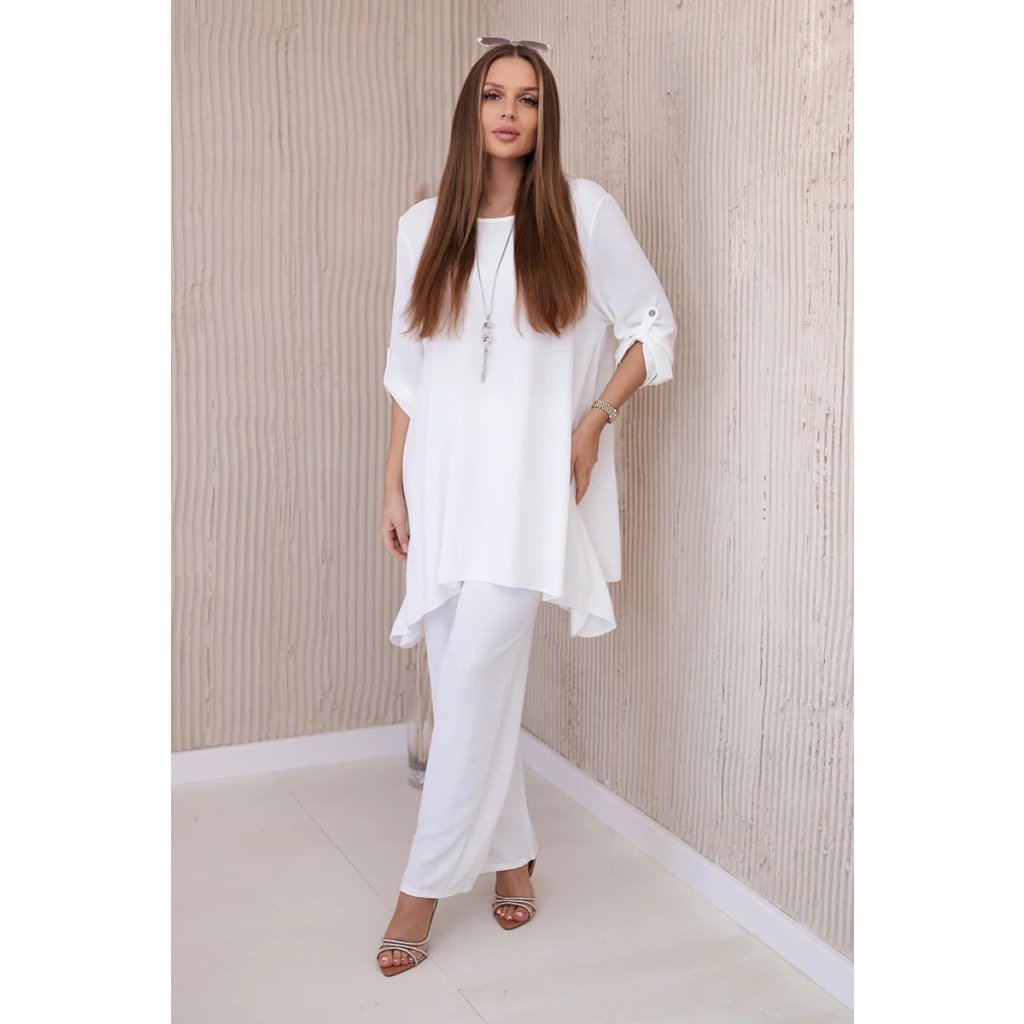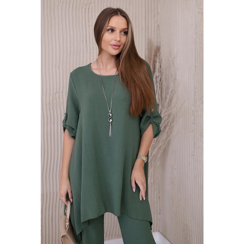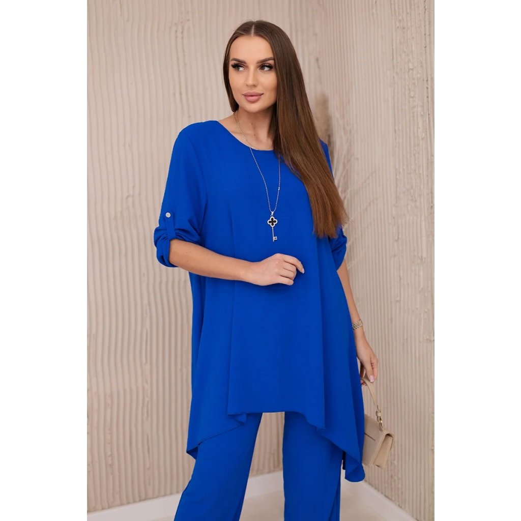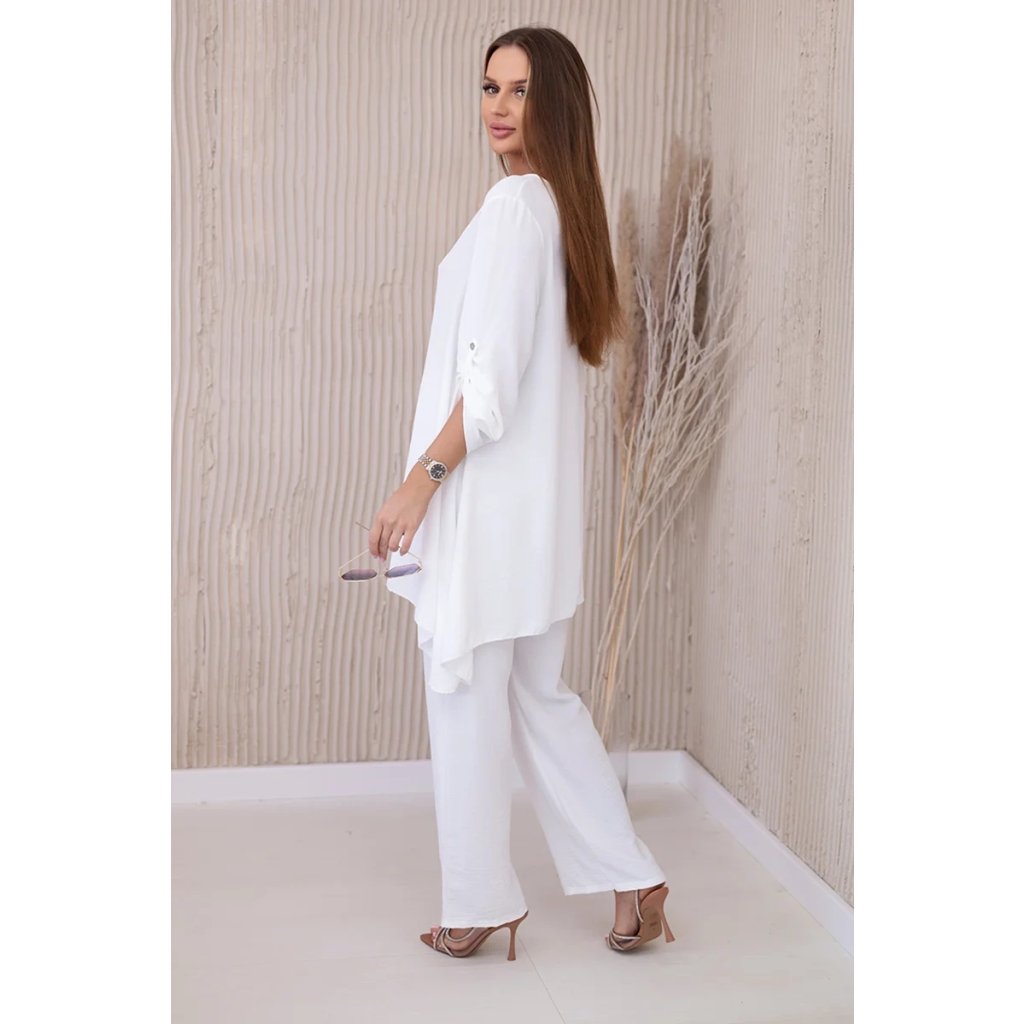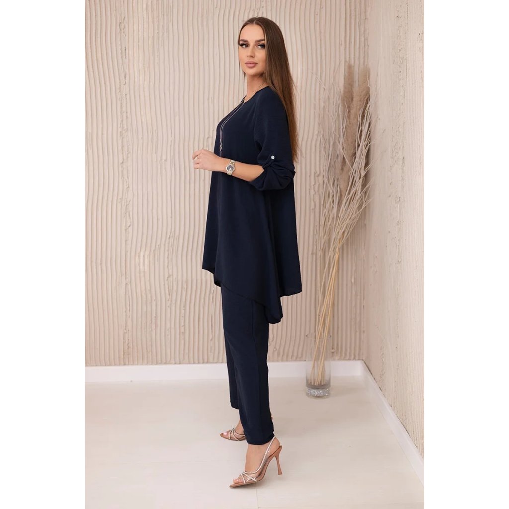 Talianska dvojdielna súprava pozostávajúca z blúzky a nohavíc je elegantný set, ktorý dodá šarm a štýl každému štýlu. Vliesová blúzka dodáva jemnú ženskosť, zvýrazňuje postavu a zároveň zaručuje voľnosť pohybu. Klasický strih nohavíc dokonale ladí s elegantnou blúzkou a vytvára tak ucelený a štýlový celok. Prívesok v tvare kľúča je tiež očarujúcim detailom, ktorý dodáva tejto súprave originalitu a charakter a vytvára harmonickú kompozíciu. Je to elegantný doplnok, ktorý zdôrazňuje jedinečnosť a pozornosť venovanú detailom v celom štýle. Táto talianska súprava je ideálna na rôzne príležitosti, od obchodných stretnutí až po romantické rande. Je to rafinovaná voľba pre ľudí, ktorí ocenia eleganciu a pohodlie v jednom. Veľkosť je univerzálna a vyhovuje ženám, ktoré nosia veľkosť S, M alebo L.