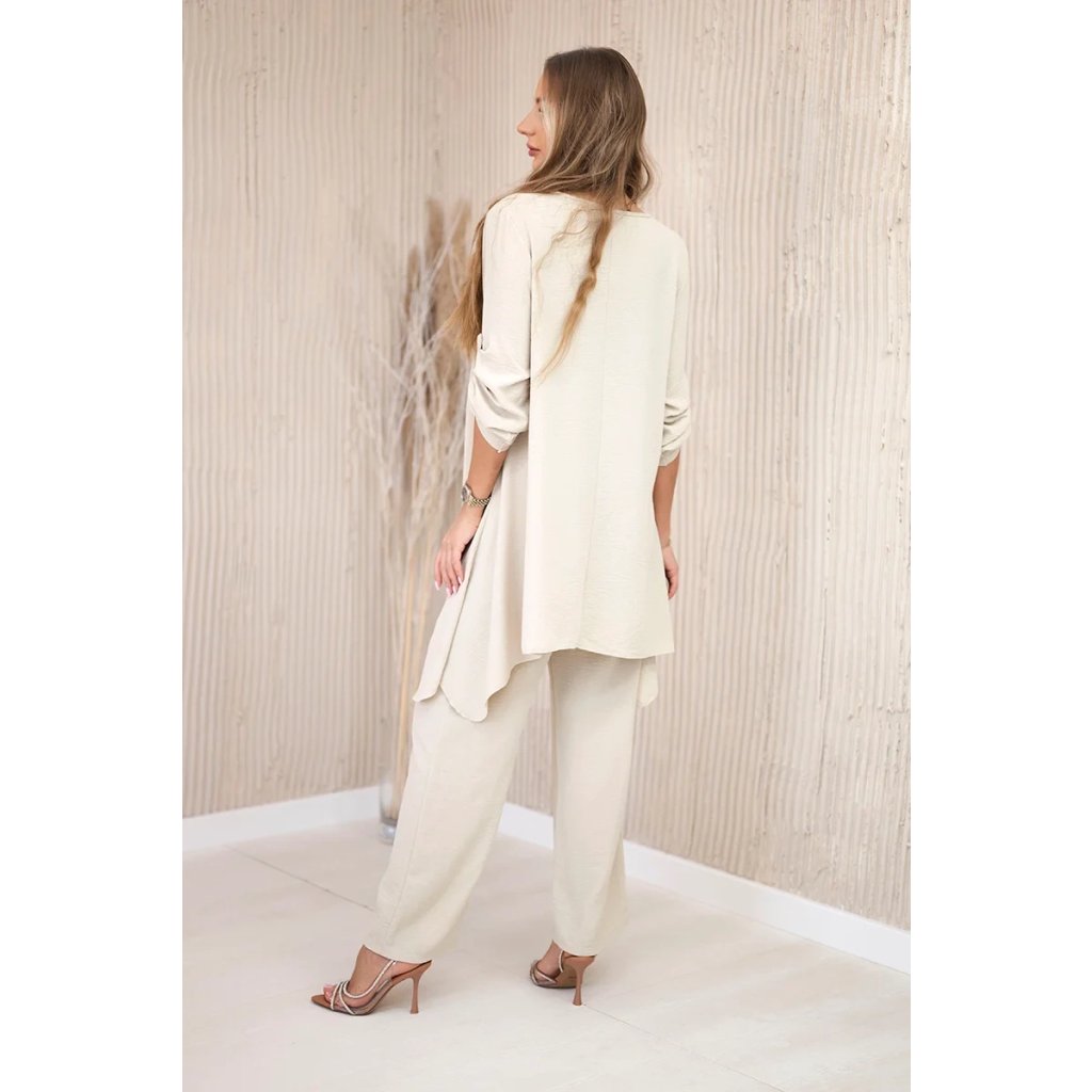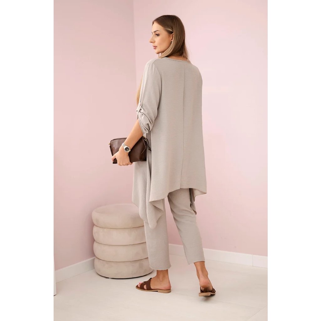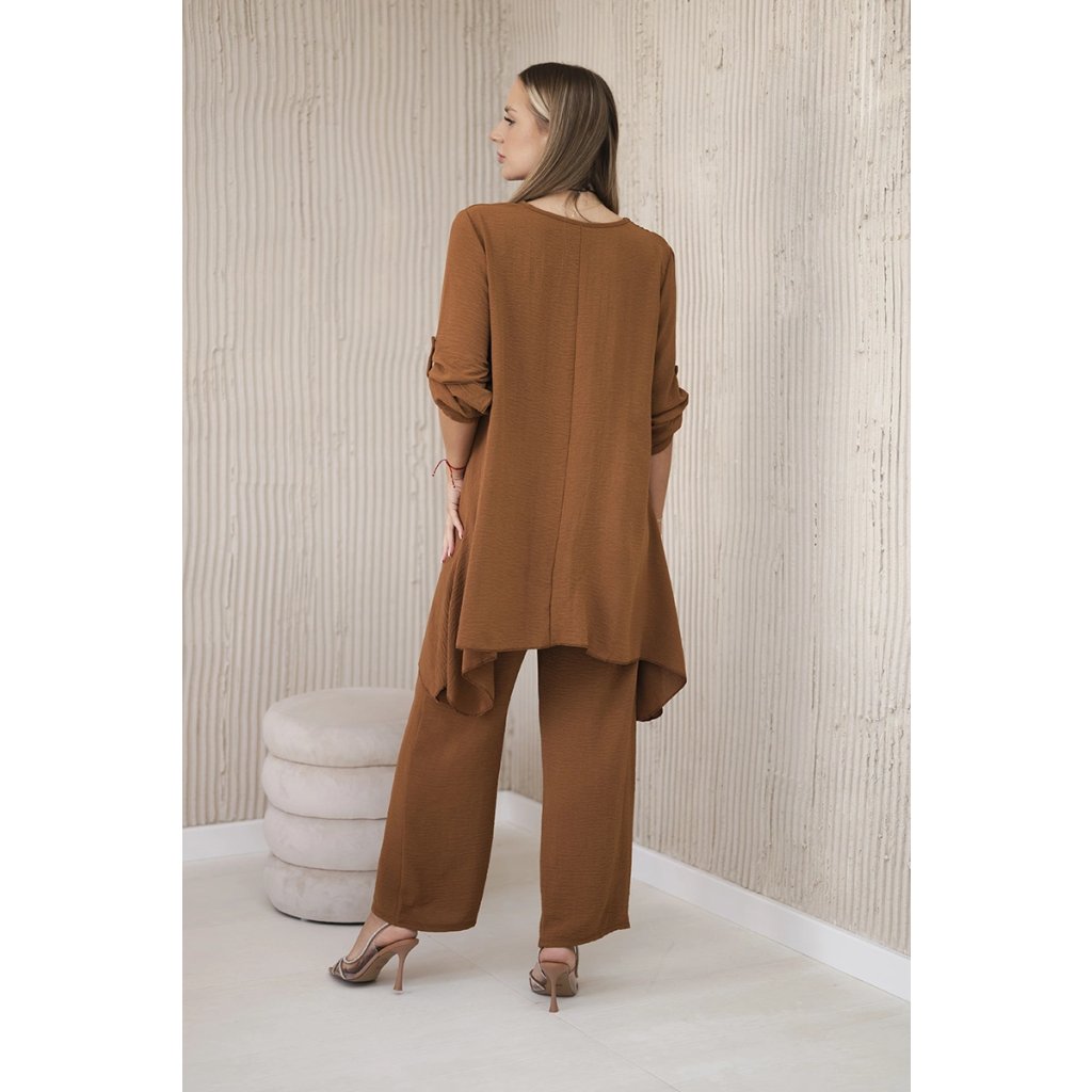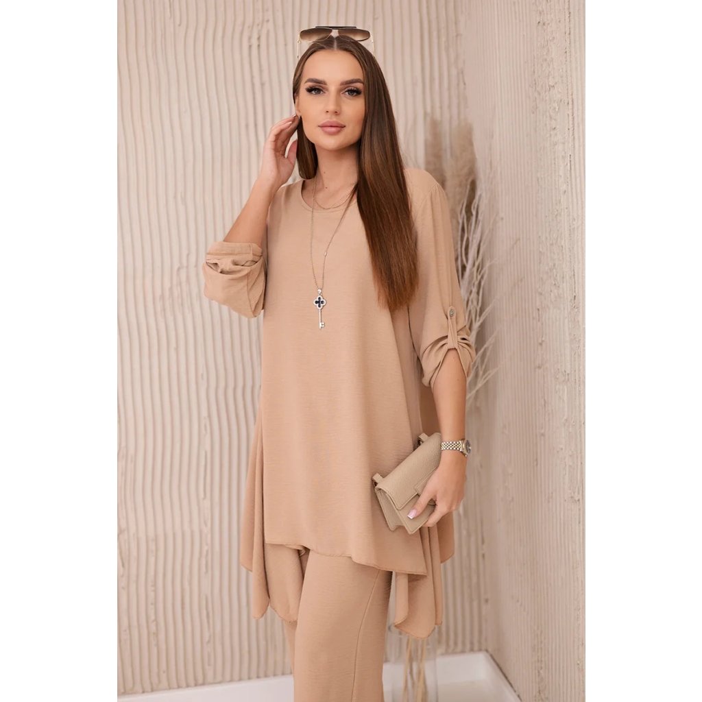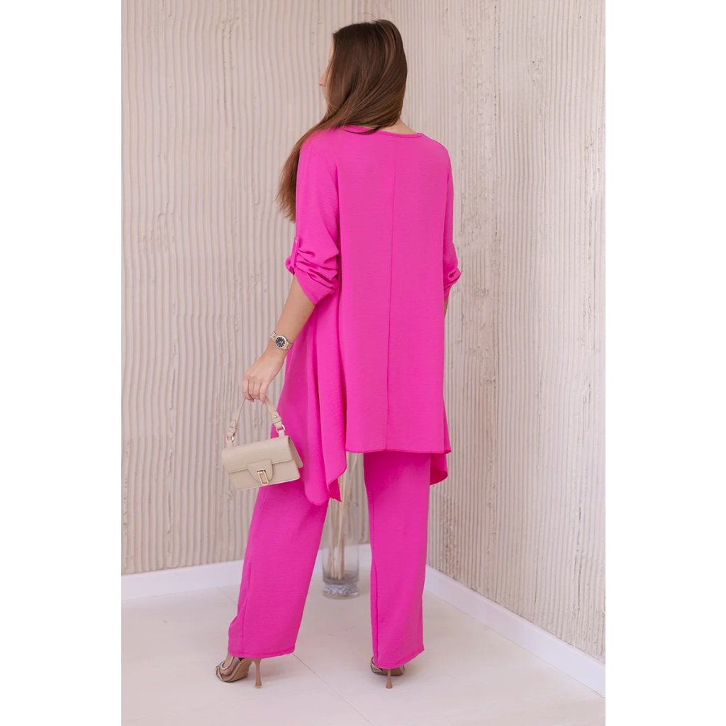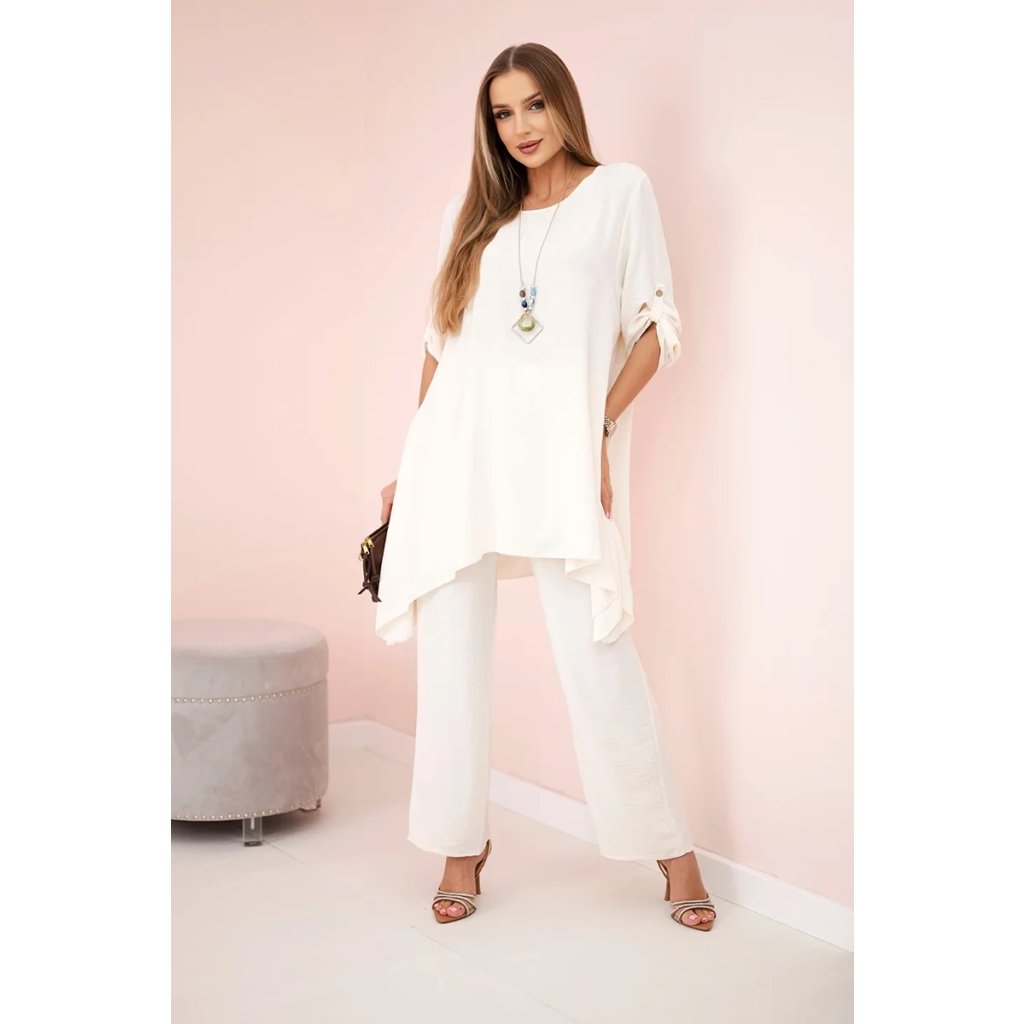Talianska dvojdielna súprava pozostávajúca z blúzky a nohavíc je elegantný set, ktorý dodá šarm a štýl každému štýlu. Vliesová blúzka dodáva jemnú ženskosť, zvýrazňuje postavu a zároveň zaručuje voľnosť pohybu. Klasický strih nohavíc dokonale ladí s elegantnou blúzkou a vytvára tak ucelený a štýlový celok. Prívesok v tvare kľúča je tiež očarujúcim detailom, ktorý dodáva tejto súprave originalitu a charakter a vytvára harmonickú kompozíciu. Je to elegantný doplnok, ktorý zdôrazňuje jedinečnosť a pozornosť venovanú detailom v celom štýle. Táto talianska súprava je ideálna na rôzne príležitosti, od obchodných stretnutí až po romantické rande. Je to rafinovaná voľba pre ľudí, ktorí ocenia eleganciu a pohodlie v jednom. Veľkosť je univerzálna a vyhovuje ženám, ktoré nosia veľkosť S, M alebo L.