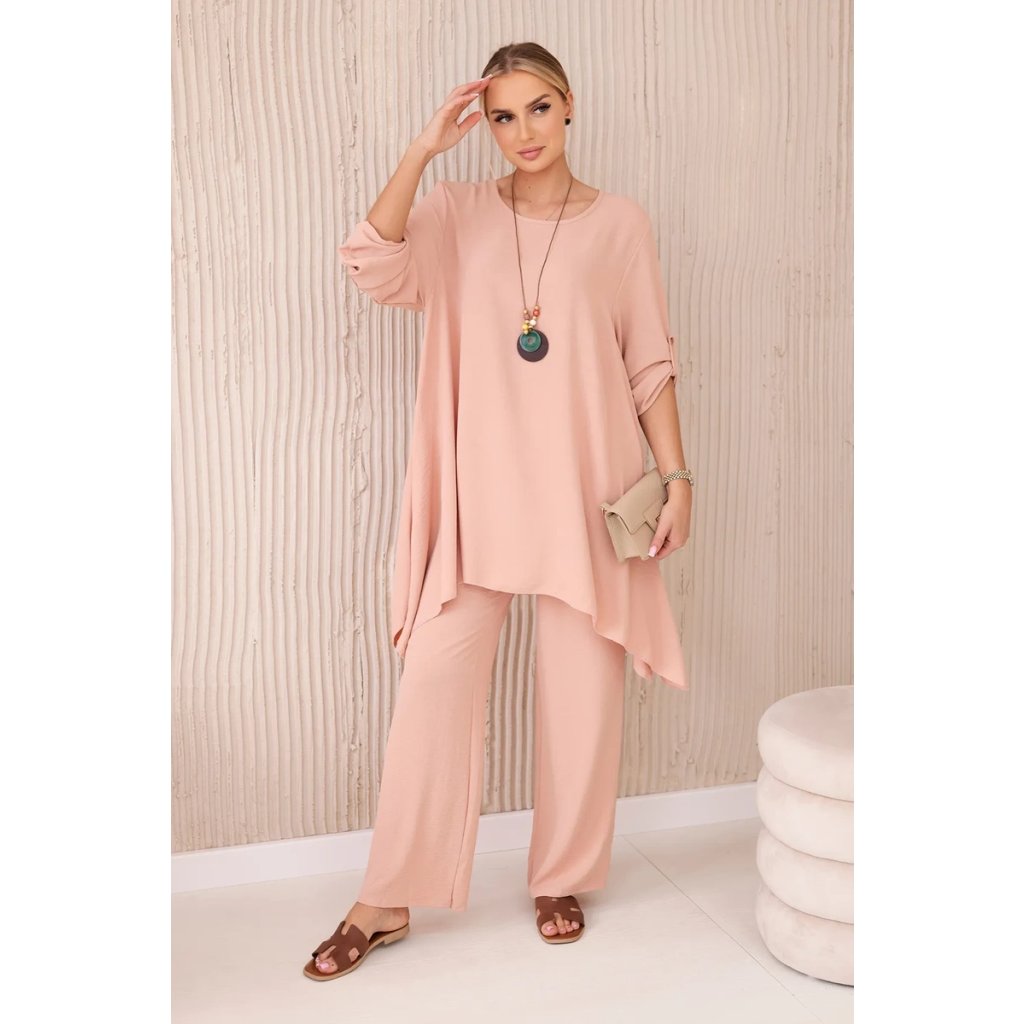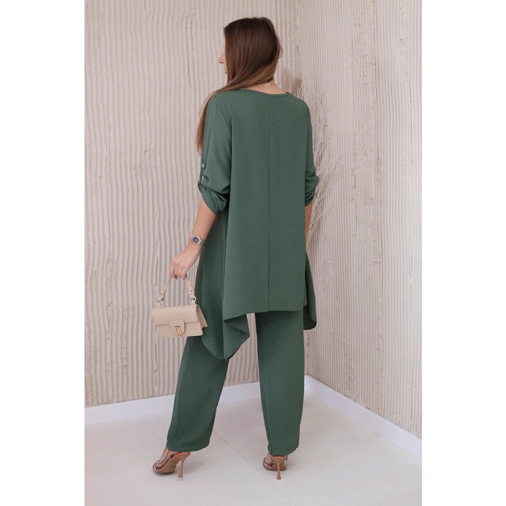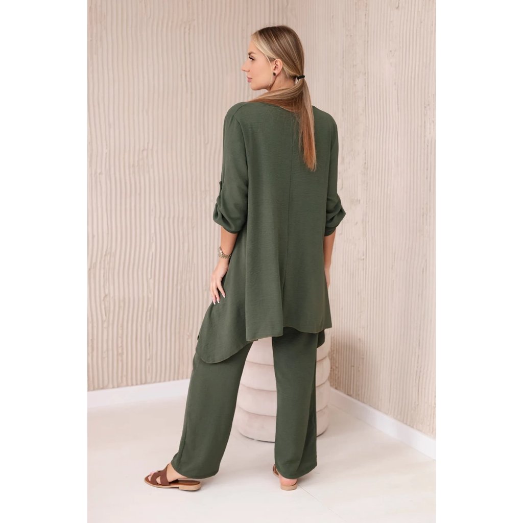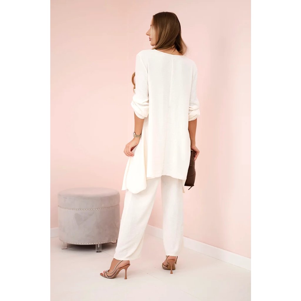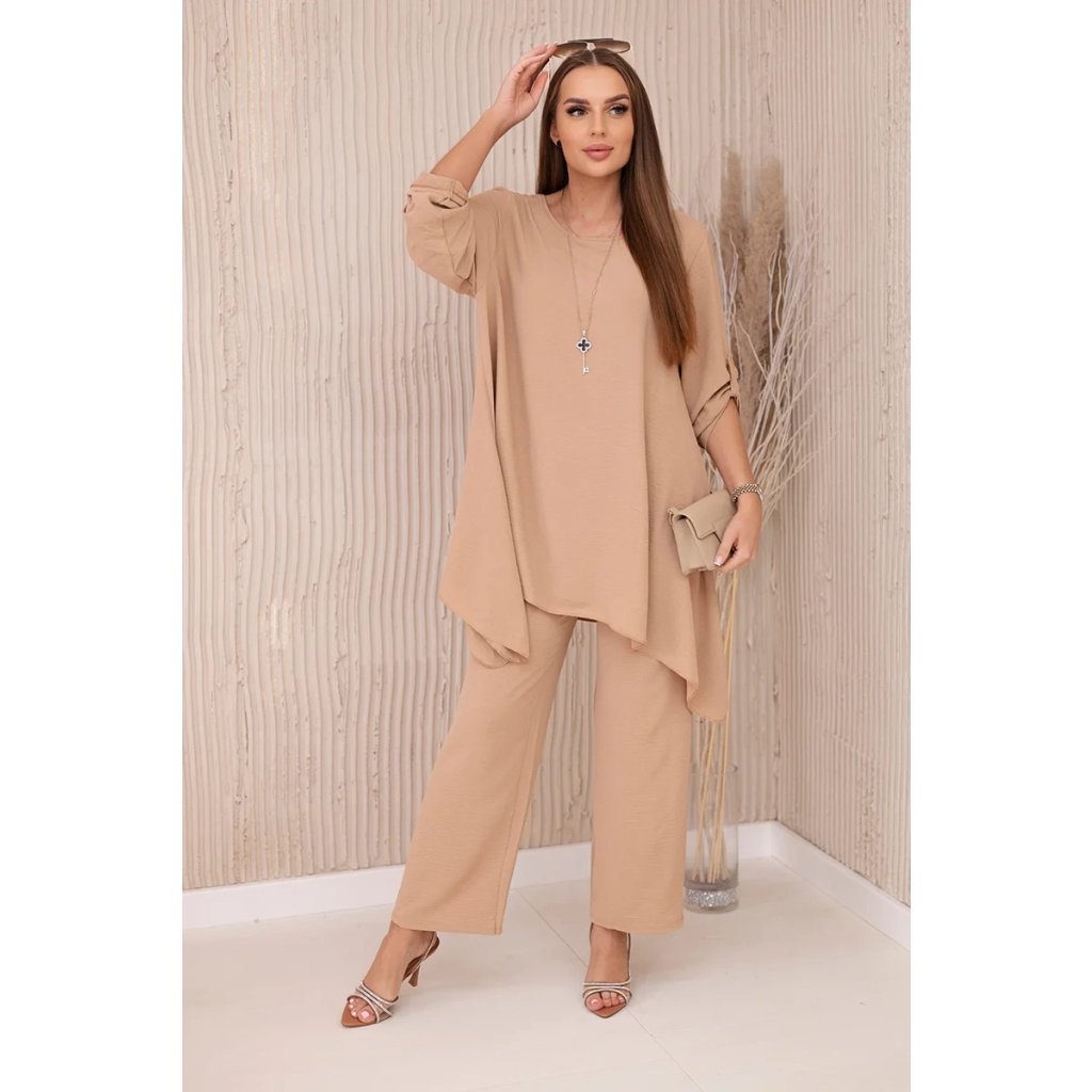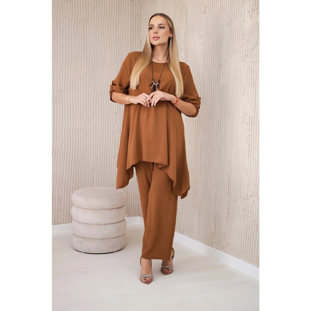 Talianska dvojdielna súprava pozostávajúca z blúzky a nohavíc je elegantný set, ktorý dodá šarm a štýl každému štýlu. Vliesová blúzka dodáva jemnú ženskosť, zvýrazňuje postavu a zároveň zaručuje voľnosť pohybu. Klasický strih nohavíc dokonale ladí s elegantnou blúzkou a vytvára tak ucelený a štýlový celok. Prívesok v tvare kľúča je tiež očarujúcim detailom, ktorý dodáva tejto súprave originalitu a charakter a vytvára harmonickú kompozíciu. Je to elegantný doplnok, ktorý zdôrazňuje jedinečnosť a pozornosť venovanú detailom v celom štýle. Táto talianska súprava je ideálna na rôzne príležitosti, od obchodných stretnutí až po romantické rande. Je to rafinovaná voľba pre ľudí, ktorí ocenia eleganciu a pohodlie v jednom. Veľkosť je univerzálna a vyhovuje ženám, ktoré nosia veľkosť S, M alebo L.