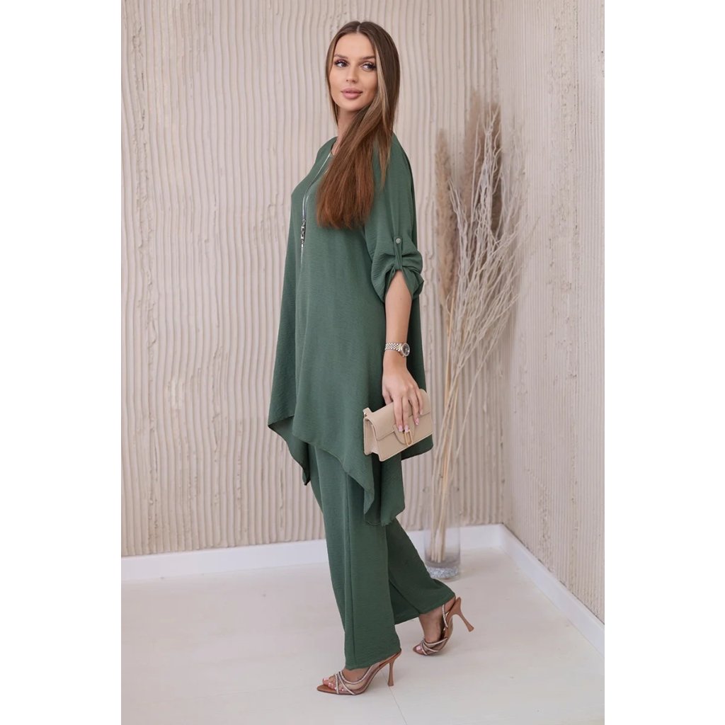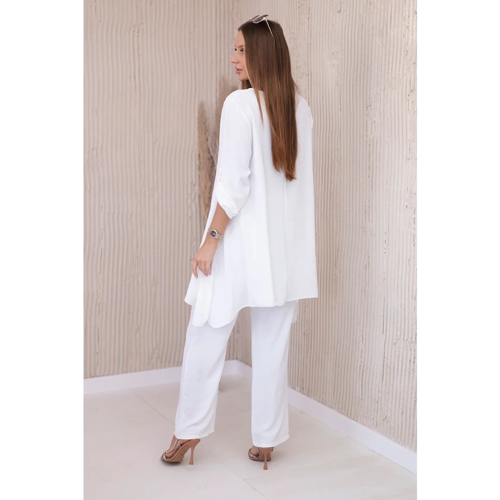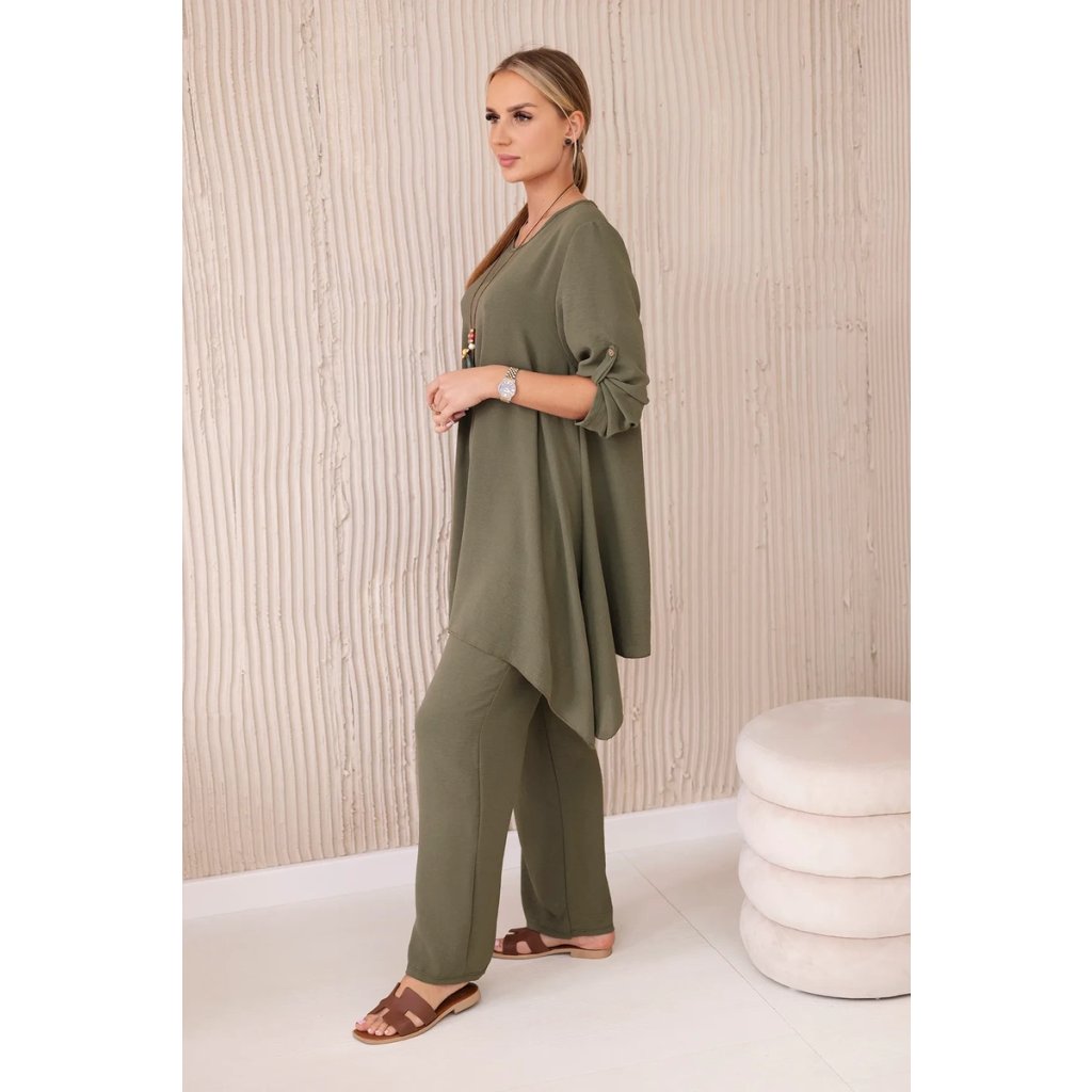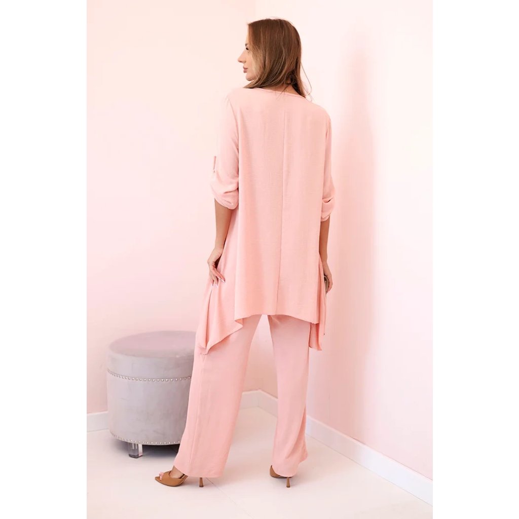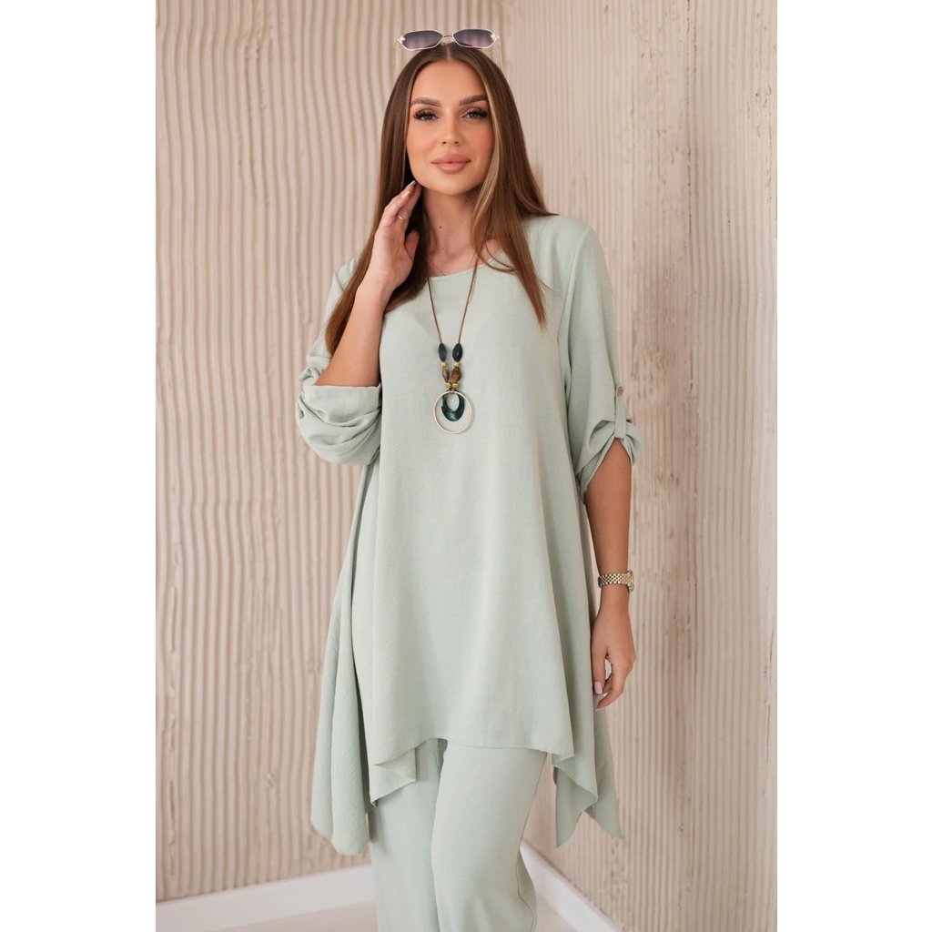 Talianska dvojdielna súprava pozostávajúca z blúzky a nohavíc je elegantný set, ktorý dodá šarm a štýl každému štýlu. Vliesová blúzka dodáva jemnú ženskosť, zvýrazňuje postavu a zároveň zaručuje voľnosť pohybu. Klasický strih nohavíc dokonale ladí s elegantnou blúzkou a vytvára tak ucelený a štýlový celok. Prívesok v tvare kľúča je tiež očarujúcim detailom, ktorý dodáva tejto súprave originalitu a charakter a vytvára harmonickú kompozíciu. Je to elegantný doplnok, ktorý zdôrazňuje jedinečnosť a pozornosť venovanú detailom v celom štýle. Táto talianska súprava je ideálna na rôzne príležitosti, od obchodných stretnutí až po romantické rande. Je to rafinovaná voľba pre ľudí, ktorí ocenia eleganciu a pohodlie v jednom. Veľkosť je univerzálna a vyhovuje ženám, ktoré nosia veľkosť S, M alebo L.