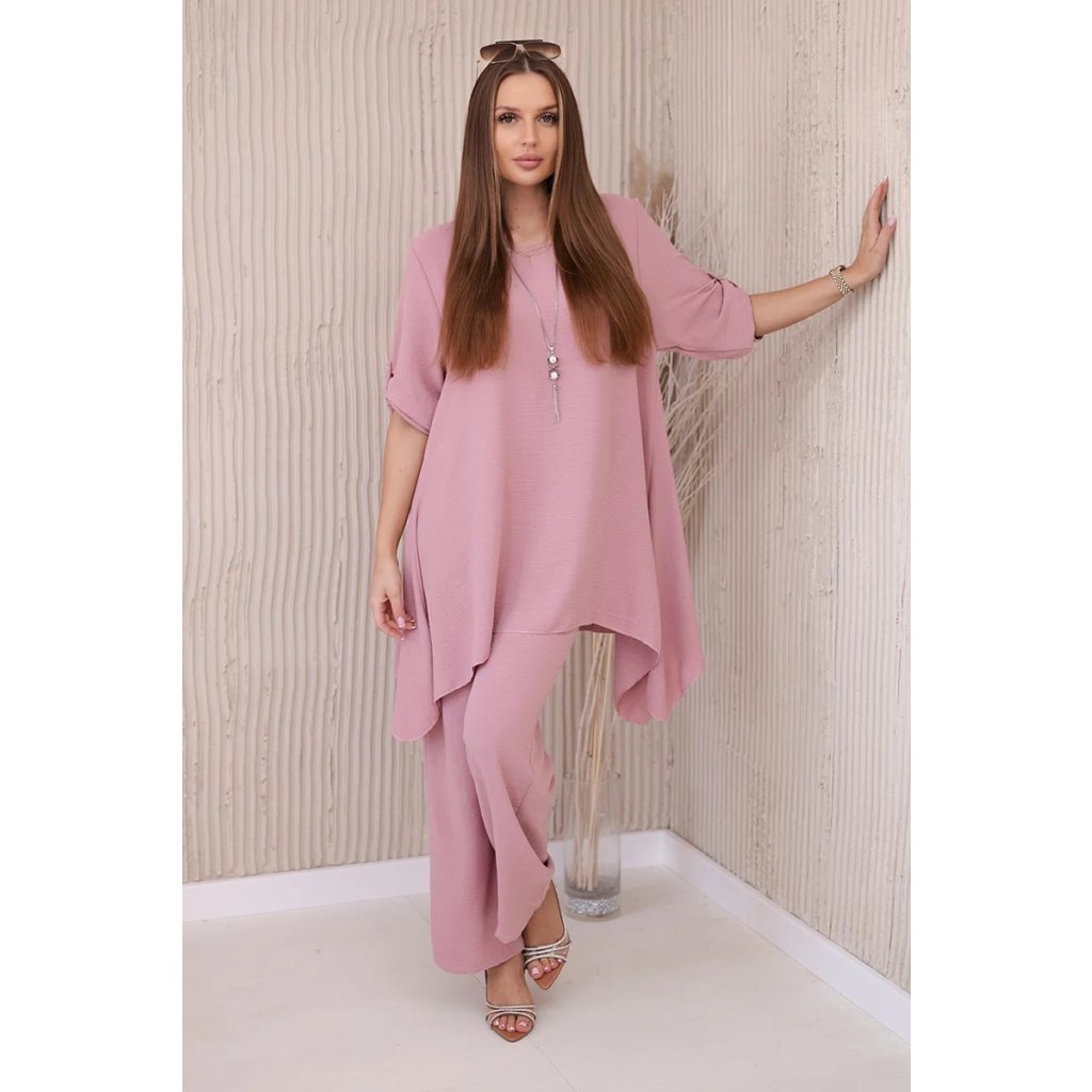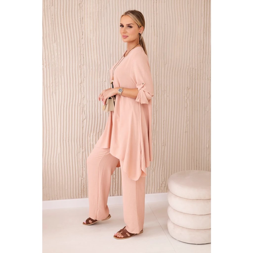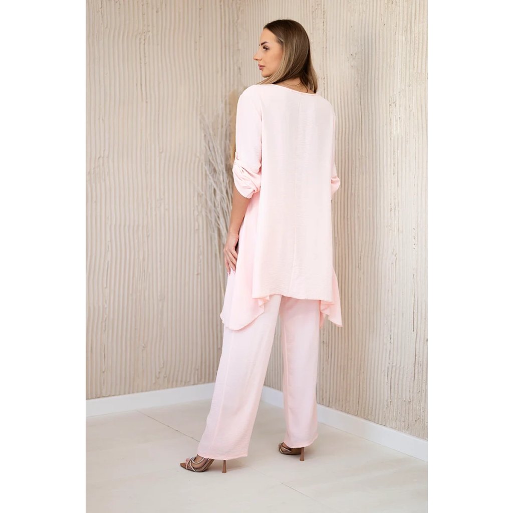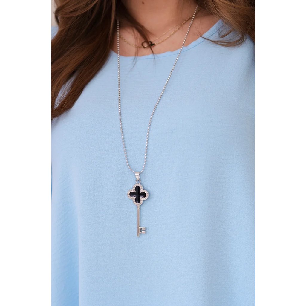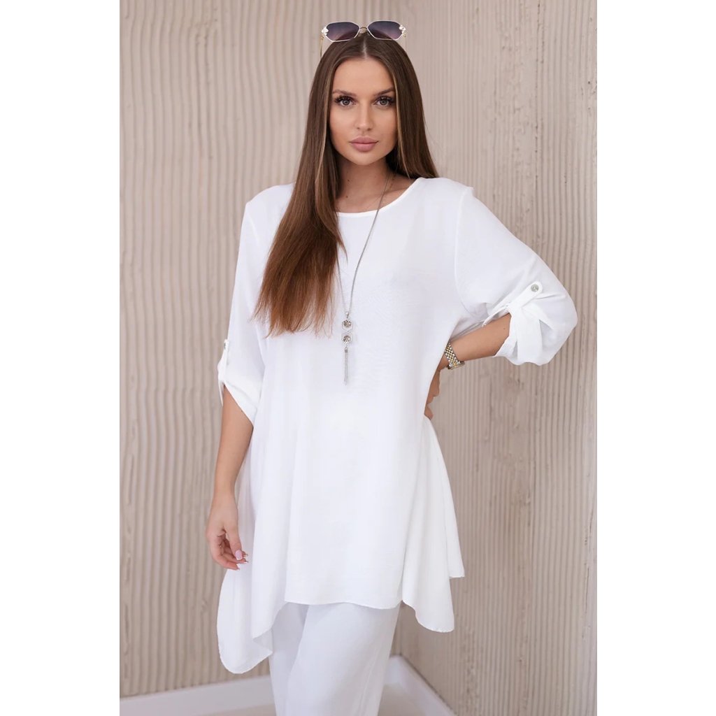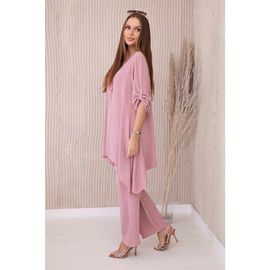 Talianska dvojdielna súprava pozostávajúca z blúzky a nohavíc je elegantný set, ktorý dodá šarm a štýl každému štýlu. Vliesová blúzka dodáva jemnú ženskosť, zvýrazňuje postavu a zároveň zaručuje voľnosť pohybu. Klasický strih nohavíc dokonale ladí s elegantnou blúzkou a vytvára tak ucelený a štýlový celok. Prívesok v tvare kľúča je tiež očarujúcim detailom, ktorý dodáva tejto súprave originalitu a charakter a vytvára harmonickú kompozíciu. Je to elegantný doplnok, ktorý zdôrazňuje jedinečnosť a pozornosť venovanú detailom v celom štýle. Táto talianska súprava je ideálna na rôzne príležitosti, od obchodných stretnutí až po romantické rande. Je to rafinovaná voľba pre ľudí, ktorí ocenia eleganciu a pohodlie v jednom. Veľkosť je univerzálna a vyhovuje ženám, ktoré nosia veľkosť S, M alebo L.