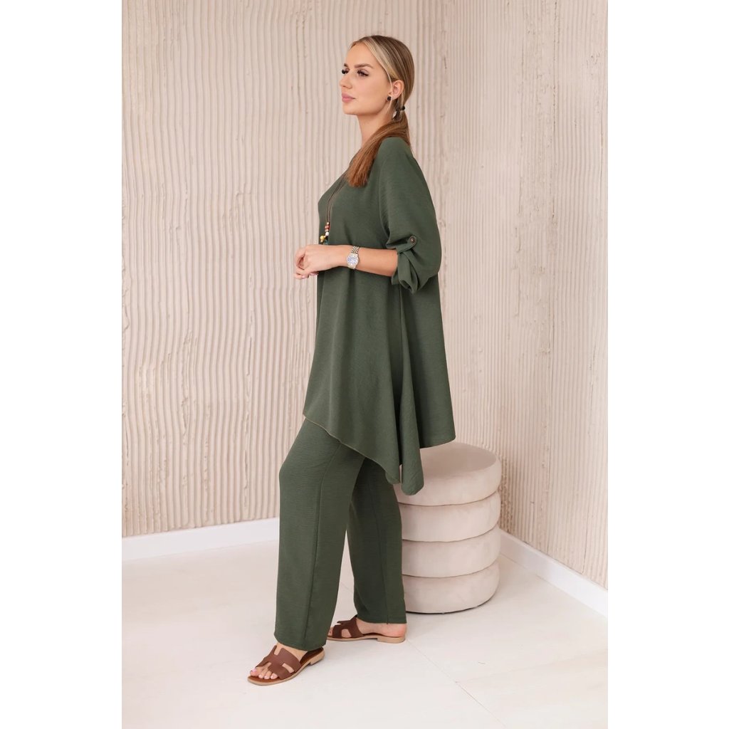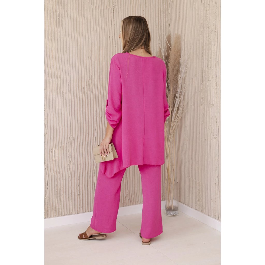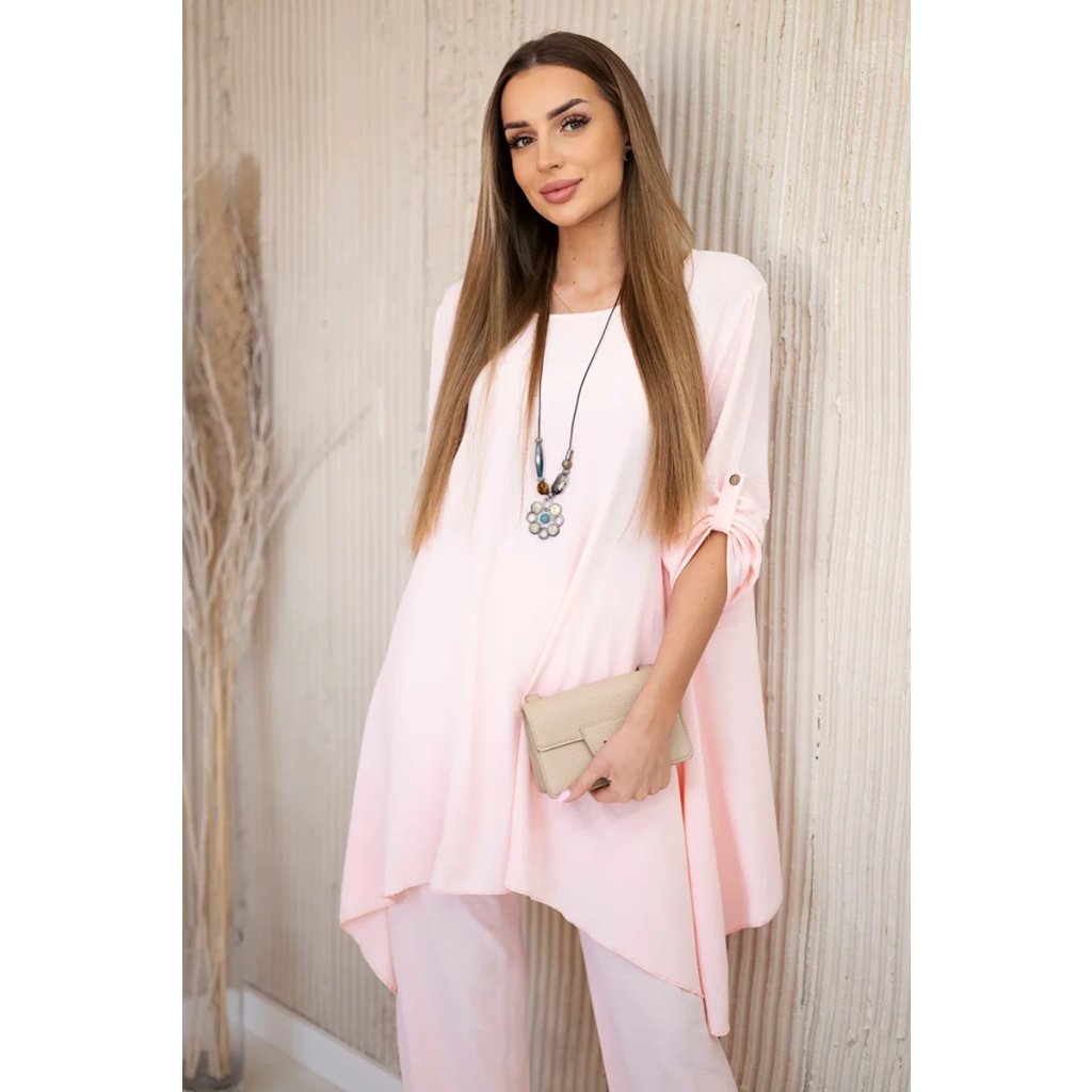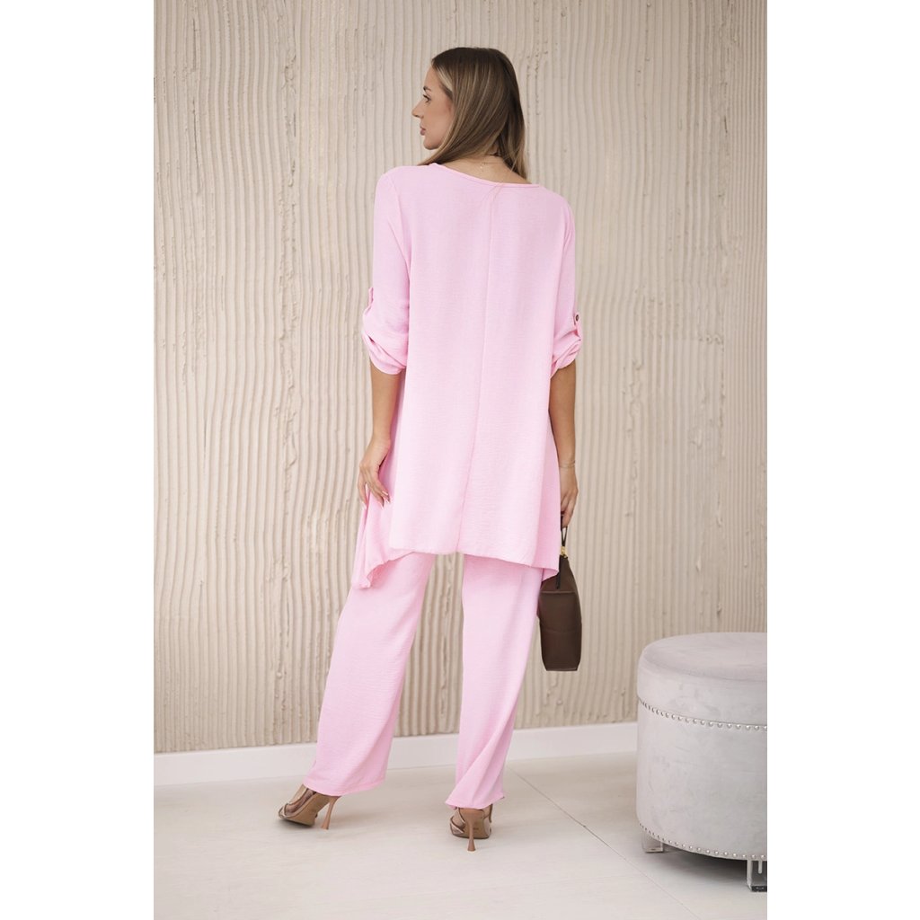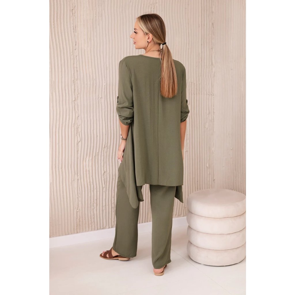 Talianska dvojdielna súprava pozostávajúca z blúzky a nohavíc je elegantný set, ktorý dodá šarm a štýl každému štýlu. Vliesová blúzka dodáva jemnú ženskosť, zvýrazňuje postavu a zároveň zaručuje voľnosť pohybu. Klasický strih nohavíc dokonale ladí s elegantnou blúzkou a vytvára tak ucelený a štýlový celok. Prívesok v tvare kľúča je tiež očarujúcim detailom, ktorý dodáva tejto súprave originalitu a charakter a vytvára harmonickú kompozíciu. Je to elegantný doplnok, ktorý zdôrazňuje jedinečnosť a pozornosť venovanú detailom v celom štýle. Táto talianska súprava je ideálna na rôzne príležitosti, od obchodných stretnutí až po romantické rande. Je to rafinovaná voľba pre ľudí, ktorí ocenia eleganciu a pohodlie v jednom. Veľkosť je univerzálna a vyhovuje ženám, ktoré nosia veľkosť S, M alebo L.