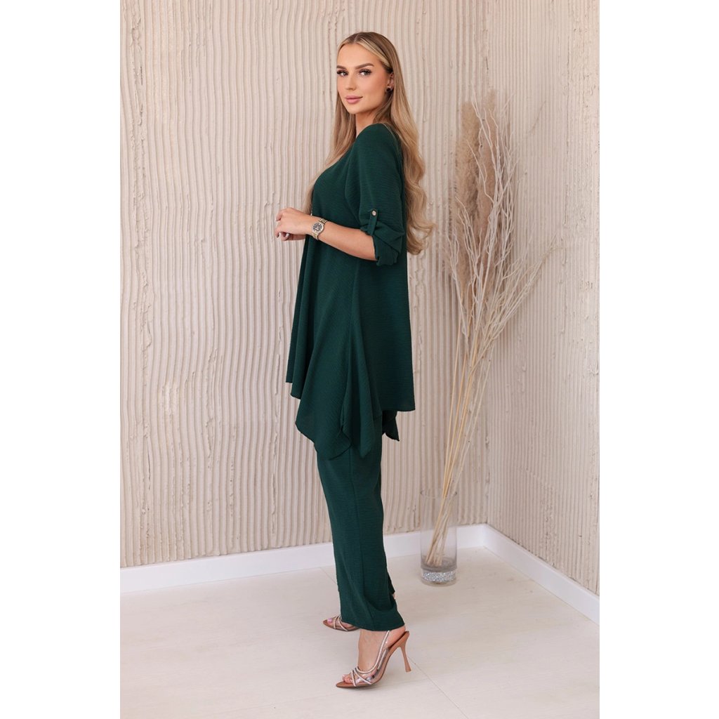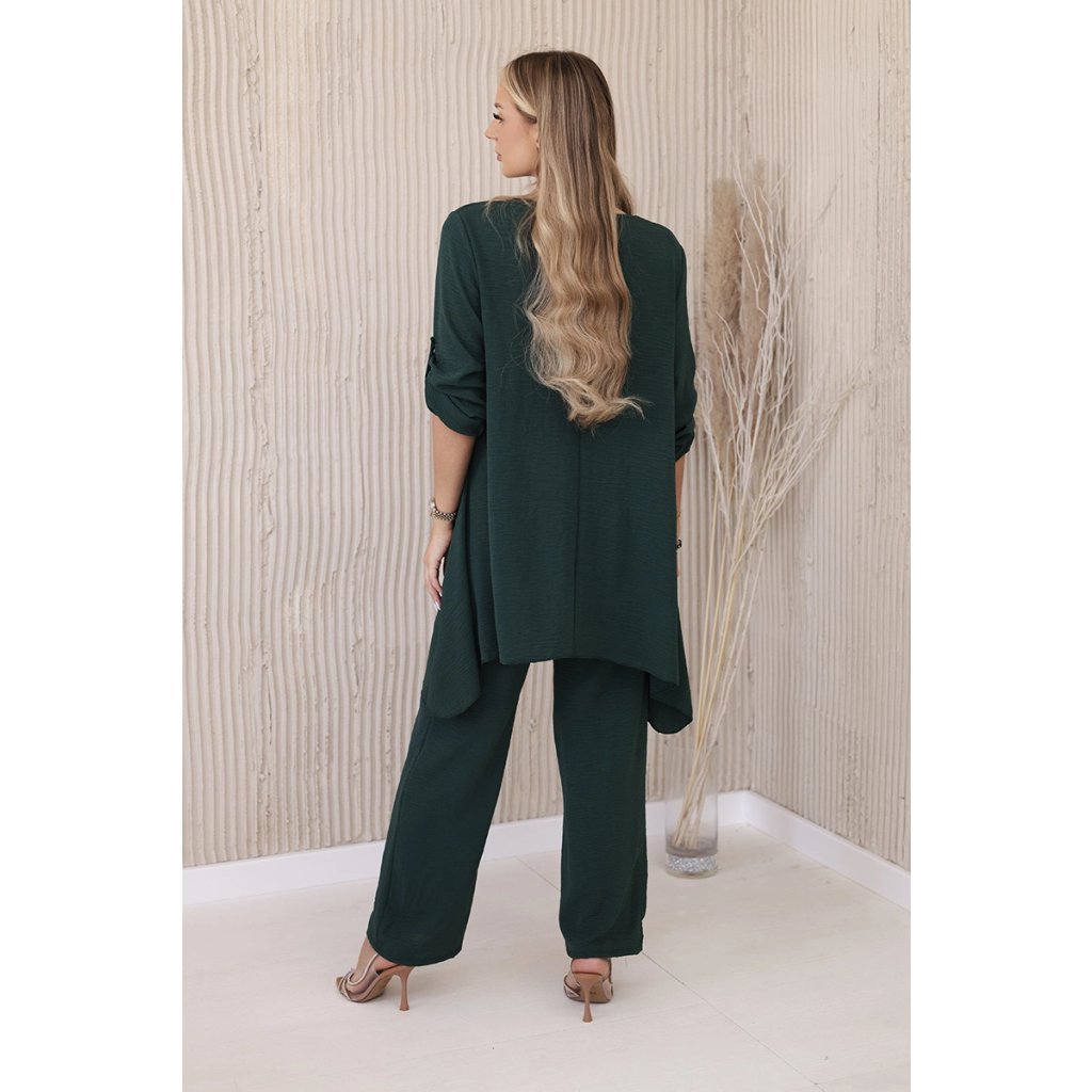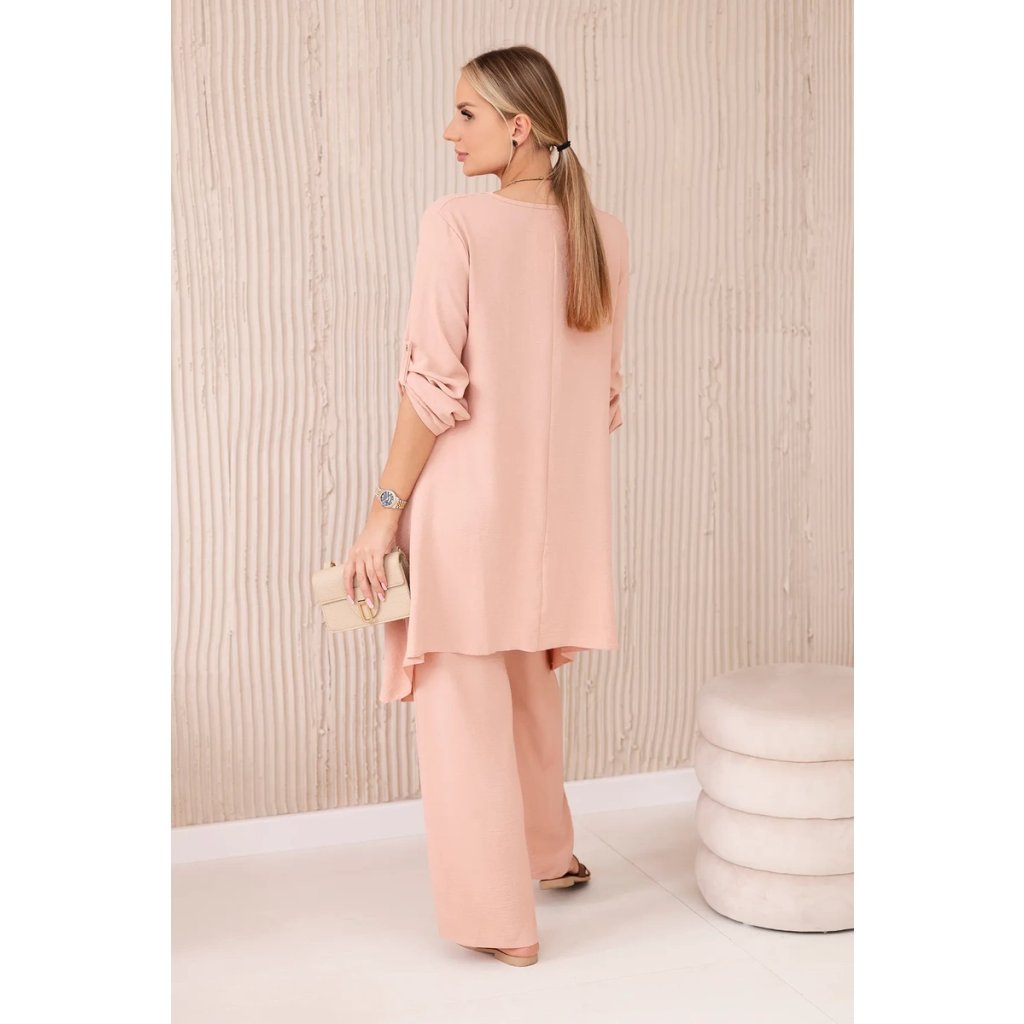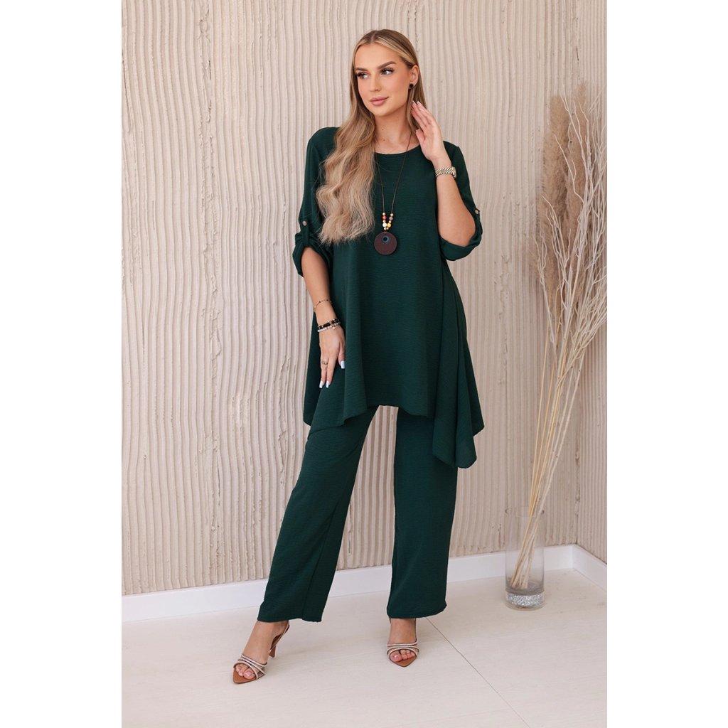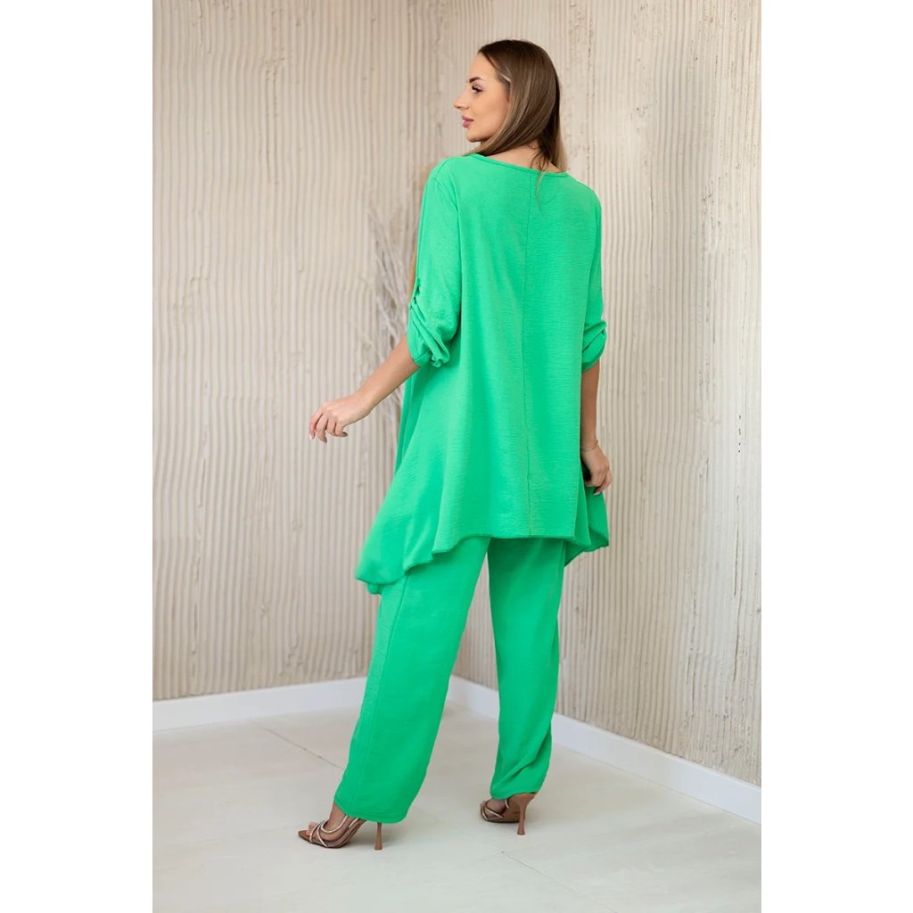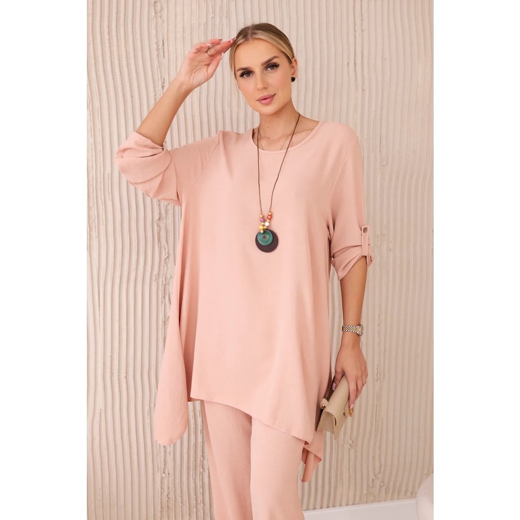 Talianska dvojdielna súprava pozostávajúca z blúzky a nohavíc je elegantný set, ktorý dodá šarm a štýl každému štýlu. Vliesová blúzka dodáva jemnú ženskosť, zvýrazňuje postavu a zároveň zaručuje voľnosť pohybu. Klasický strih nohavíc dokonale ladí s elegantnou blúzkou a vytvára tak ucelený a štýlový celok. Prívesok v tvare kľúča je tiež očarujúcim detailom, ktorý dodáva tejto súprave originalitu a charakter a vytvára harmonickú kompozíciu. Je to elegantný doplnok, ktorý zdôrazňuje jedinečnosť a pozornosť venovanú detailom v celom štýle. Táto talianska súprava je ideálna na rôzne príležitosti, od obchodných stretnutí až po romantické rande. Je to rafinovaná voľba pre ľudí, ktorí ocenia eleganciu a pohodlie v jednom. Veľkosť je univerzálna a vyhovuje ženám, ktoré nosia veľkosť S, M alebo L.