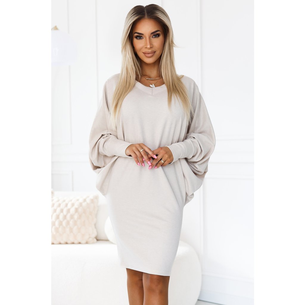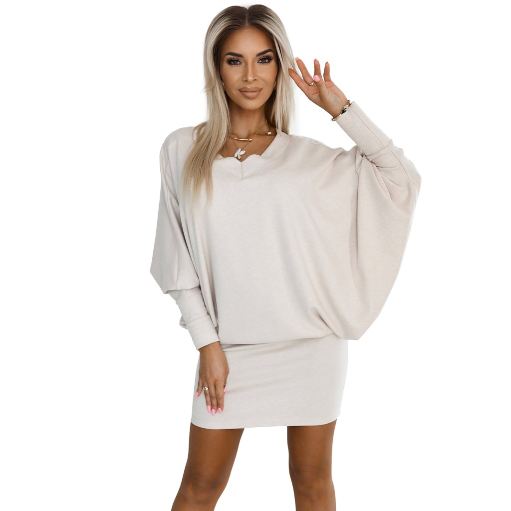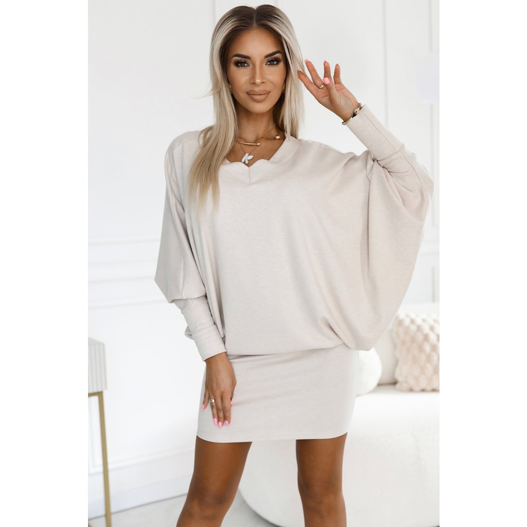 Sveter teplé netopierie šaty s výstrihom - béžový 402-7