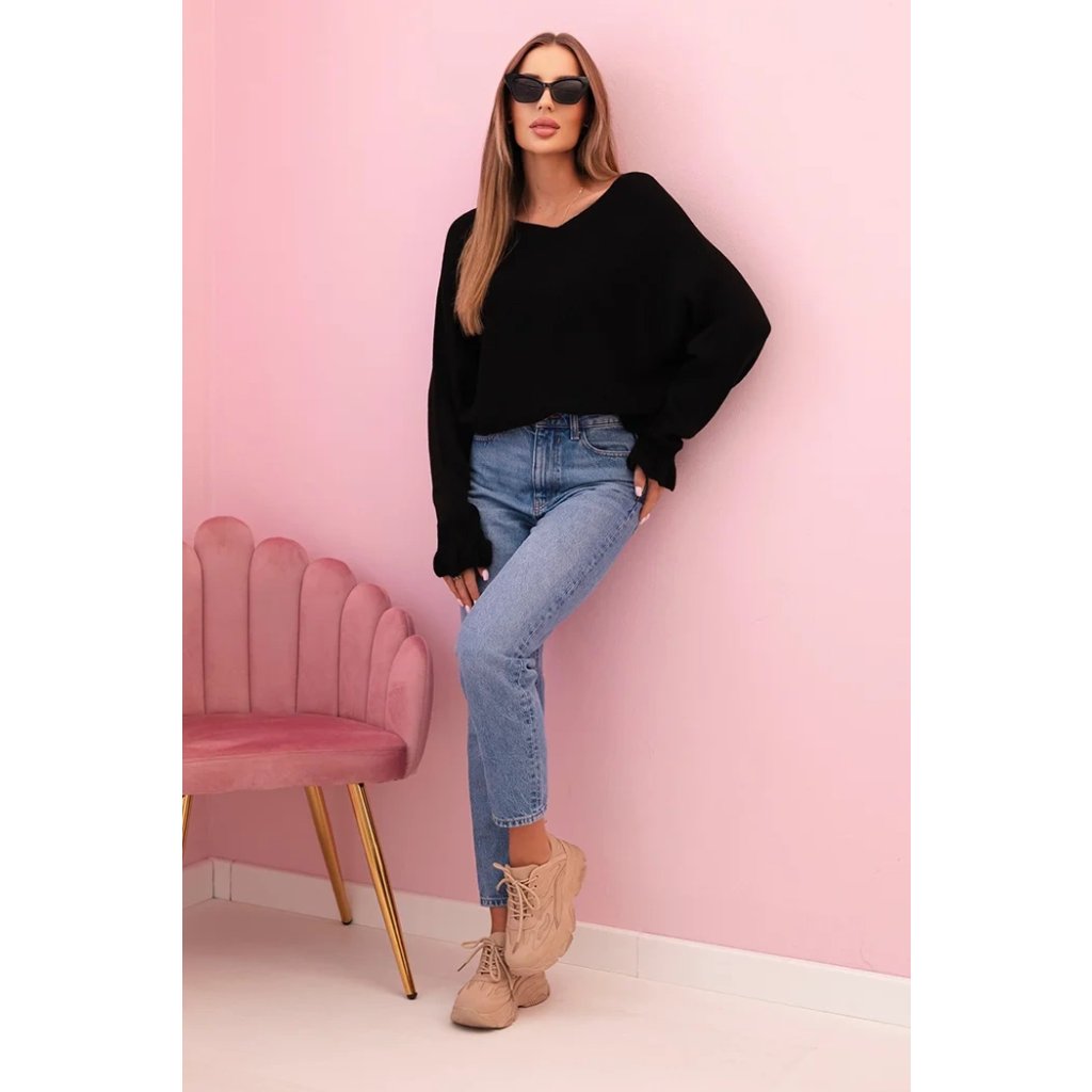 Sveter má módny výrez na chrbte, ktorý mu dodáva ľahkosť a originálny charakter. Je to skvelý návrh ako k džínsom, tak k elegantným nohaviciam – hodí sa do práce, na schôdzky alebo počas víkendového oddychu.