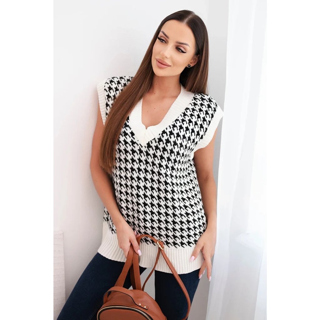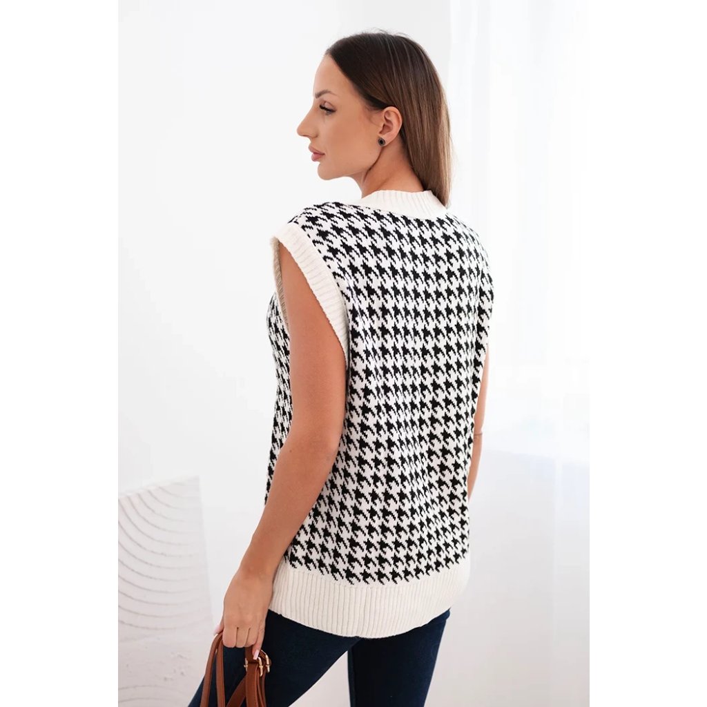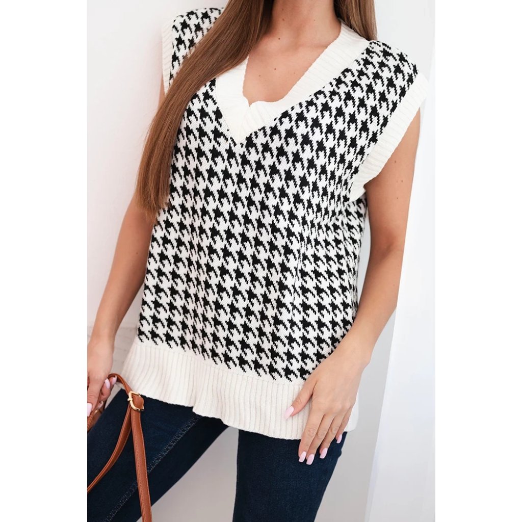Predstavujeme vám sveter bez rukávov. Sveter má veľmi módny vzor typu peplite. Veľmi štýlové, pre každú dámu. Sveter je vyrobený z kvalitného materiálu. Veľkosť je univerzálna a vyhovuje dámam vo veľkostiach M, L, XL.