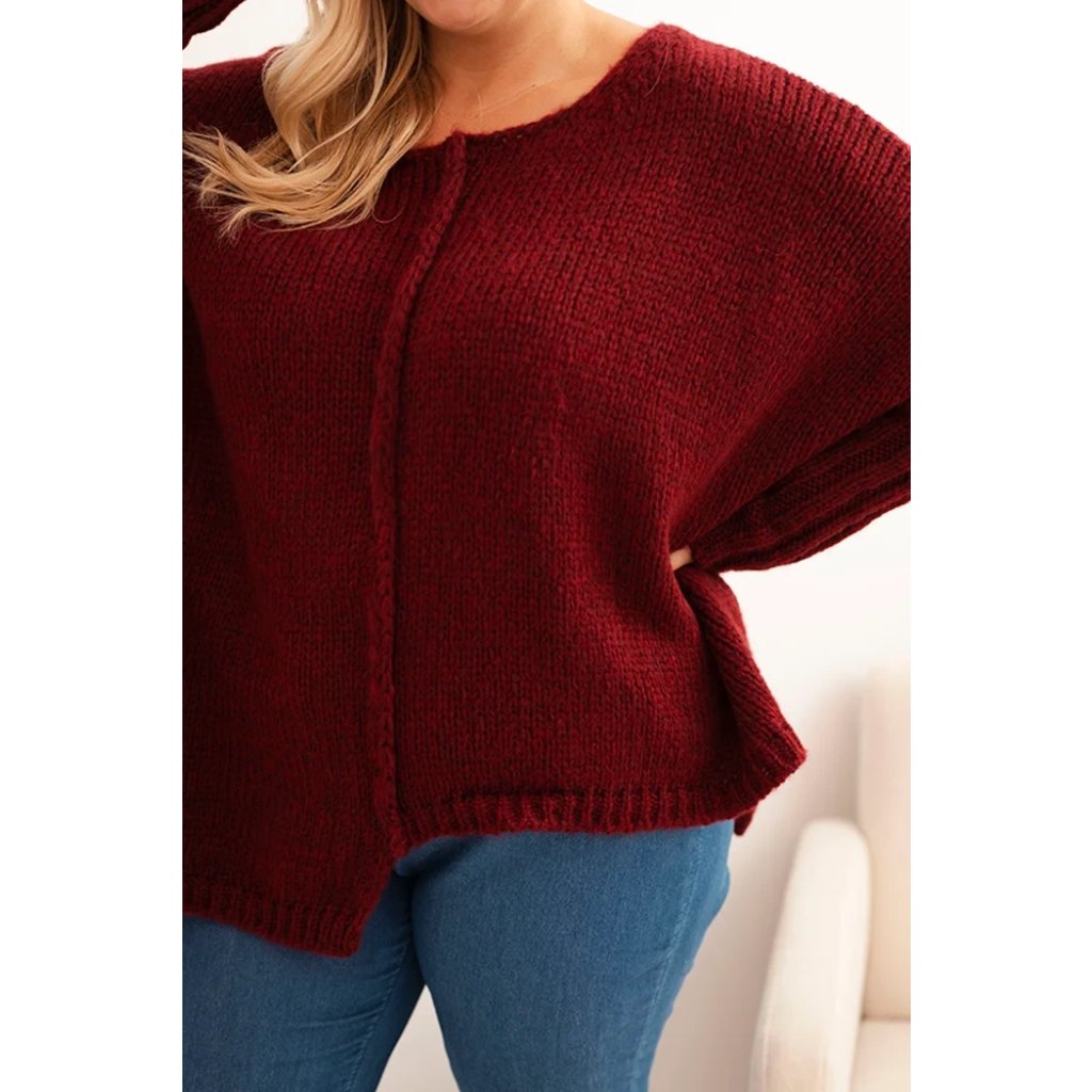 Tento dámsky sveter plus size je ideálnou voľbou pre ženy, ktoré si cenia pohodlie a štýl v jednom. Vyrobený z mäkkej, teplej pleteniny z akrylu a polyamidu, zaisťuje komfort nosenia po celý deň. Voľný oversize strih sa dokonale prispôsobuje postave a široké rukávy 3/4 zakončené nápletom dodávajú svetru moderný charakter. Výstrih do lodičky sa krásne usádza na krku, dodávajúci celku jemného čara.