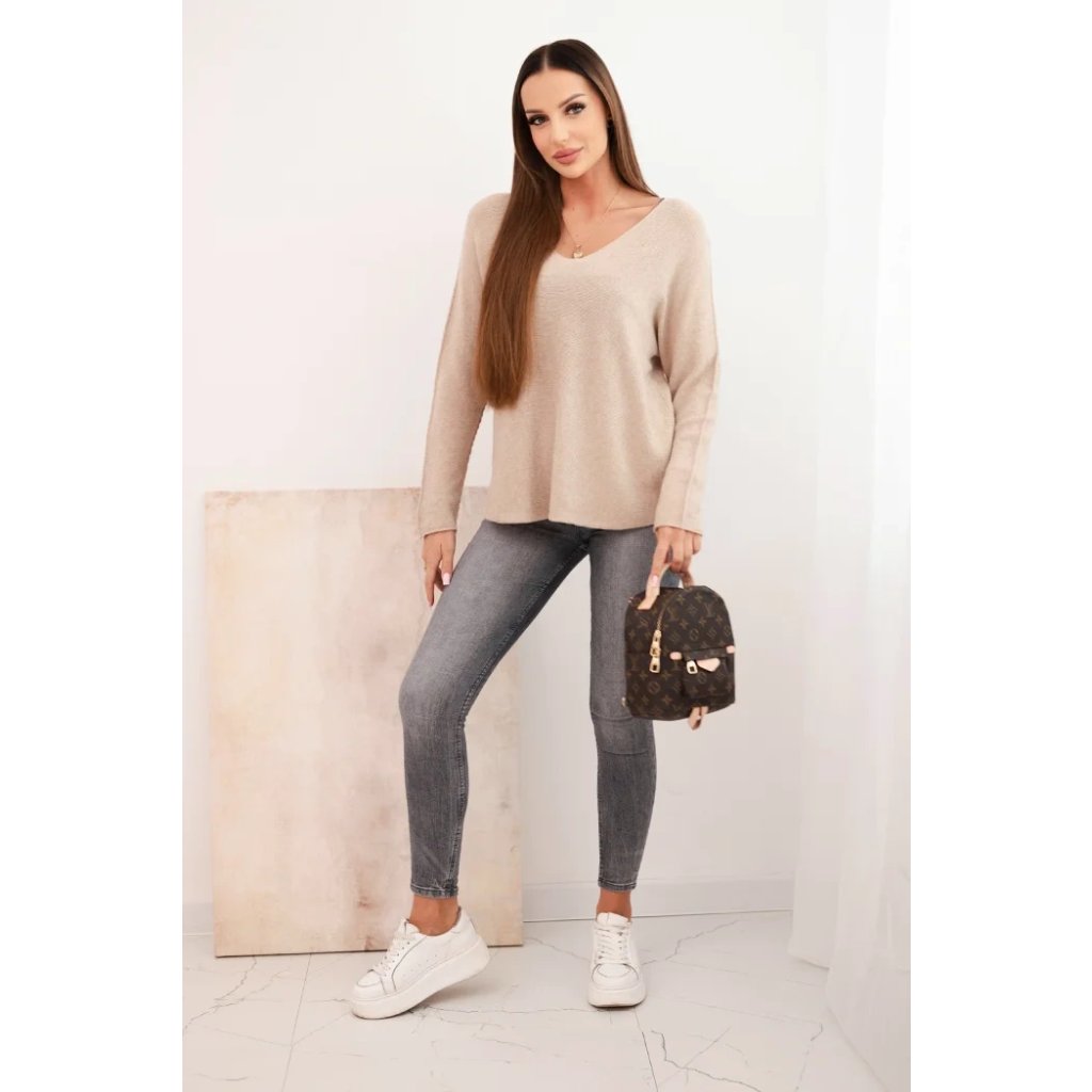 Sveter s výstrihom do V je klasický a univerzálny kúsok oblečenia, ktorý sa dokonale hodí k mnohým štýlom. Je vyrobená z mäkkého materiálu, ktorý je príjemný na dotyk a poskytuje teplo a pohodlie. Výstrih do V jemne zvýrazňuje krk a dodáva svetru eleganciu a ľahkosť. Perfektne sa hodí na každodenné nosenie aj formálnejšie príležitosti, perfektne sa hodí k džínsom, sukniam alebo elegantným nohaviciam a vytvára štýlové a sofistikované outfity. Veľkosť je univerzálna a je vhodná pre ženy, ktoré nosia veľkosť S, M alebo L.