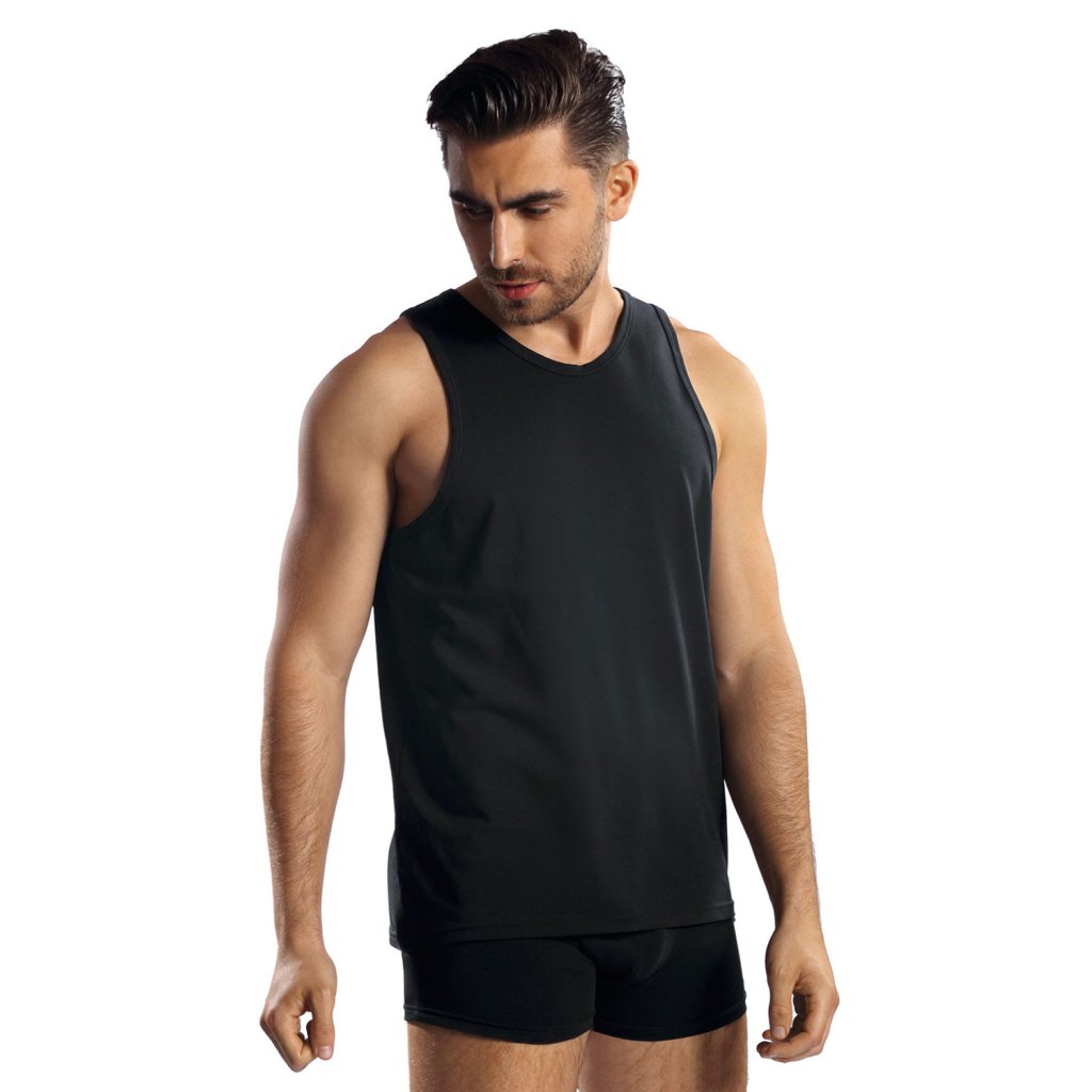 Pánske tielko Reviver F5568 T1 kombinuje mäkkosť bavlny s elasticitou vlákien a zaisťuje tak celodenné pohodlie. Priedušná tkanina umožňuje pohodlné nosenie ako ako tielko, tak aj samostatne. Okrúhly výstrih a rovné ramienka vytvárajú klasický, nadčasový dizajn, ktorý sa ľahko hodí do každodenných outfitov. Vďaka pridanému elastanu tkanina jemne splýva a dobre sa prispôsobuje. Hladký povrch bez potlače zdôrazňuje všestrannosť kúsku a uľahčuje ľahké kombinovanie s ďalšími kúskami šatníka. Starostlivo upravené okraje pri krku a v podpazuší zvyšujú pohodlie. Tento top sa dobre hodí pod košeľu, sveter alebo mikinu a v lete ako ľahká vrstva na každodenné nosenie. Je to praktický základný kúsok šatníka, ktorý kombinuje funkčnosť s jednoduchým dizajnom.Mäkká, priedušná tkanina s vysokým obsahom bavlny