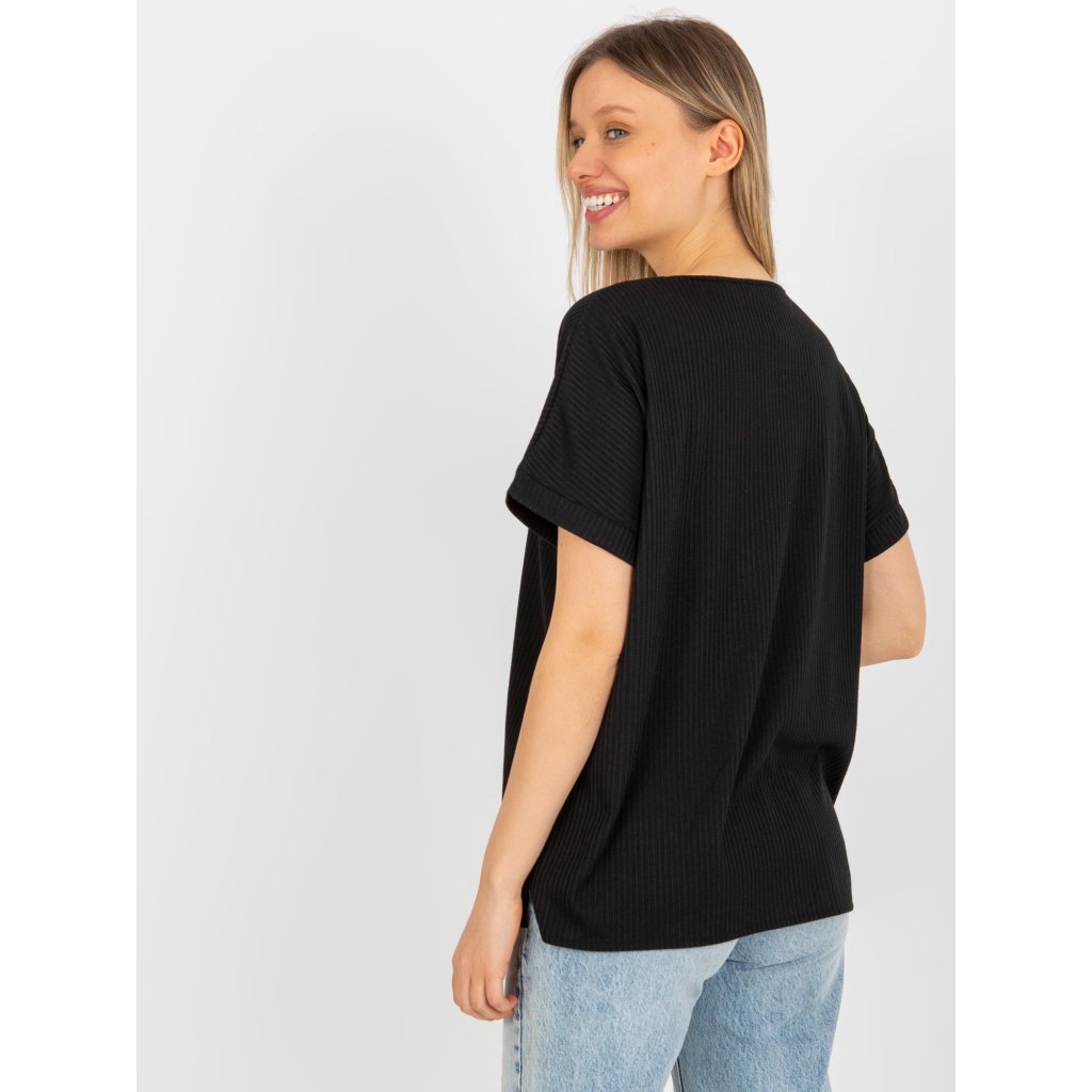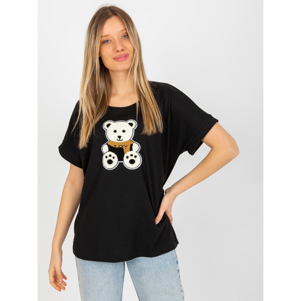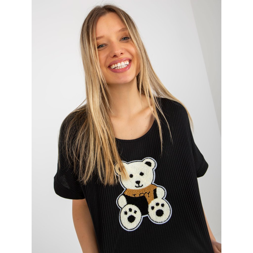 Čierna rebrovaná oversized blúzka s medvedíkom.