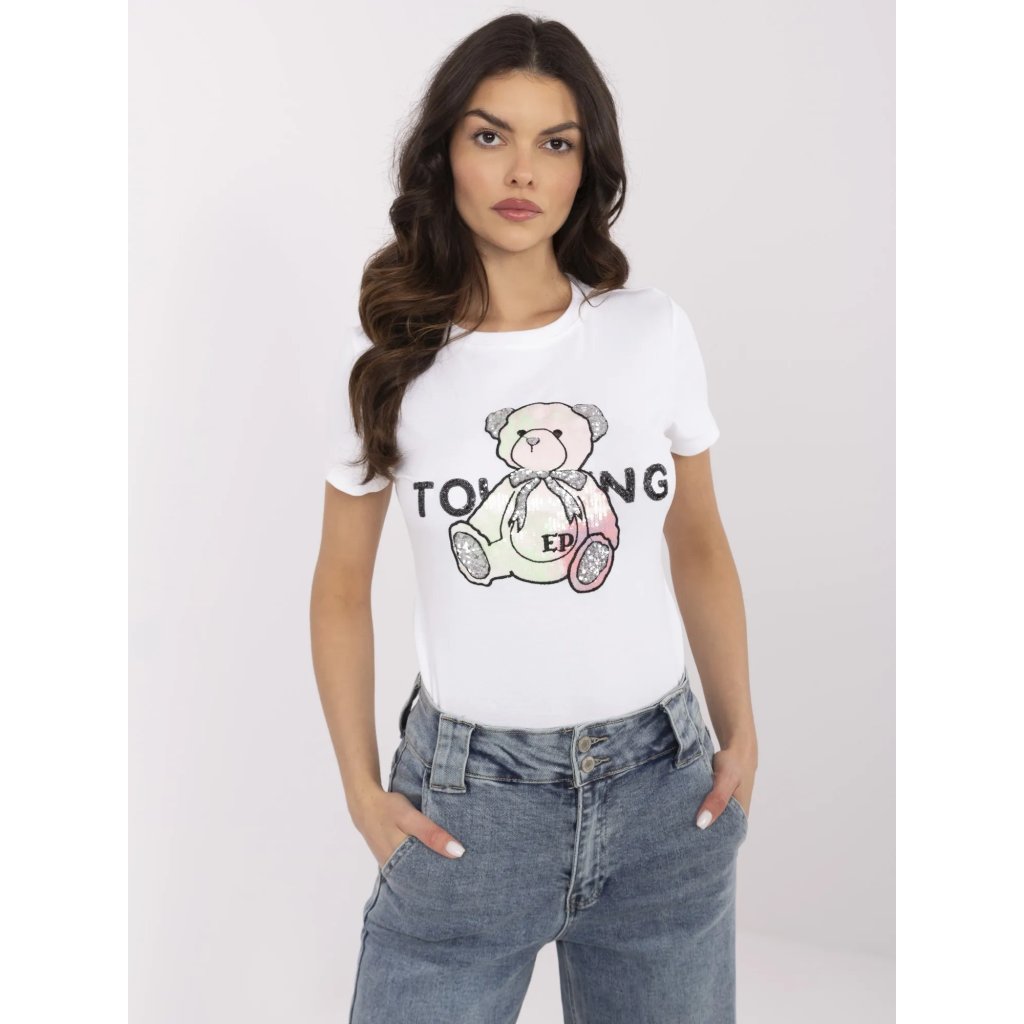 Rozmery trička vo veľkosti one size merané na plocho: šírka pod pazuchami - 44 cm, dĺžka rukáva - 16 cm (od švu), šírka v bokoch - 44 cm, celková dĺžka - 61 cm.