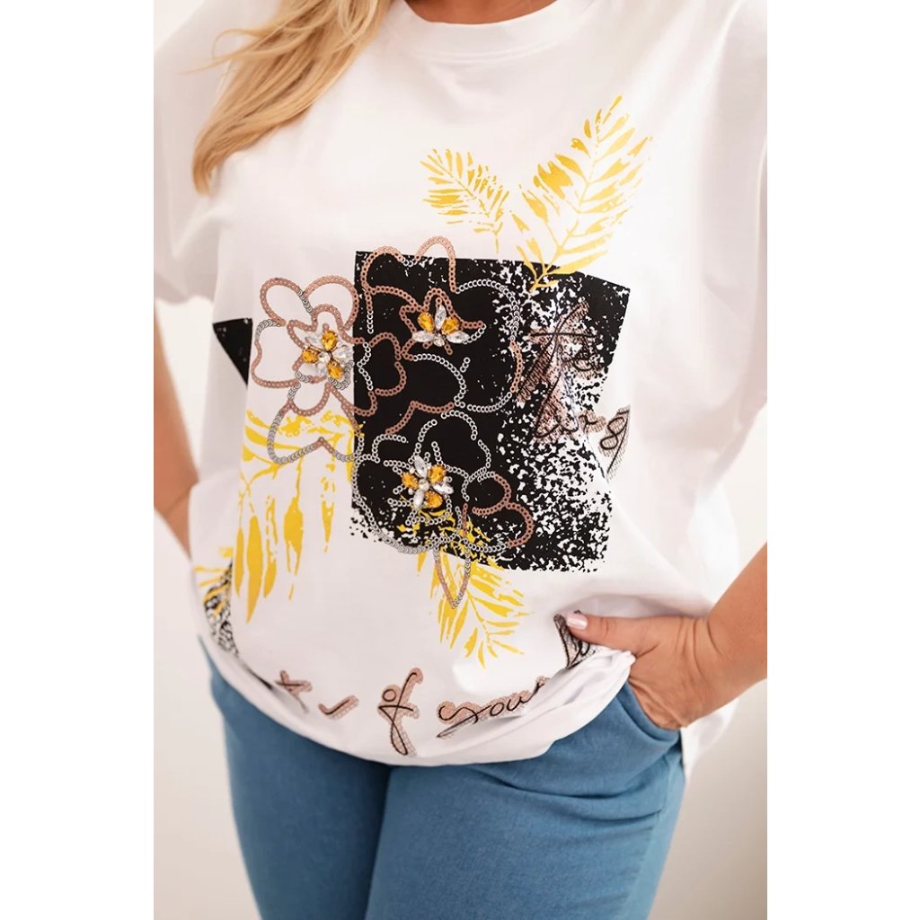 Tričko Plus Size 1323 s ozdobnou kvetinovou potlačou