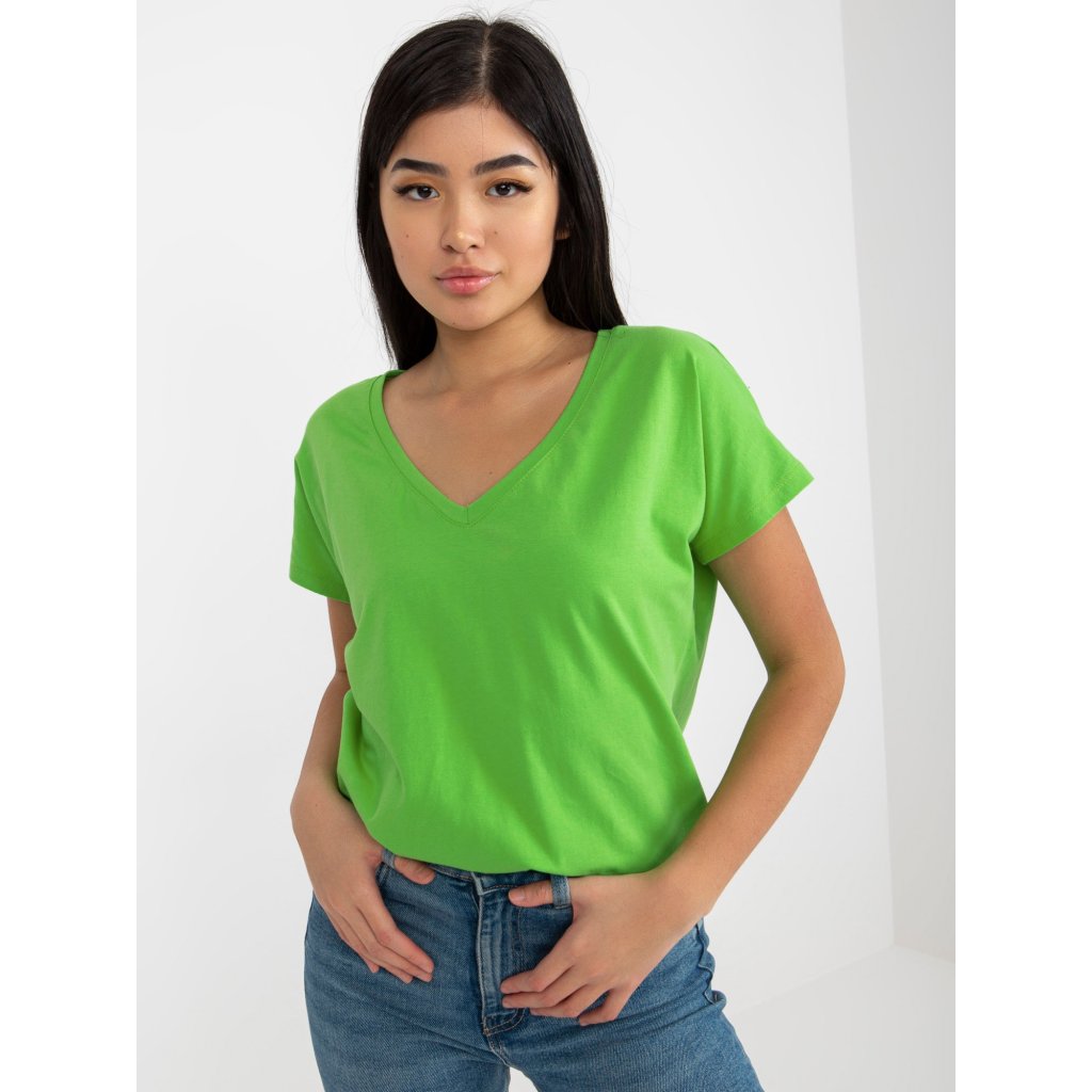 Dámske jednofarebné tričko s výstrihom do Vzloženie materiálu: 90% bavlna, 10% elastan