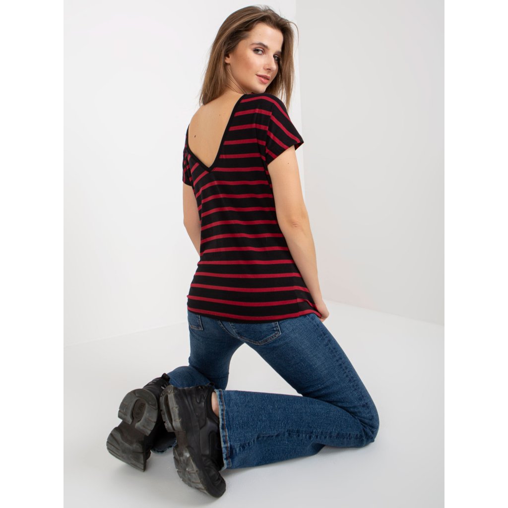 Dámske pruhované tričko s výstrihom na chrbte do Vzloženie materiálu: 90% bavlna, 10% elastan