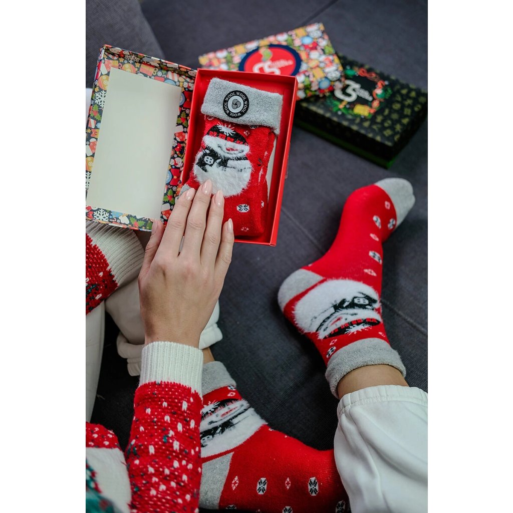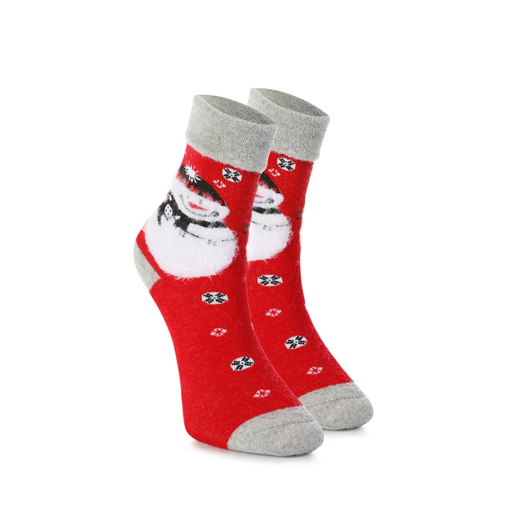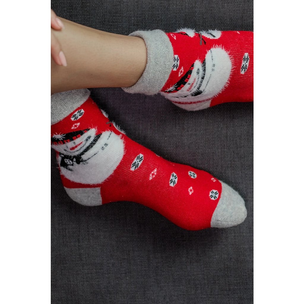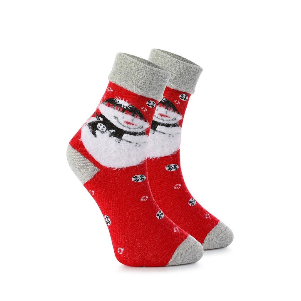 Vneste do svojho šatníka trochu zimnej mágie s týmito rozkošnými vianočnými ponožkami so snehuliakom! Teplá červená farba, nadýchaná 3D potlač a mäkké sivé zakončenie na prstoch a päte z nich robia nielen štýlový, ale aj nesmierne útulný kúsok. Snehuliak so šálou a čiapkou, obklopený snehovými vločkami, dodáva týmto ponožkám jedinečný zimný charakter.