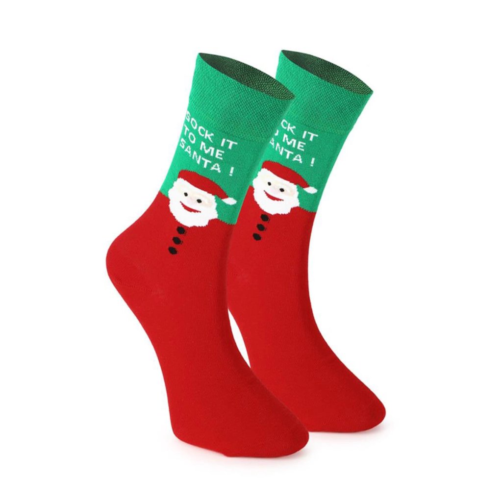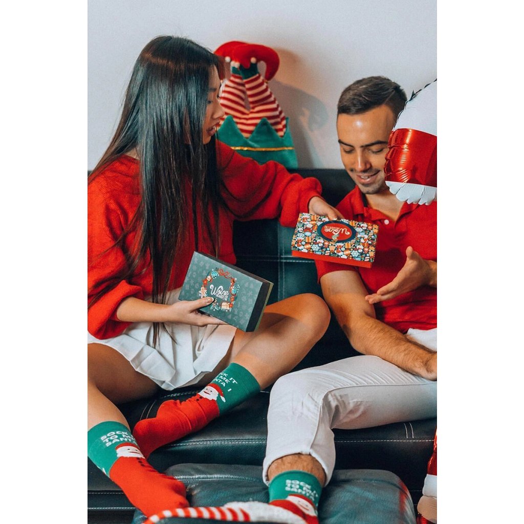 Vytvorte sviatočnú atmosféru vo svojom šatníku s týmto roztomilým setom vianočných dámskych ponožiek! Sada obsahuje dva výnimočné páry: jeden zdobený obrázkom usmievavého Santa Clausa a nápisom „Roztoč to, Santa!”, druhý s klasickým vzorom červeno-bielych pruhov pripomínajúcich cukrovú paličku. Celé je to zabalené v rozprávkovo farebnom, sviatočnom darčekovom balení, ktoré z tohto setu robí hotový darček pre blízku osobu.