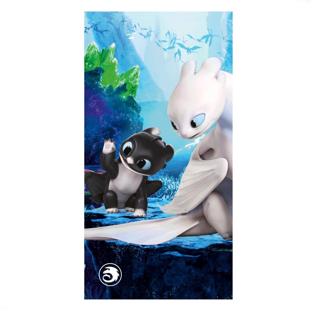 Štýlová osuška s motívom draka Bezzubky z obľúbenej filmovej série Ako vycvičiť draka. Rozmer 70×140 cm, jemné a savé bavlnené froté. Ideálna pre deti aj tínedžerov – do kúpeľne, na pláž alebo ako darček.