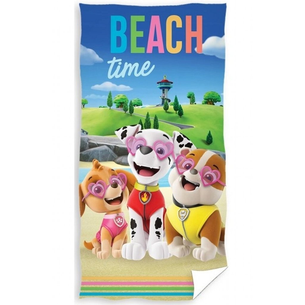 Užite si leto naplno s plážovou osuškou Tlapková Patrola Time for Beaching! V hlavnej úlohe sú obľúbení psíkovia Marshall, Skye a Rubble, ktorí vyčaria úsmev na tvári každého malého fanúšika.