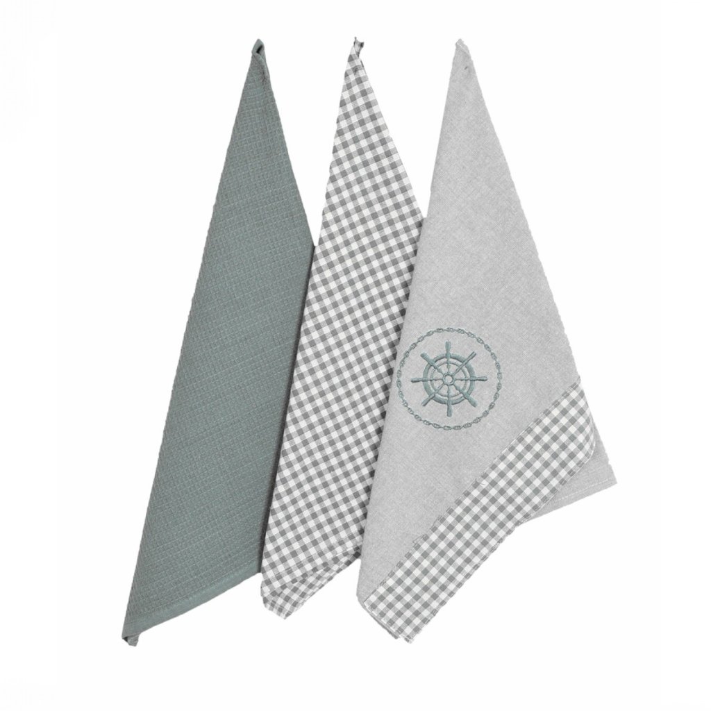1x Štýlová sivá s výšivkou lodného kormidla a kockovaným lemom