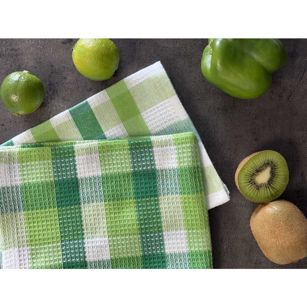 Vneste do svojej kuchyne štýl a funkčnosť s týmito kvalitnými vaflovými utierkami. Kombinácia zelenej a bielej farby dodá vášmu interiéru svieži vzhľad.