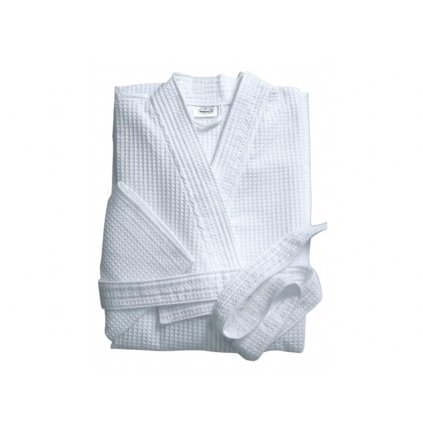 Exkluzívny vaflový župan Praktik v bielej farbe je ideálnou voľbou pre hotely, wellness centrá aj domáci relax. Vyrobený zo 100% bavlny s gramážou 230 g/m², je ľahký, mäkký a príjemný na nosenie. Kimono strih zaisťuje pohodlie a voľnosť pohybu. Štýlový a praktický doplnok pre každé prostredie.