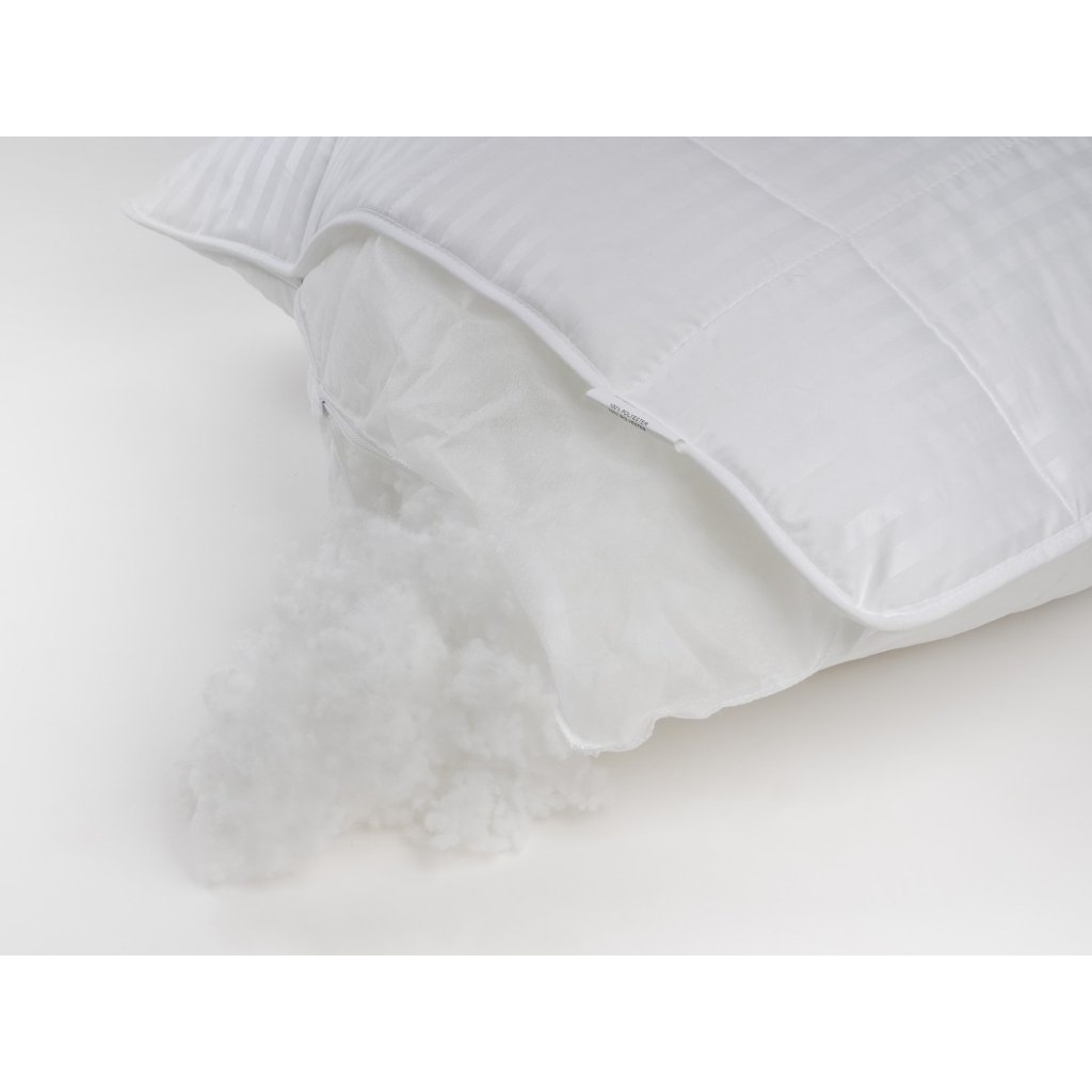 Elegantný biely vankúš s jemným prúžkom so šírkou 1 cm a praktickou možnosťou upraviť množstvo výplne. Povrch je prešitý s termovložkou a po obvode zdobený paspulou. Na kratšej strane je všitý zipsový uzáver.