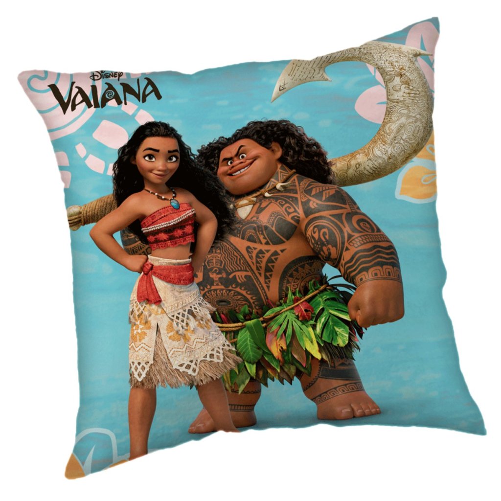 Dobrodružný vankúšik s motívom z obľúbeného animovaného filmu Vaiana (Moana) prináša kúzlo oceánu priamo do detskej izby. Na vankúšiku sú hlavní hrdinovia – odvážna Vaiana a silák Maui s magickým hákom – na pozadí modrého oceánu s kvetinovými prvkami. Nechýba ani logo „Vaiana“.
