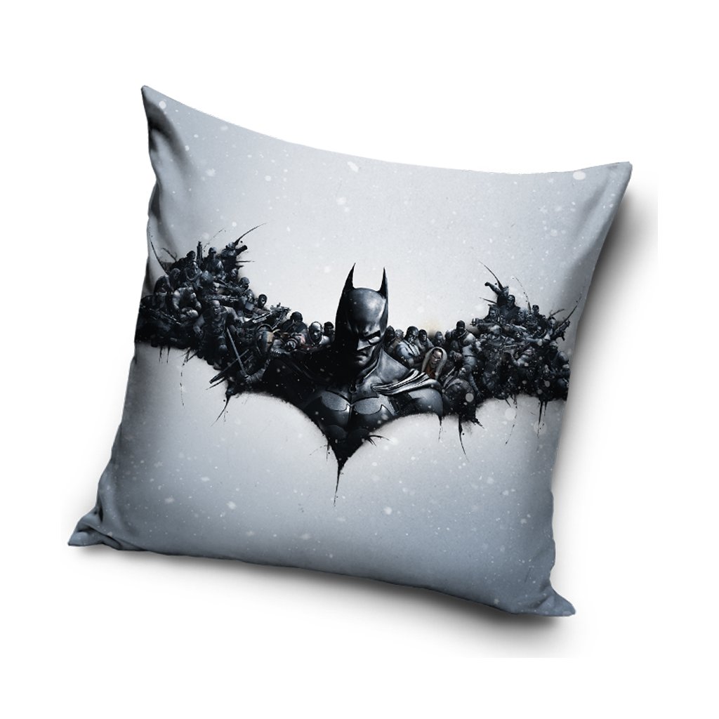 Na oboch stranách vankúšika je rovnaký temný motív inšpirovaný hrou Batman Arkham Origins